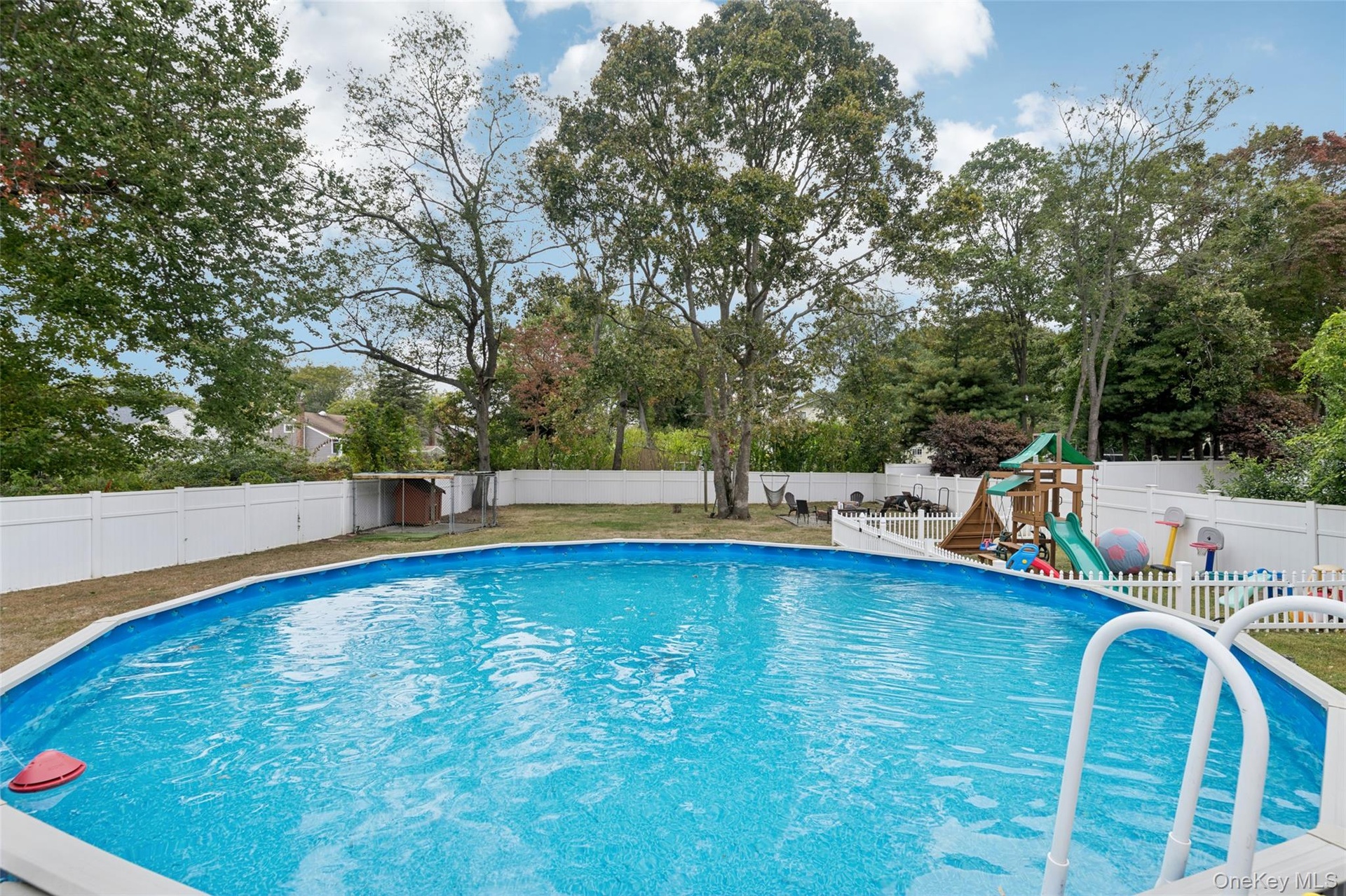 - Fenced backyard featuring a playground