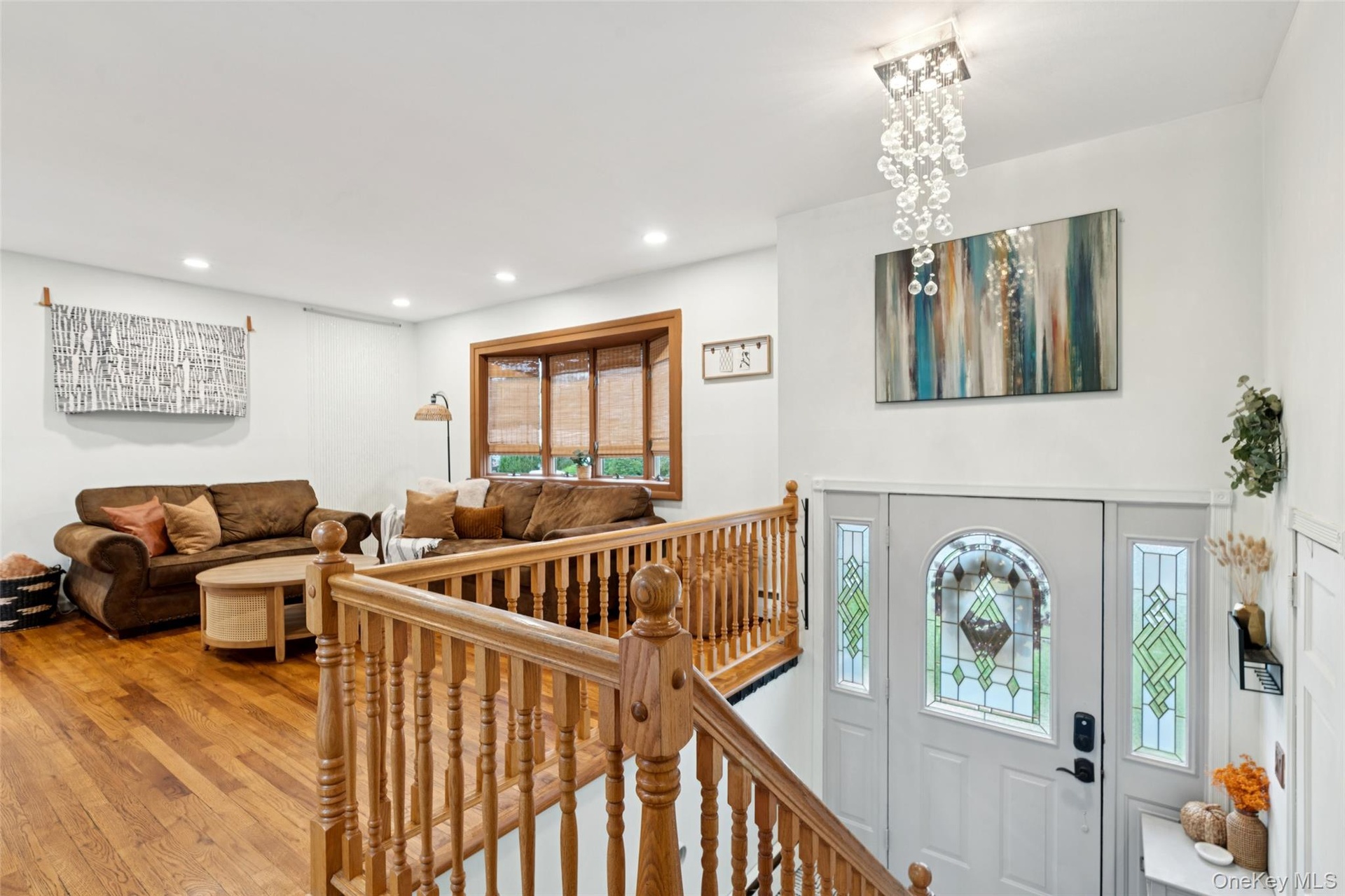 - Foyer entrance with wood finished floors and recessed lighting