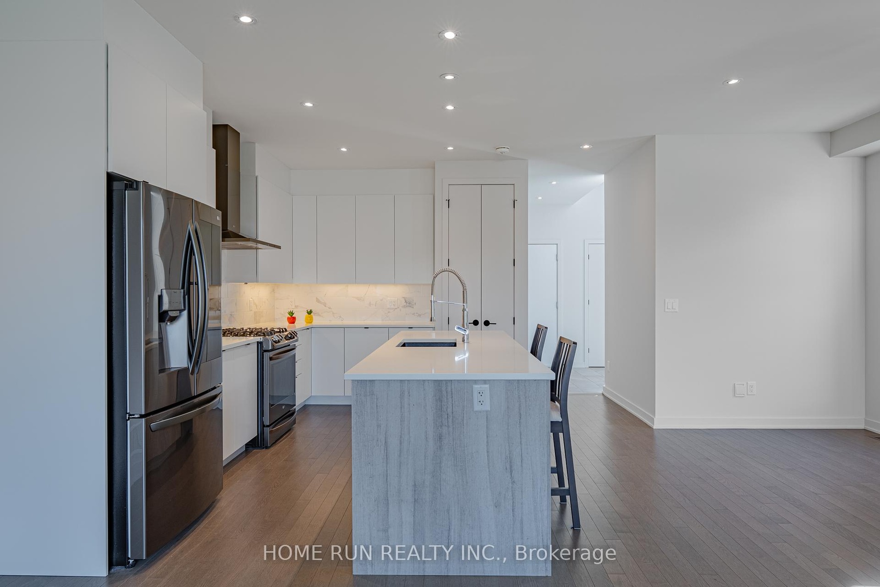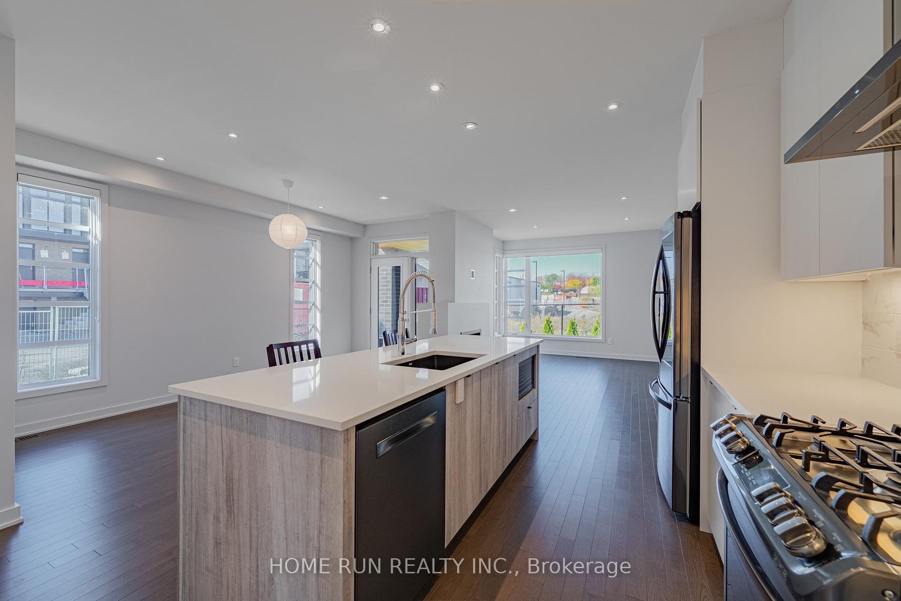 This Beautiful and spacious DOUBLE-GARAGE END-UNIT townhome offers over 2500 sq. ft. of thoughtfully designed living space. Built with care by HN Homes in 2020, it sits on an upgraded oversized lot and combines modern elegance with comfort. Featuring 3 bedrooms, 4 bathrooms, a fully finished basement, and a loft on the upper level, this home has everything a growing family needs. The main floor features 9-ft ceilings and open-concept layout with a modern kitchen showcasing an oversized quartz island , stainless steels appliance and upgraded kitchen cabinetry with additional storage. The bright dining room and spacious living room and enhanced by lighting package with pot lights and large windows that fill the space with natural light. A gorgeous hardwood staircase with modern glass panels leads you to the second floor, where you'll find a large primary bedroom featuring a huge walk-in closet, a luxurious ensuite bathroom, and 2 additional well-sized bedrooms. Don't miss the loft. It is the perfect area for a home office or a cozy reading nook for kids. The fully finished lower level adds even more living space with a large recreation room , a 3-piece bathroom, plenty of storage. The backyard offers great privacy and a dedicated area for BBQs and ideal for outdoor gatherings and family fun. Located within walking distance to schools, parks, and shopping centers. This home is Move-in ready. Available for Showings Anytime with Flexible Possession. Do not miss this opportunity and make it yours today! Please note: All furniture shown in the photos has been virtually staged to help visualize the space.