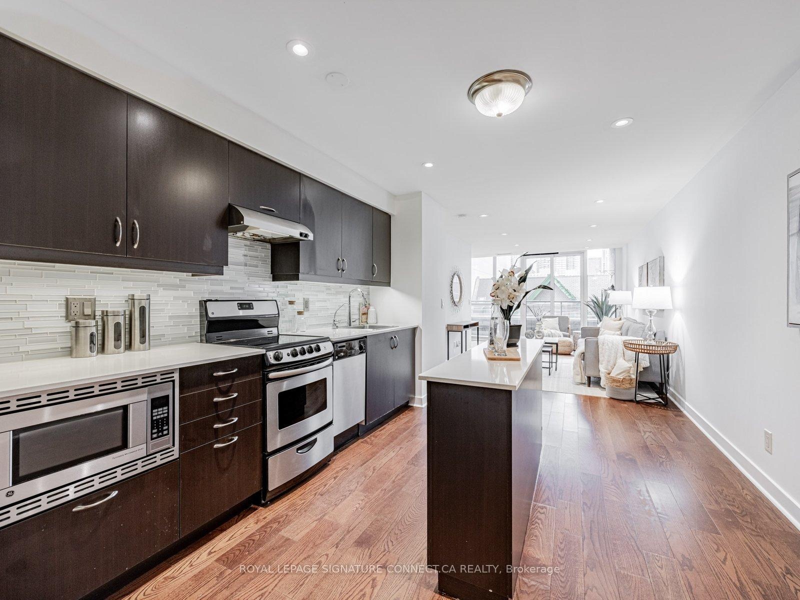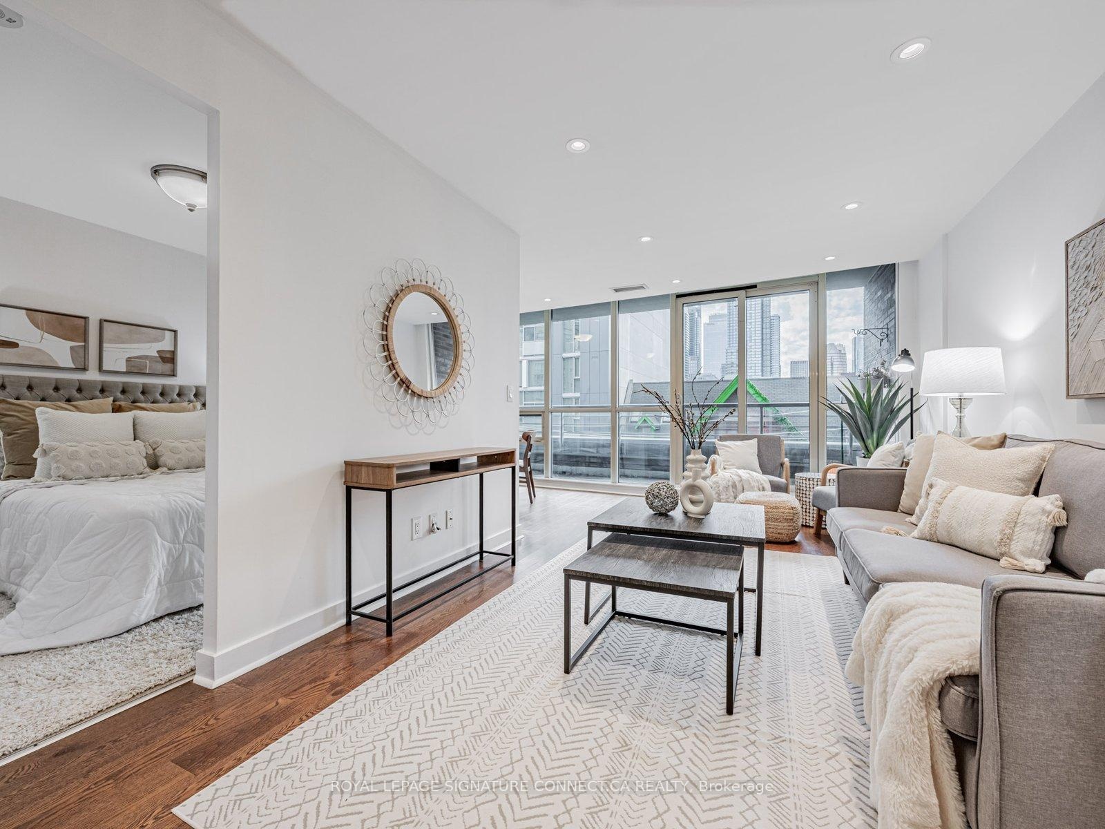 Condo living the way it should be experienced! In a city of micro-condos, unit 407 stands out from the rest! A LARGE 1+Den that can easily be used as a second bedroom has over 900 sqft of open & bright living space! Big closets throughout the unit, including a walk-in in the primary bedroom, offer you tons of room for storage, and the expansive floor plan means you have plenty of ways to make it your own. Enjoy tons of natural light as the windows span the entire width of the unit, and the newly installed pot lights throughout the living space illuminate this beautiful home at all times of the day. Get east or west in a flash with the King St. streetcar two blocks away, or catch line 1 with a short walk to Yonge St. Never walk far for your groceries again! Nofrills, Metro, and the lovely St. Lawrence market are all within a 300 m radius. Some of the buildings amenities include a gym, guest suites, party room, rooftop deck, and 24hr security. Unit 407 comes with a parking spot and locker. Don't miss the chance to call it home!