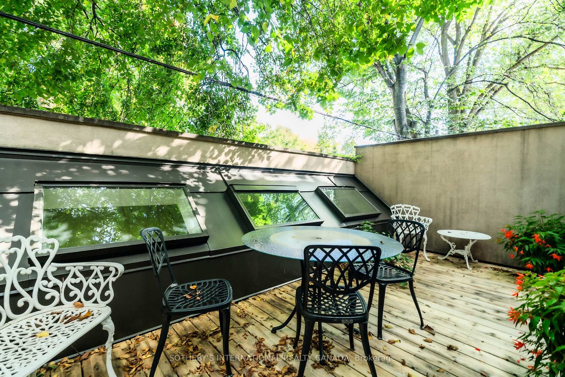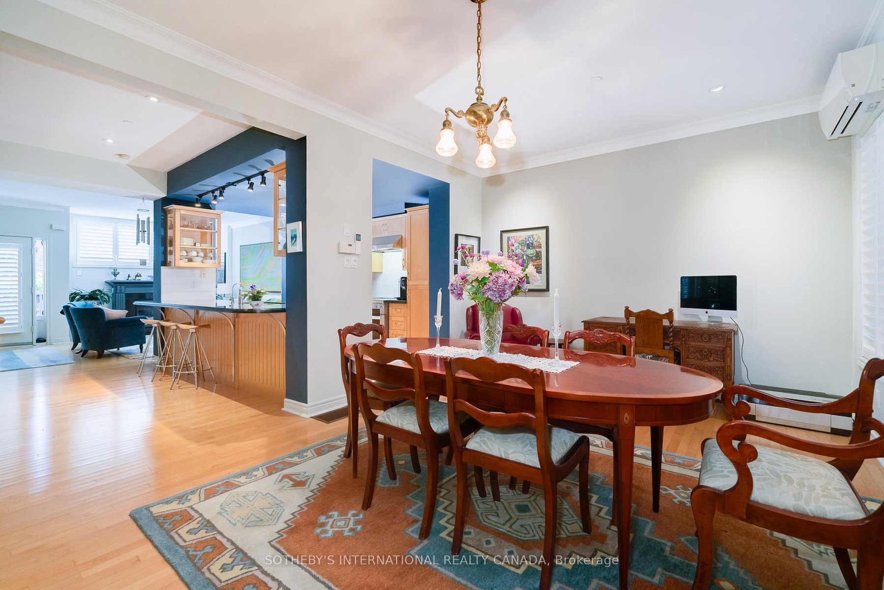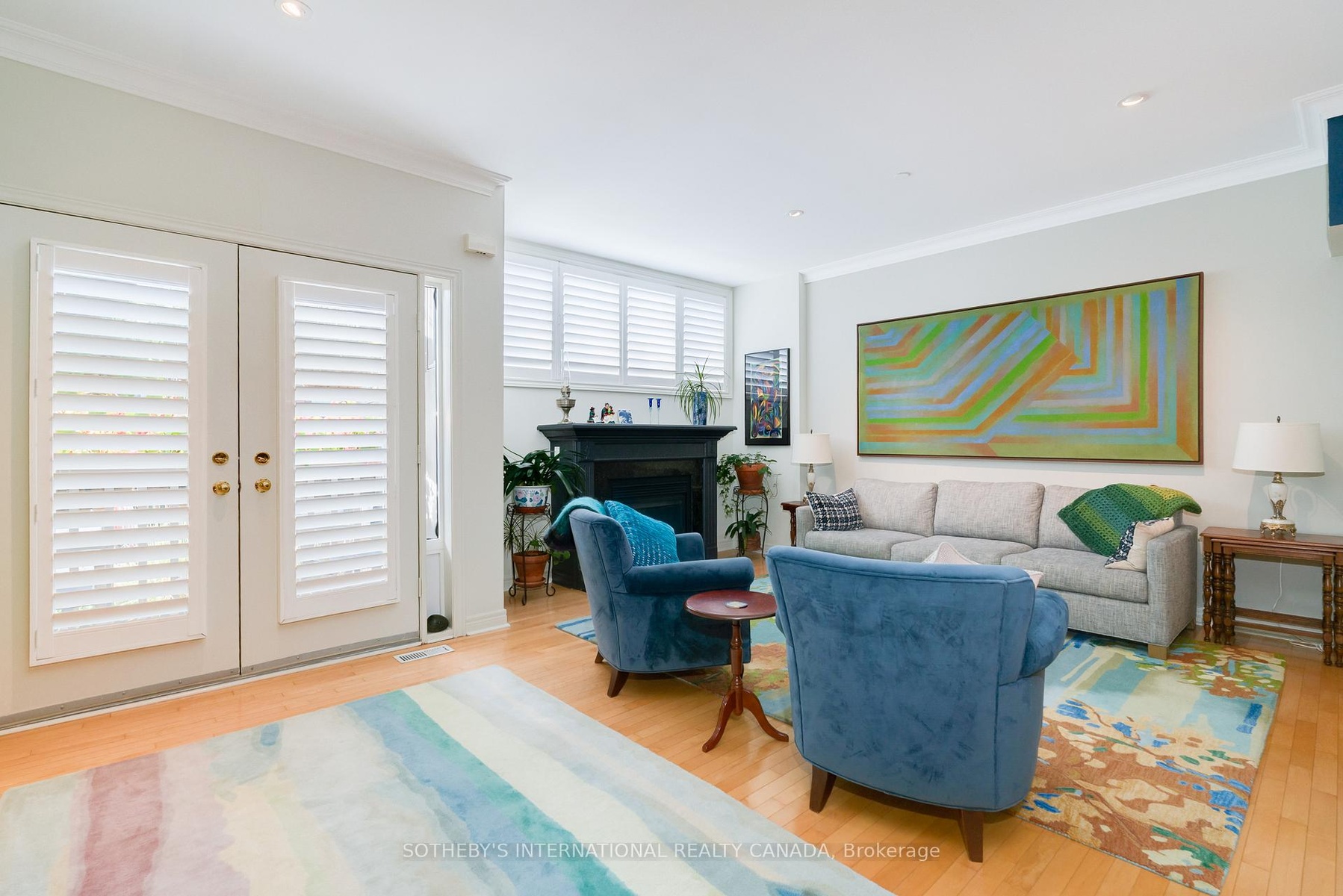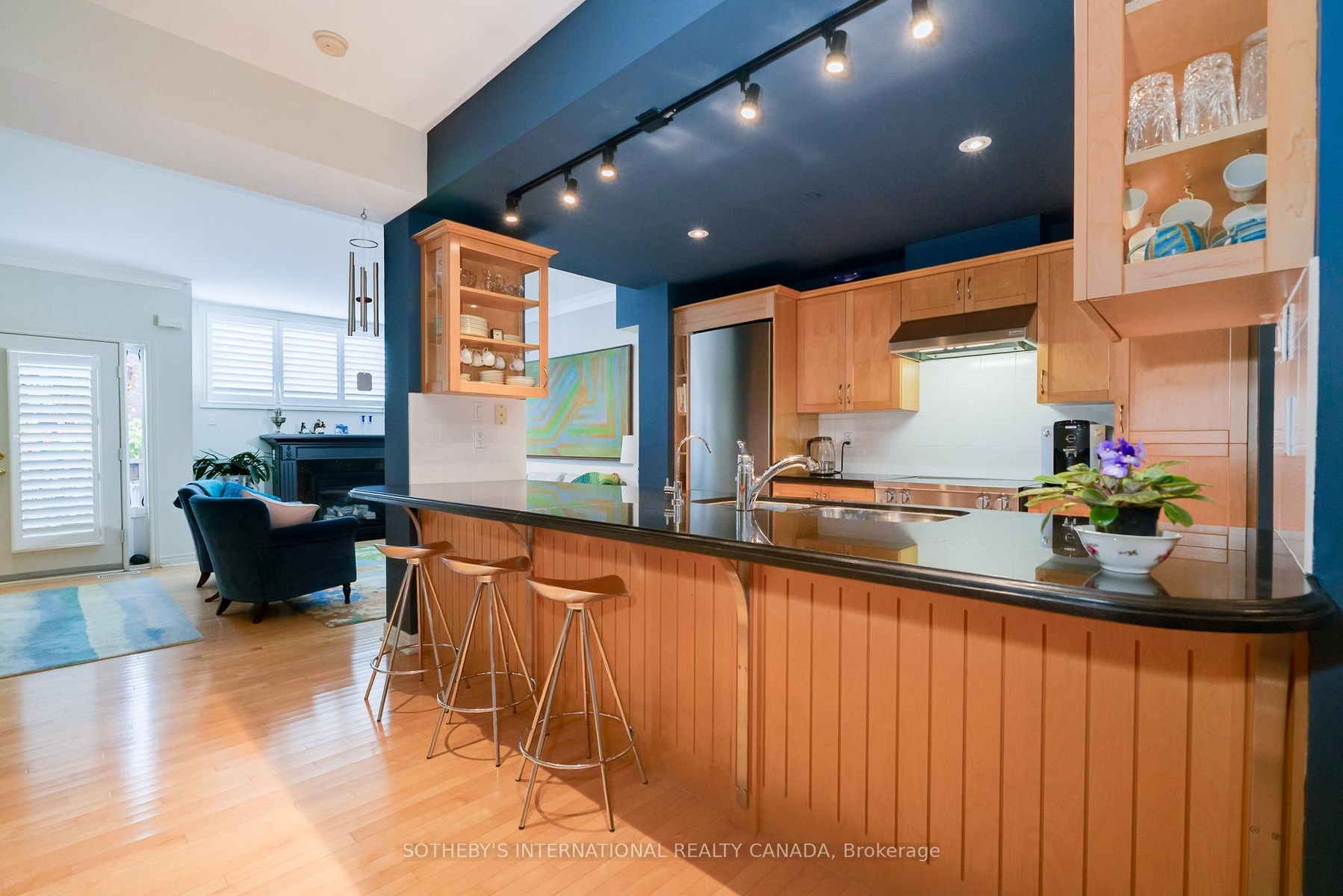 Experience urban living at its finest with this stunning 3-storey townhouse built in 2001. Enter through the spacious foyer, with large coat closet & access to the 1-car garage with additional storage space. The ground floor features a huge family room with skylights and built in shelving that could also be used as a home office, or ground floor bedroom, as there is a 4pc bath as well. The second floor open-concept living room has 9-foot ceilings, hardwood flooring, gas fireplace, and French doors to a west facing balcony. The spacious recently renovated kitchen features ample storage, a large breakfast bar, Miele refrigerator/freezer, Miele induction range, Miele built-in dishwasher, and Vent-A-Hood professional range hood. The dining room features a walkout to the large east facing rear deck. The deck has a gas hook up for a BBQ area and water faucet for planter gardening. The third floor Primary bedroom has a cathedral ceiling soaring to 14 feet in height, French doors to a second west-facing balcony, double closets and a 5pc ensuite bath with whirlpool tub. The second bedroom is equally large, with high ceilings, double closets, additional storage cupboards, and a large east facing window. All French doors have Phantom screens installed. Laundry appliances include a Miele clothes washer and LG gas clothes dryer. This property is heated and cooled with an efficient Mitsubishi electric ductless cold weather heat pump system. There is 200 amp electrical service and hot water on demand. California Shutters, a fire sprinkler system, and Ecowater purification system. The flow, natural light and open spaces of this wonderful home will surpass your expectations! The location is close to all neighbourhood parks, trails, schools, library, public transit, and the shops and restaurants of Parliament St. Centrally located to the downtown business area with easy access to the DVP and Gardiner Expressway.