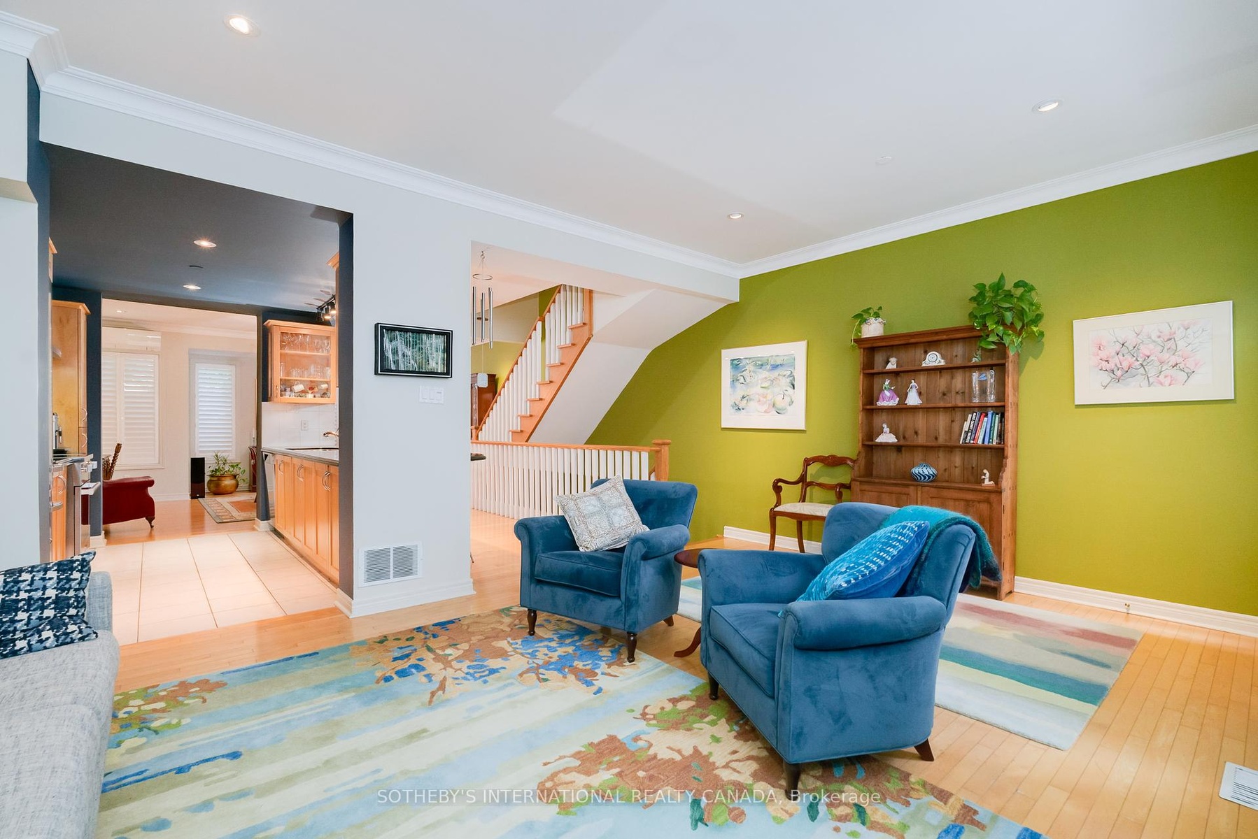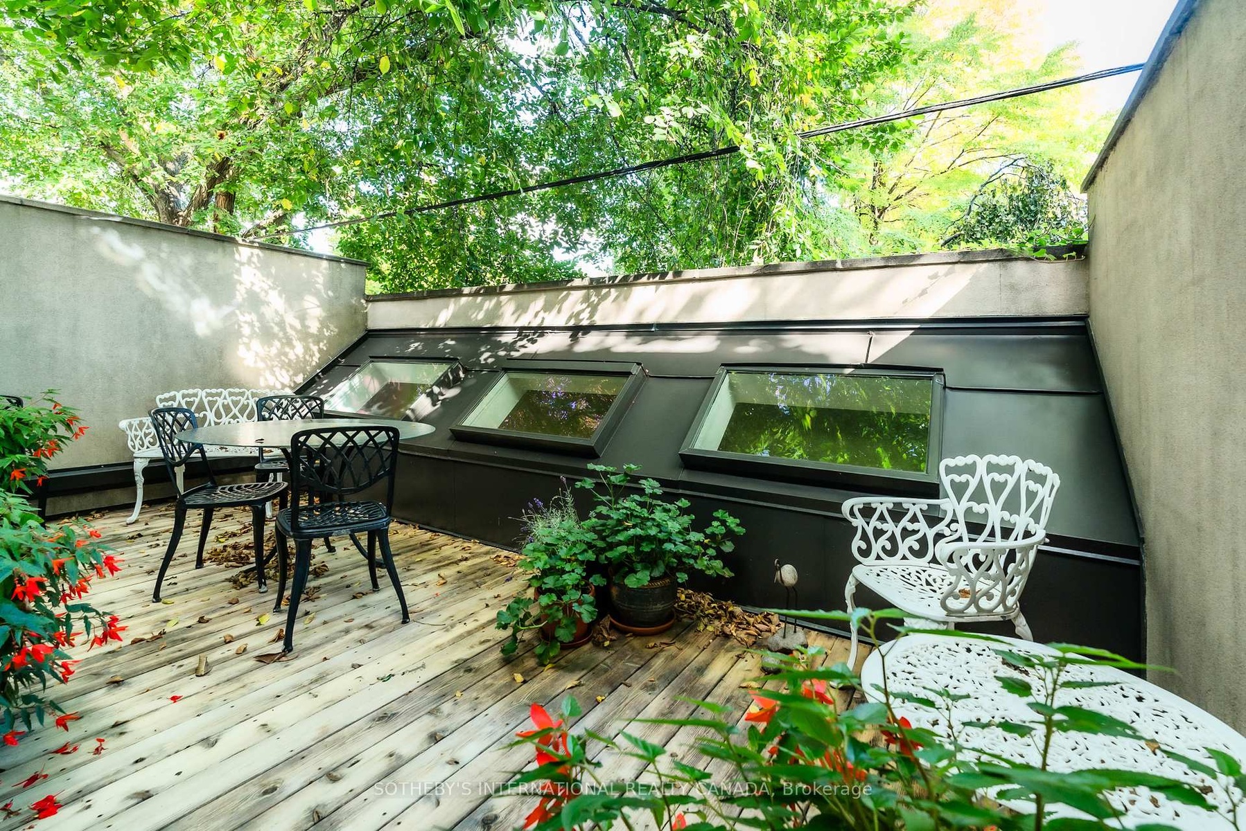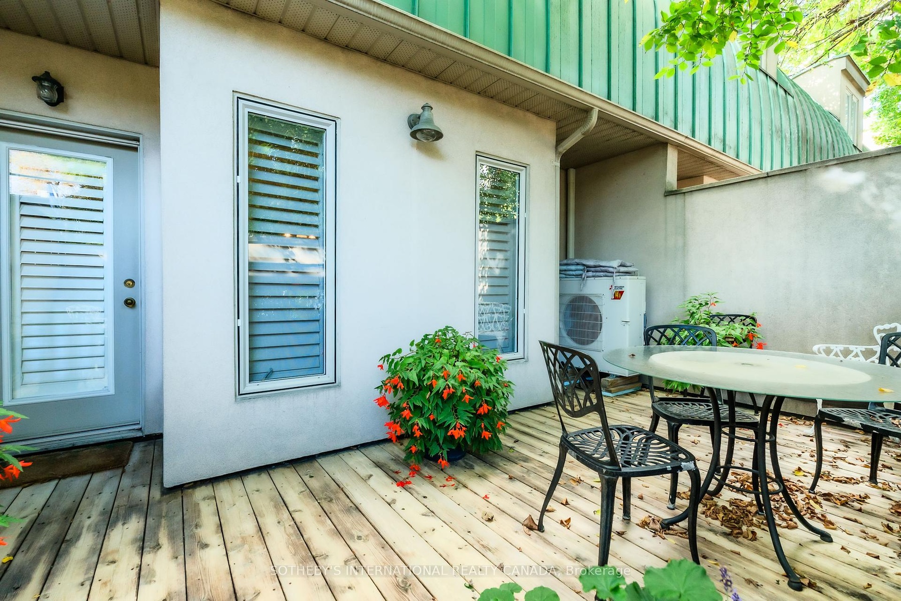 Experience urban living at its finest with this stunning 3-storey townhouse built in 2001. Enter through the spacious foyer, with large coat closet & access to the 1-car garage with additional storage space. The ground floor features a huge family room with skylights and built in shelving that could also be used as a home office, or ground floor bedroom, as there is a 4pc bath as well. The second floor open-concept living room has 9-foot ceilings, hardwood flooring, gas fireplace, and French doors to a west facing balcony. The spacious recently renovated kitchen features ample storage, a large breakfast bar, Miele refrigerator/freezer, Miele induction range, Miele built-in dishwasher, and Vent-A-Hood professional range hood. The dining room features a walkout to the large east facing rear deck. The deck has a gas hook up for a BBQ area and water faucet for planter gardening. The third floor Primary bedroom has a cathedral ceiling soaring to 14 feet in height, French doors to a second west-facing balcony, double closets and a 5pc ensuite bath with whirlpool tub. The second bedroom is equally large, with high ceilings, double closets, additional storage cupboards, and a large east facing window. All French doors have Phantom screens installed. Laundry appliances include a Miele clothes washer and LG gas clothes dryer. This property is heated and cooled with an efficient Mitsubishi electric ductless cold weather heat pump system. There is 200 amp electrical service and hot water on demand. California Shutters, a fire sprinkler system, and Ecowater purification system. The flow, natural light and open spaces of this wonderful home will surpass your expectations! The location is close to all neighbourhood parks, trails, schools, library, public transit, and the shops and restaurants of Parliament St. Centrally located to the downtown business area with easy access to the DVP and Gardiner Expressway.