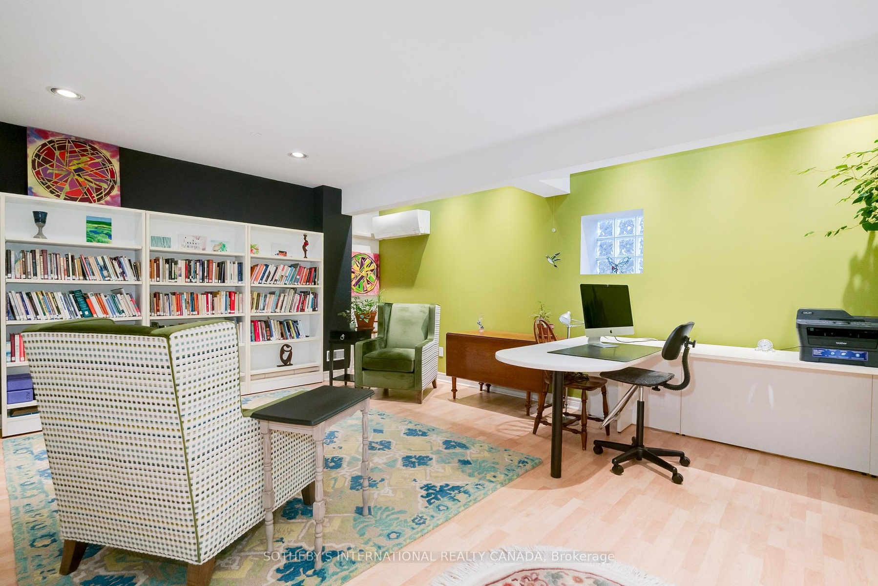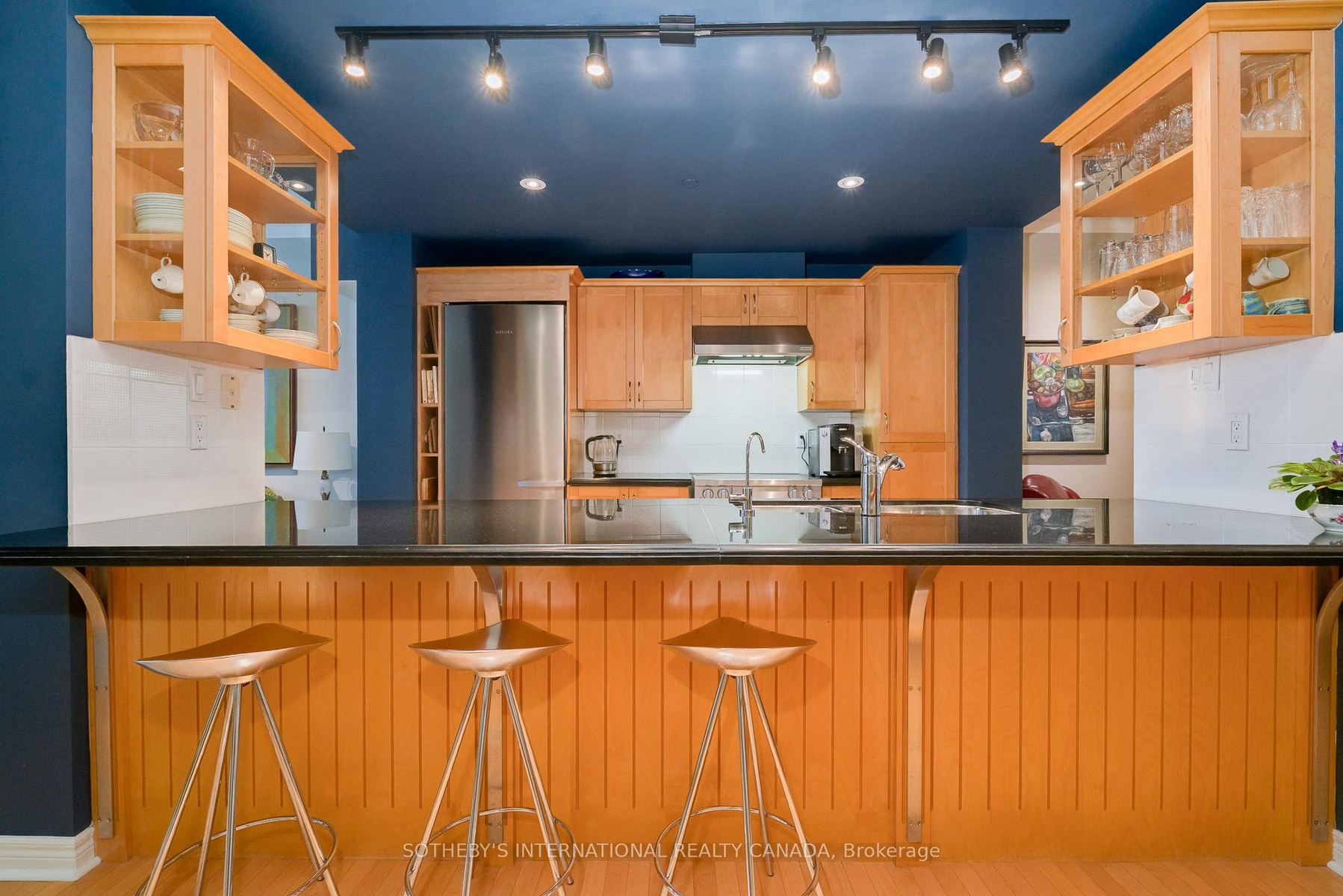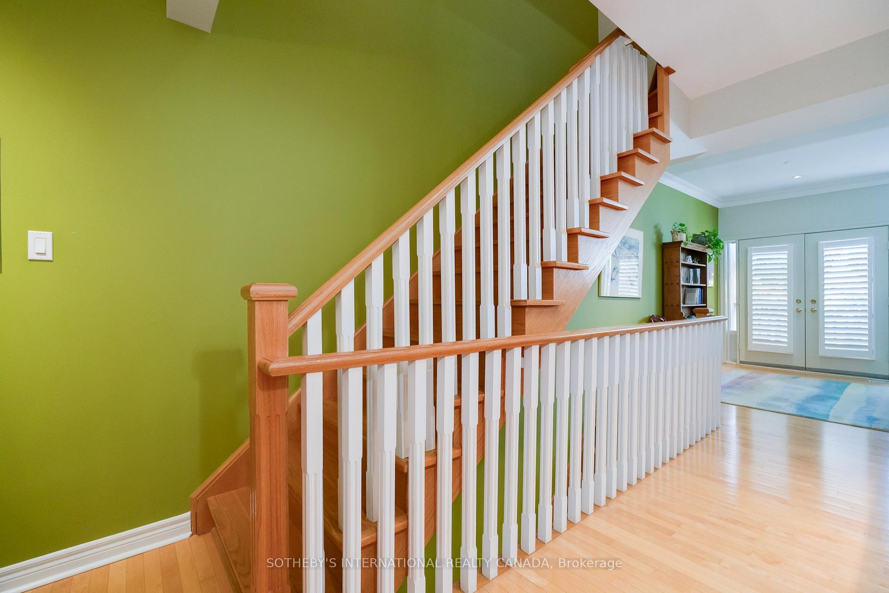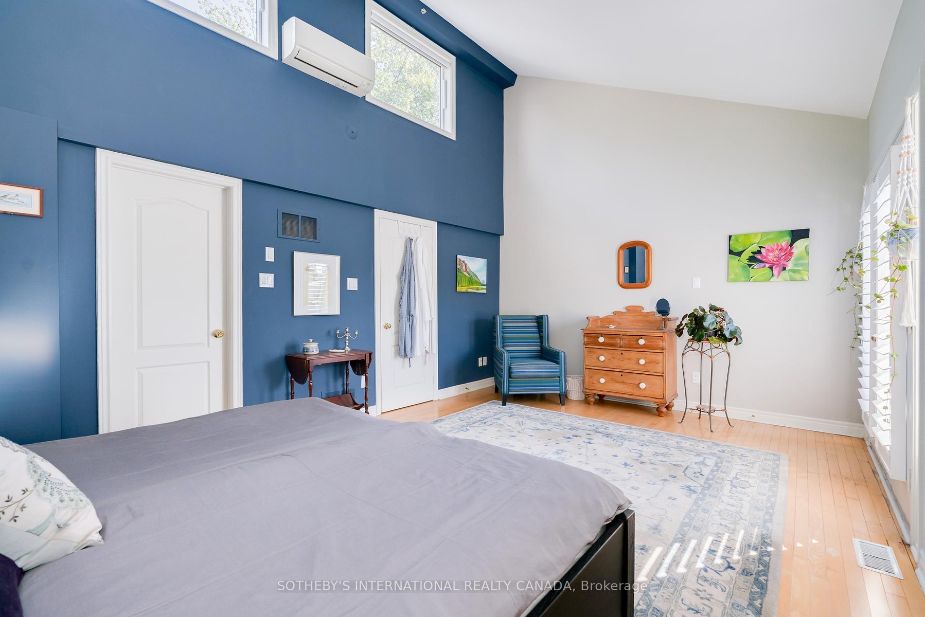 Experience urban living at its finest with this stunning 3-storey townhouse built in 2001. Enter through the spacious foyer, with large coat closet & access to the 1-car garage with additional storage space. The ground floor features a huge family room with skylights and built in shelving that could also be used as a home office, or ground floor bedroom, as there is a 4pc bath as well. The second floor open-concept living room has 9-foot ceilings, hardwood flooring, gas fireplace, and French doors to a west facing balcony. The spacious recently renovated kitchen features ample storage, a large breakfast bar, Miele refrigerator/freezer, Miele induction range, Miele built-in dishwasher, and Vent-A-Hood professional range hood. The dining room features a walkout to the large east facing rear deck. The deck has a gas hook up for a BBQ area and water faucet for planter gardening. The third floor Primary bedroom has a cathedral ceiling soaring to 14 feet in height, French doors to a second west-facing balcony, double closets and a 5pc ensuite bath with whirlpool tub. The second bedroom is equally large, with high ceilings, double closets, additional storage cupboards, and a large east facing window. All French doors have Phantom screens installed. Laundry appliances include a Miele clothes washer and LG gas clothes dryer. This property is heated and cooled with an efficient Mitsubishi electric ductless cold weather heat pump system. There is 200 amp electrical service and hot water on demand. California Shutters, a fire sprinkler system, and Ecowater purification system. The flow, natural light and open spaces of this wonderful home will surpass your expectations! The location is close to all neighbourhood parks, trails, schools, library, public transit, and the shops and restaurants of Parliament St. Centrally located to the downtown business area with easy access to the DVP and Gardiner Expressway.