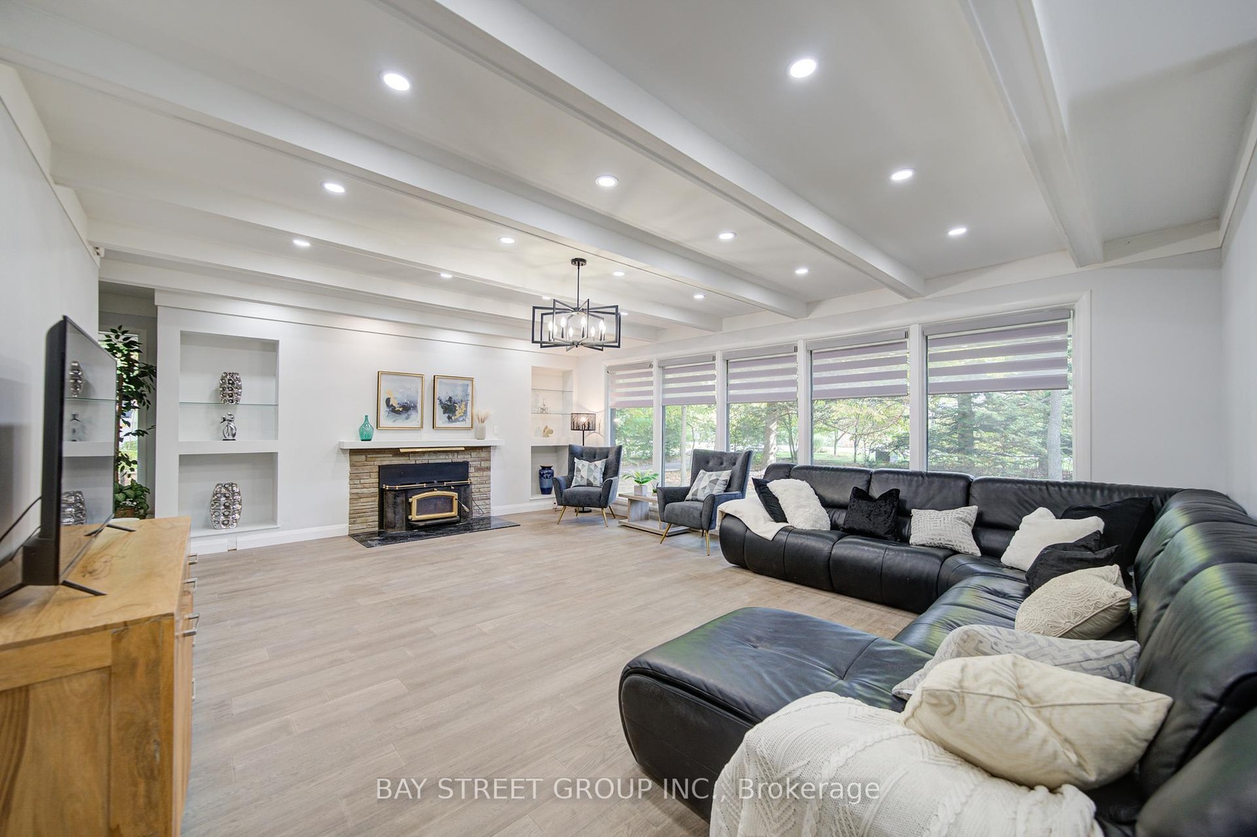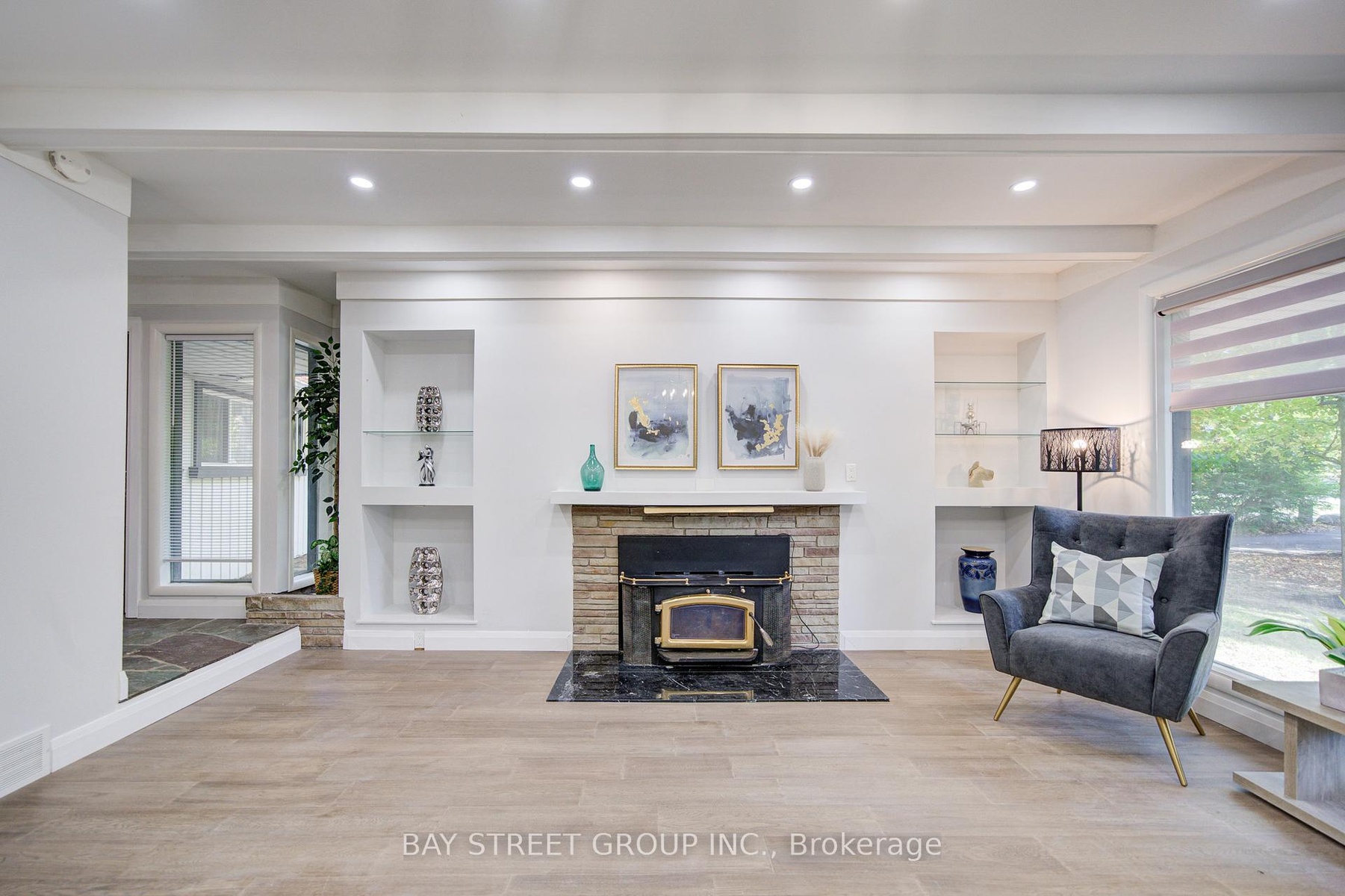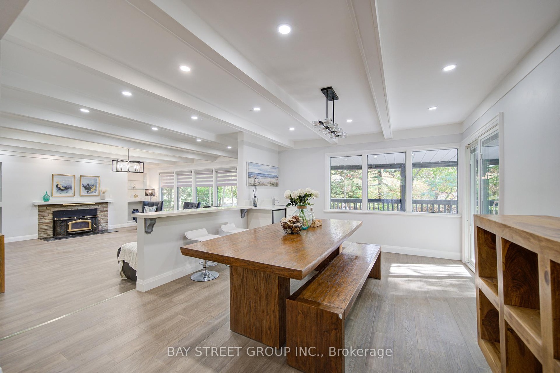 Luxury Waterfront Home. Fully Renovated & Move-In Ready! Experience modern waterfront living in this beautifully updated 4-bedroom, 3-bathroom home, offering a perfect blend of modern style and natural charm. Open-concept home flows seamlessly through a generous kitchen, dining, and living area, where gleaming hardwood floors, elegant recessed lighting, and a charming wood-burning fireplace create an inviting atmosphere for family and friends. Set across the road from the water, this property offers serene water views, ultimate privacy, and the potential to rebuild on a large lot. Every detail has been thoughtfully upgraded, including a new hot water tank, heat pump, furnace, metal roof, and 200A electrical panel. The kitchen and bathrooms have been completely redesigned with modern finishes and high-quality materials.Enjoy seamless indoor and outdoor living with newly built front and rear decks, custom stairs, and new exterior doors. A detached double garage and new round driveway provide ample parking and convenience. Surrounded by mature landscaping and rare trees including papa, trillium, walnut, and chestnut this property offers a private, natural retreat just steps from the water.