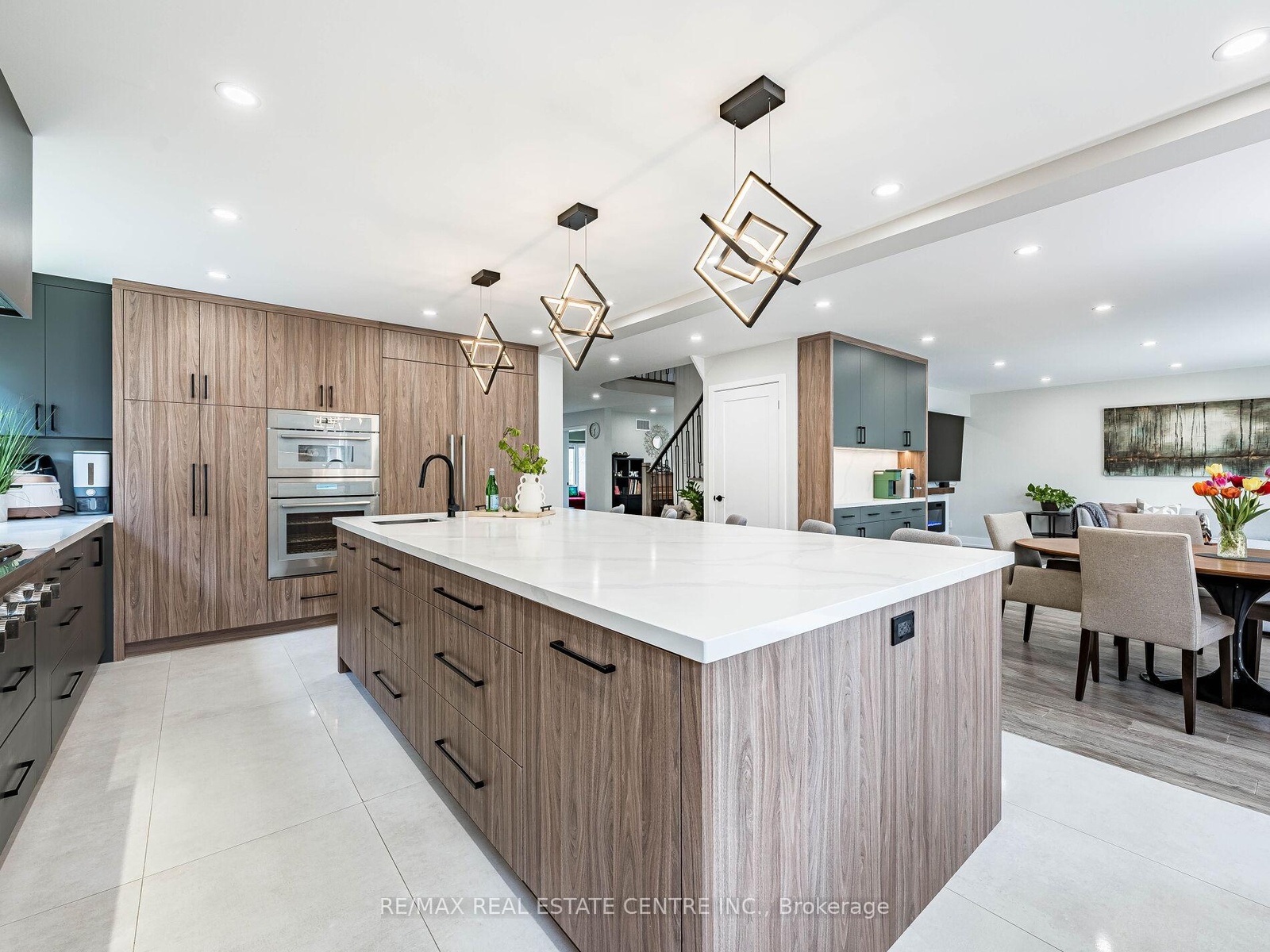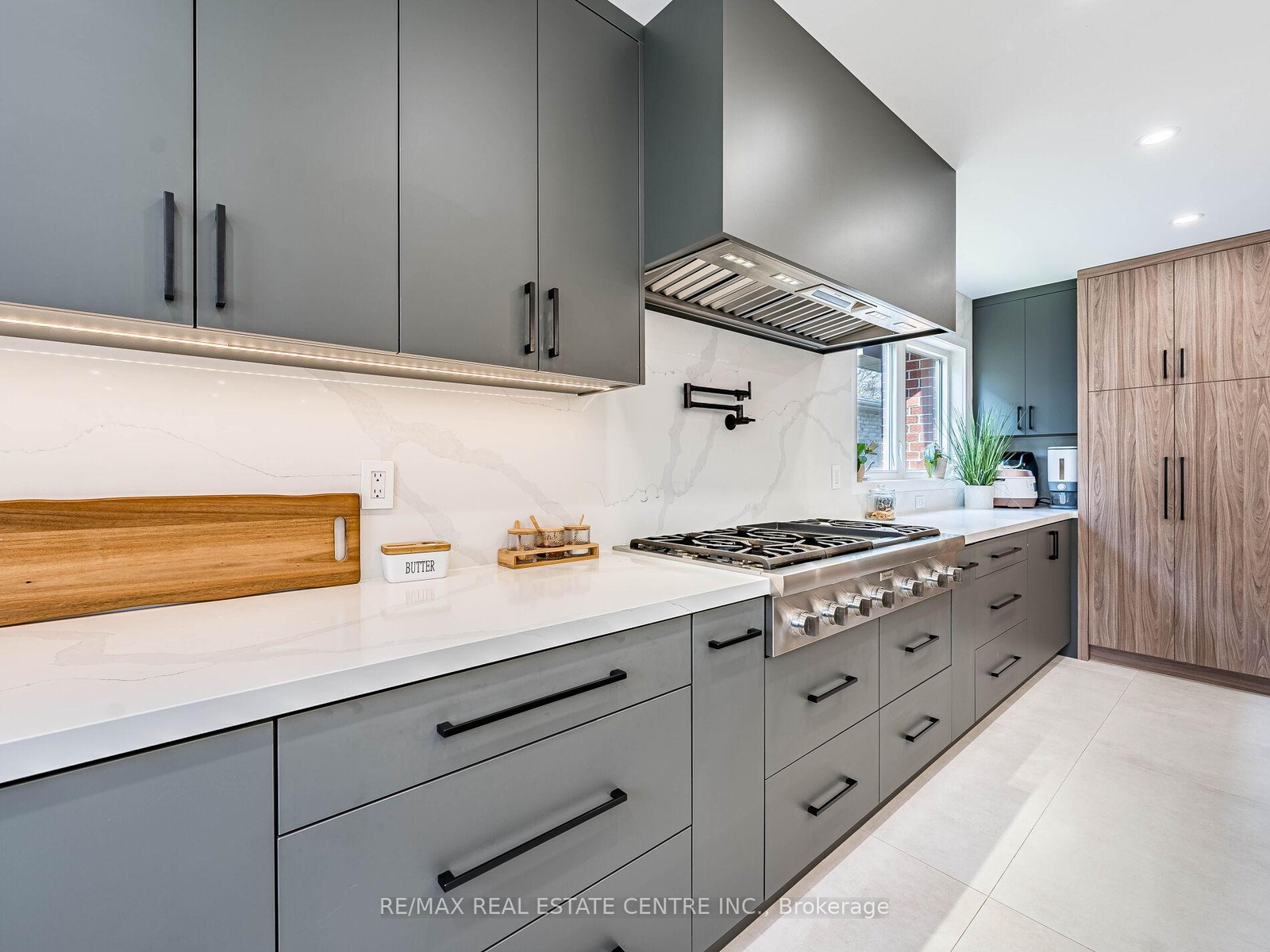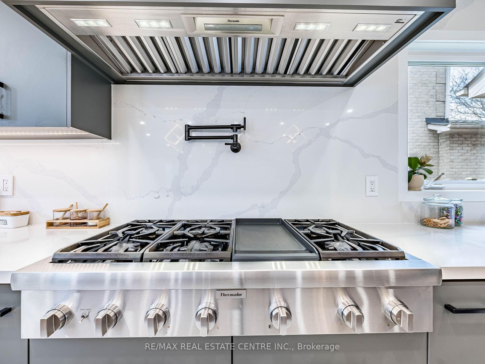 Stunning, Fully Renovated Home in a Family-Friendly Neighbourhood!This beautifully updated residence blends luxury and practicality. The open-concept layout flows seamlessly from the elegant living and formal dining areas to the spacious family room with cozy fireplace. At the heart of the home is a gourmet kitchen with heated floors, grand quartz centre island, counter-to-ceiling quartz backsplash, premium Thermador smart appliances, soft-close cabinetry, smart-fit corner drawers, and breakfast area with built-in coffee nook. The main floor also features a convenient laundry room with gas line hookup. Upstairs, the primary suite impresses with a fireplace, massive his/hers walk-in closet and spa-like 5-pc ensuite with curbless glass shower, soaker tub, double vanity and smart toilet. Bedrooms 2 & 3 share a Jack & Jill bath, while bedroom 4 has its own 3-pc ensuite. All bedrooms include closet organizers, ceiling fans and USB outlets. The professionally finished basement offers a private 2-bedroom in-law suite with separate entrance, full kitchen, private laundry, large living space and modern 3-pc bath- ideal for extended family or guests. Enjoy outdoor living in the landscaped backyard with large gazebo, firepit and BBQ area with 2 natural gas line hookups. Other fine features: pot lights throughout, hardwood floors on main & 2nd levels, kitchen under-cabinet lighting, new bathroom exhaust fans with timers, smart thermostat, smart door camera, USB receptacles, upgraded attic and soundproof insulation, new tankless water heater, and new central vacuum. Steps to parks, trails, schools, rec centre, shopping, GO transit, QEW/403 & public transit. A must-see home!