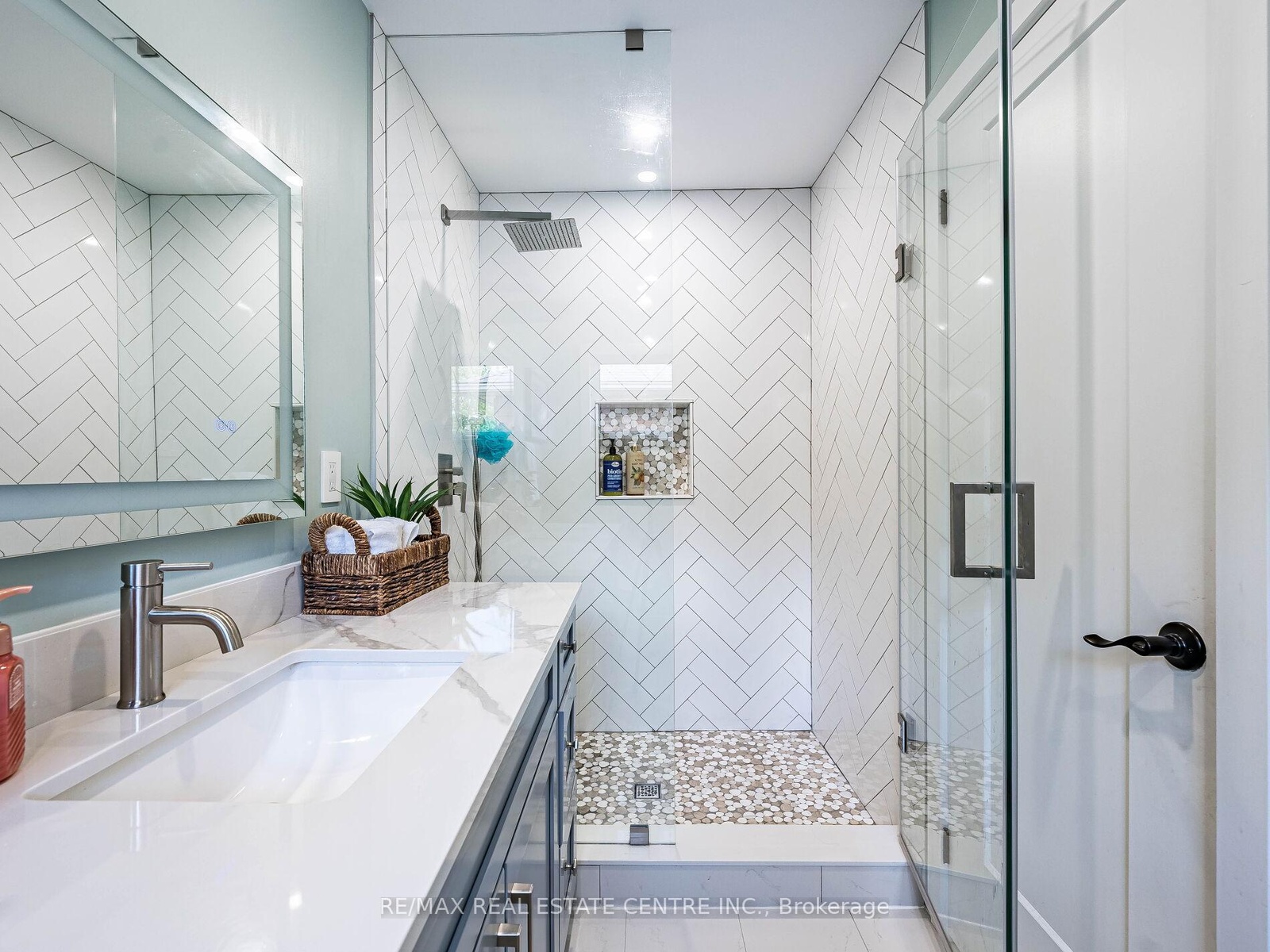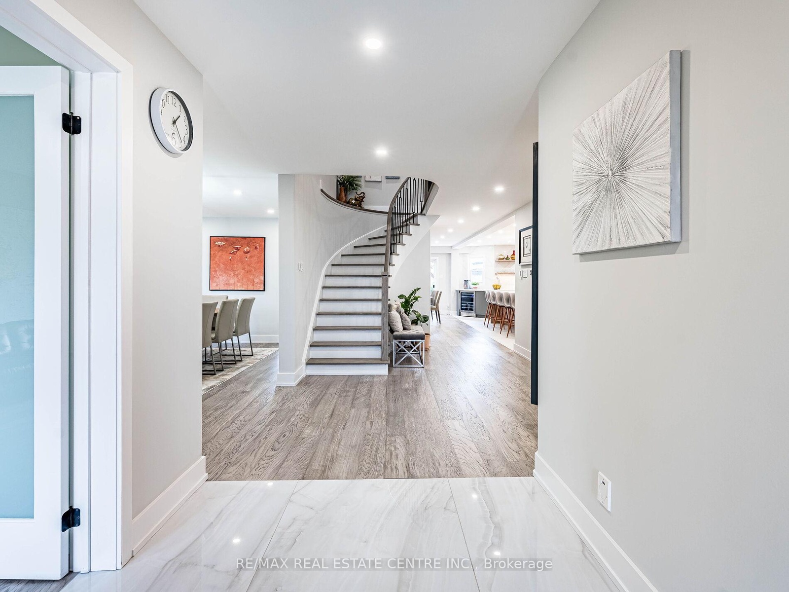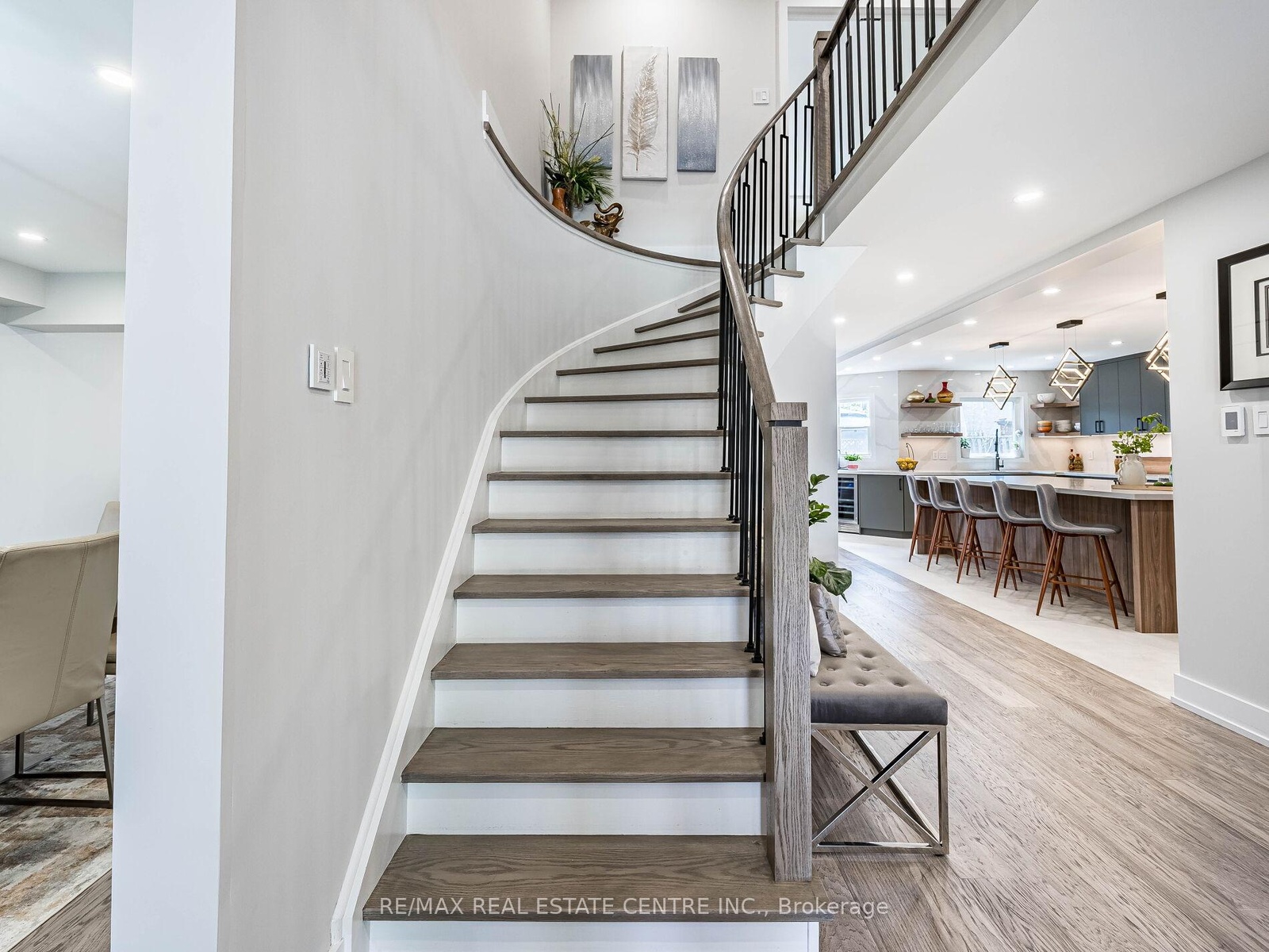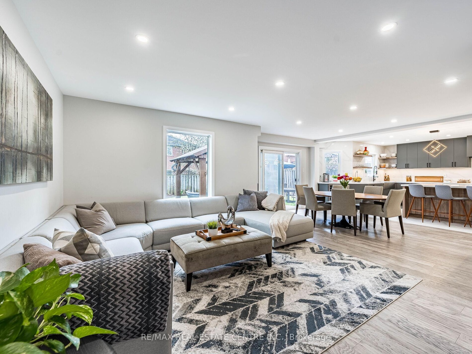 Stunning, Fully Renovated Home in a Family-Friendly Neighbourhood!This beautifully updated residence blends luxury and practicality. The open-concept layout flows seamlessly from the elegant living and formal dining areas to the spacious family room with cozy fireplace. At the heart of the home is a gourmet kitchen with heated floors, grand quartz centre island, counter-to-ceiling quartz backsplash, premium Thermador smart appliances, soft-close cabinetry, smart-fit corner drawers, and breakfast area with built-in coffee nook. The main floor also features a convenient laundry room with gas line hookup. Upstairs, the primary suite impresses with a fireplace, massive his/hers walk-in closet and spa-like 5-pc ensuite with curbless glass shower, soaker tub, double vanity and smart toilet. Bedrooms 2 & 3 share a Jack & Jill bath, while bedroom 4 has its own 3-pc ensuite. All bedrooms include closet organizers, ceiling fans and USB outlets. The professionally finished basement offers a private 2-bedroom in-law suite with separate entrance, full kitchen, private laundry, large living space and modern 3-pc bath- ideal for extended family or guests. Enjoy outdoor living in the landscaped backyard with large gazebo, firepit and BBQ area with 2 natural gas line hookups. Other fine features: pot lights throughout, hardwood floors on main & 2nd levels, kitchen under-cabinet lighting, new bathroom exhaust fans with timers, smart thermostat, smart door camera, USB receptacles, upgraded attic and soundproof insulation, new tankless water heater, and new central vacuum. Steps to parks, trails, schools, rec centre, shopping, GO transit, QEW/403 & public transit. A must-see home!