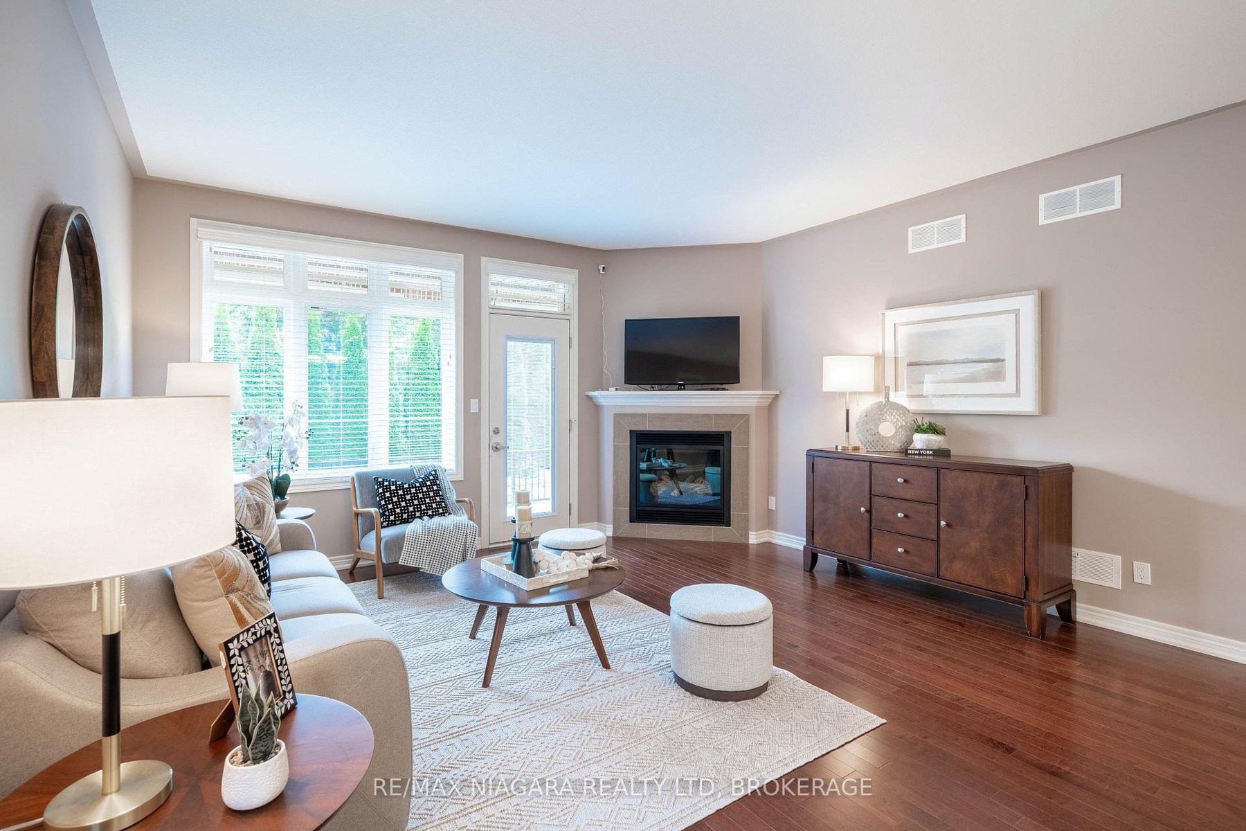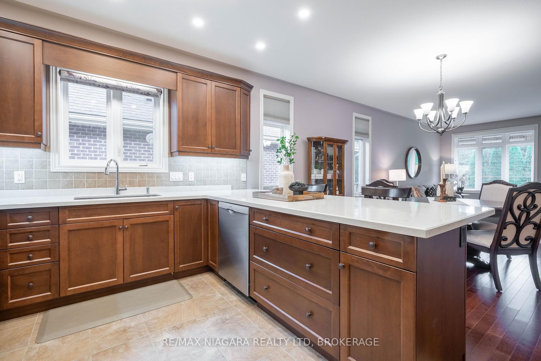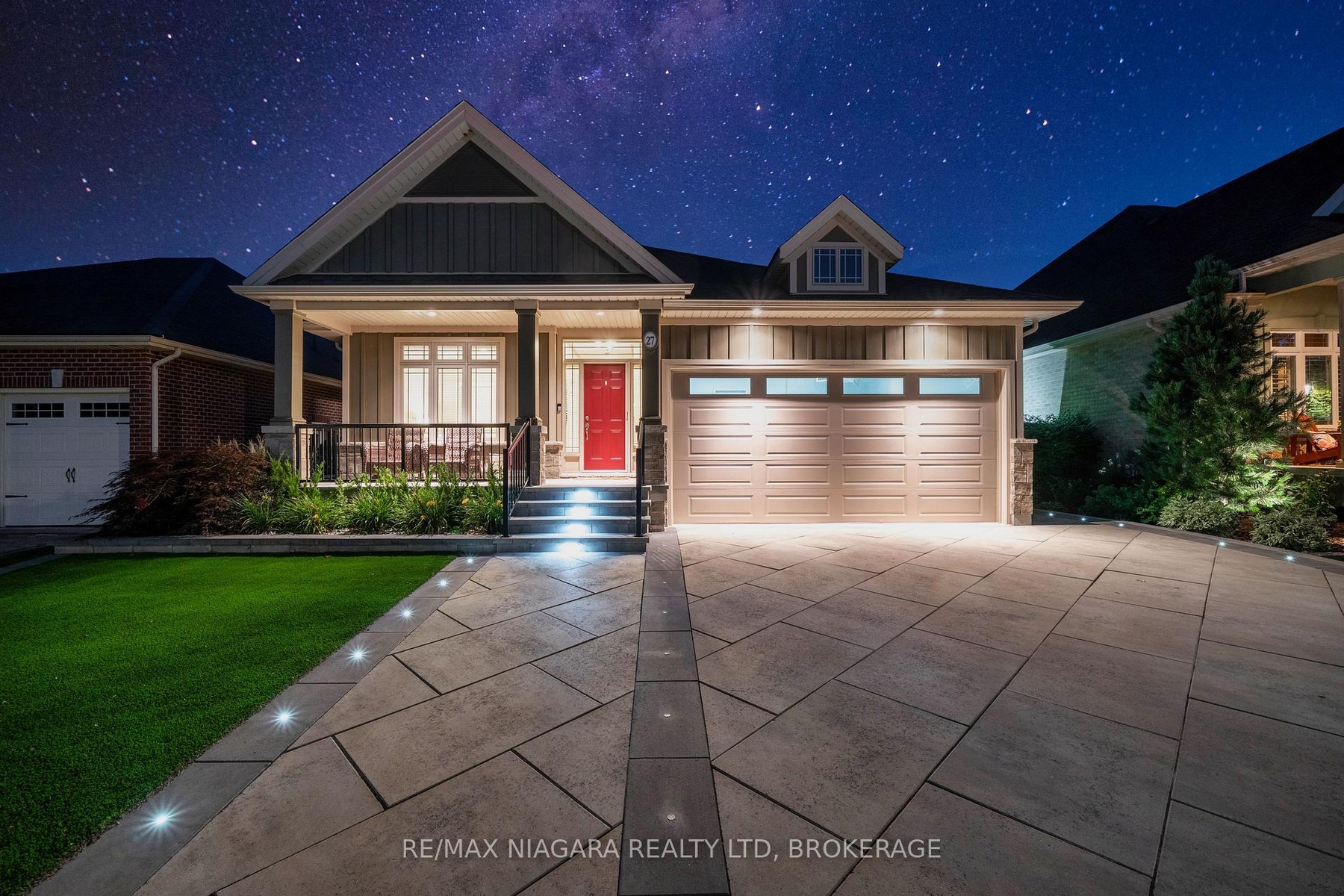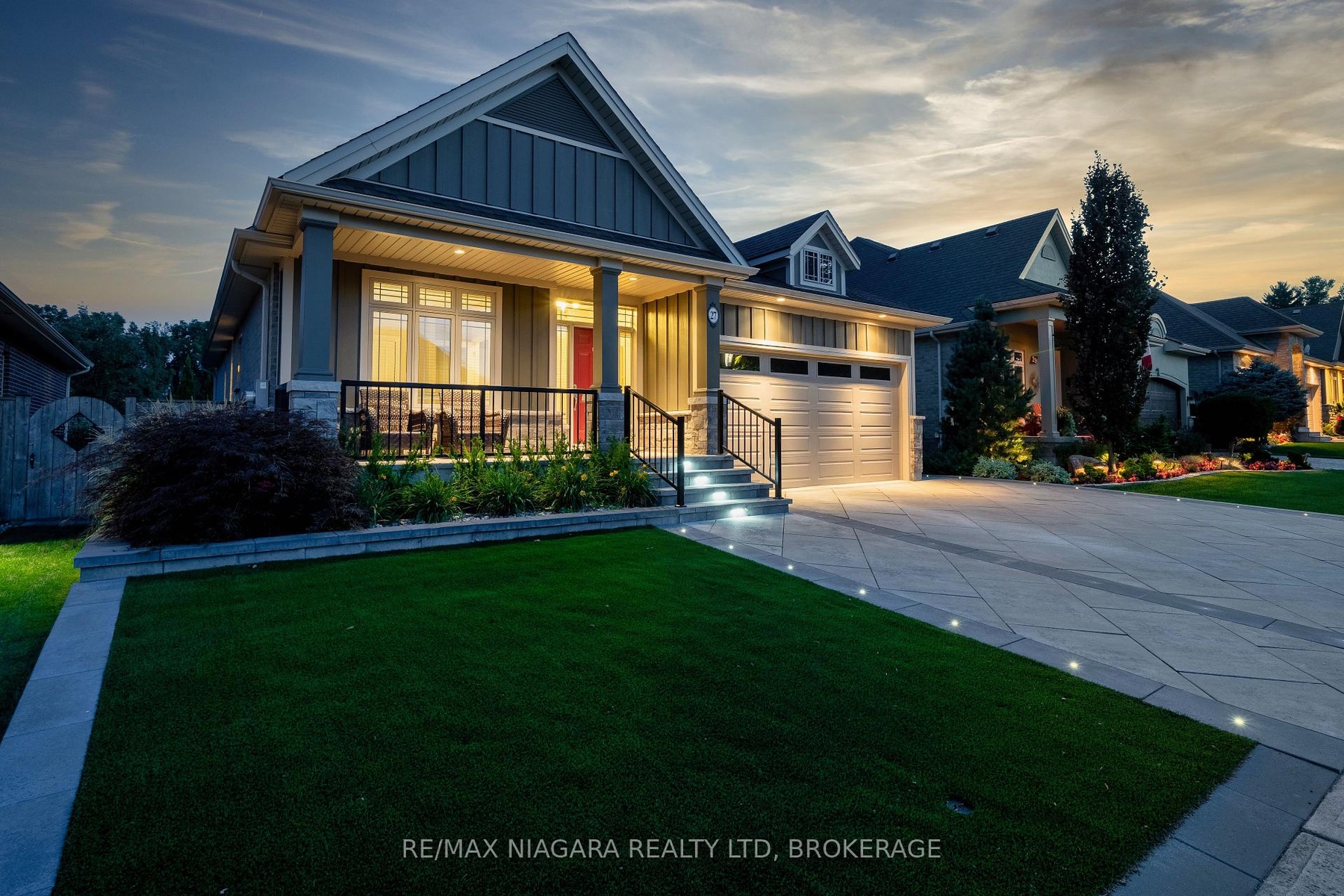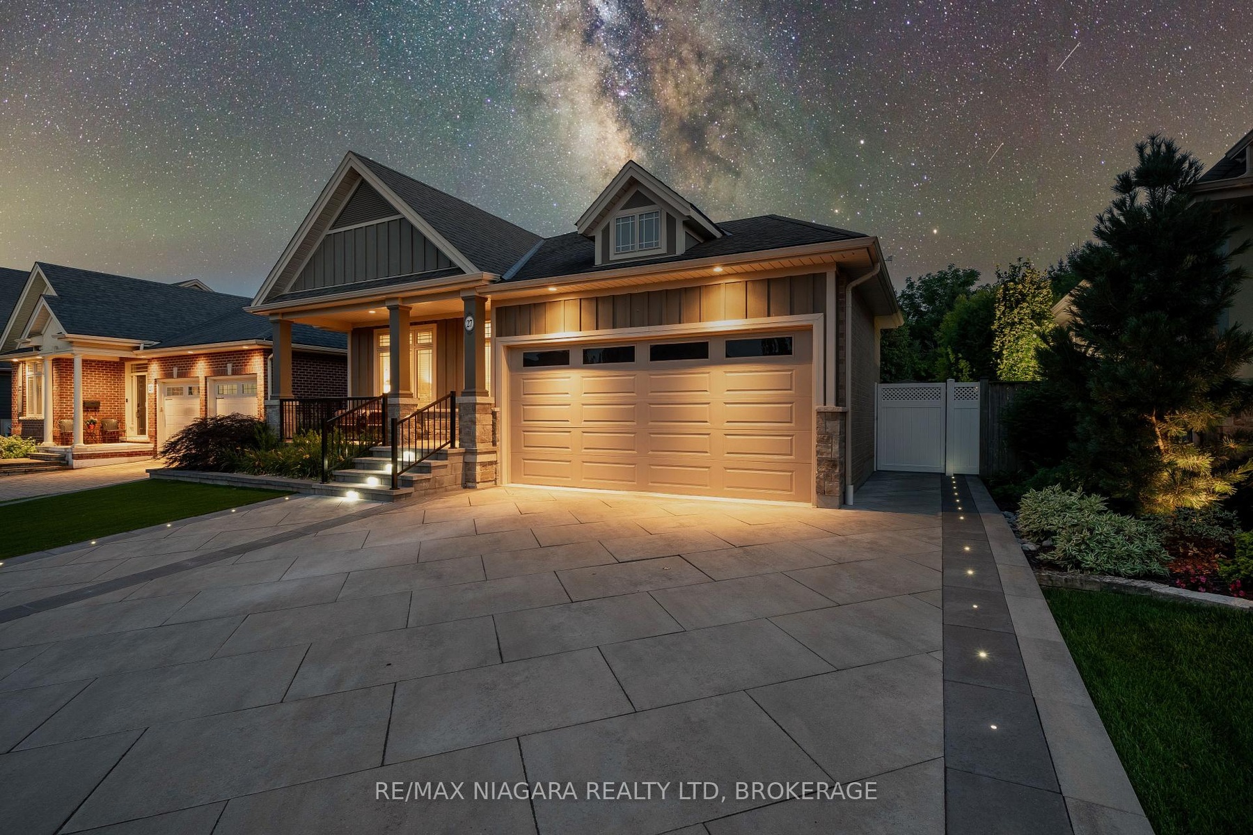 This beautifully maintained bungalow, ideally situated in the highly sought-after St. Davids community of Niagara-on-the-Lake. Combining comfort, style, and convenience, this home offers easy access to world-class golf courses, boutique shops, acclaimed restaurants, and the U.S. borderperfect for travelers or commuters alike.From the moment you arrive, the home's curb appeal shines with low-maintenance landscaping, lush evergreen turf, a full irrigation system, and mature gardens. The heated interlock driveway, accented with ambient lighting, ensures year-round functionality and elegance.Step inside to a bright and welcoming foyer, where large windows fill the space with natural light. The heart of the home is the spacious kitchen, thoughtfully designed with ample cabinetry, stylish backsplash, and a functional layout ideal for everyday cooking or entertaining. It flows seamlessly into the dining area and cozy living room, complete with a gas fireplaceperfect for relaxing evenings or family gatherings.The main level features a generous primary suite with a luxurious 5-piece ensuite, including double sinks, a separate shower, and his-and-hers closets. A second bedroom at the front of the home offers flexibility as a guest room or home office. A convenient 2-piece powder room and laundry area complete the main floor.The fully finished lower level provides excellent additional living space, featuring a comfortable recreation room with a potential bar area, a third bedroom, a renovated 3-piece bathroom, and a large utility room offering ample storage options. Additional highlights include a heated and insulated garage with attic access, a fully powered outdoor shed, fenced backyard with lush gardens and a deck ideal for outdoor dining or relaxation, heated floor in the 5pc ensuite and downstairs bath.Closet organizer for master bedroom, and the Remote awning outback.Don't miss your chance to make it yours!