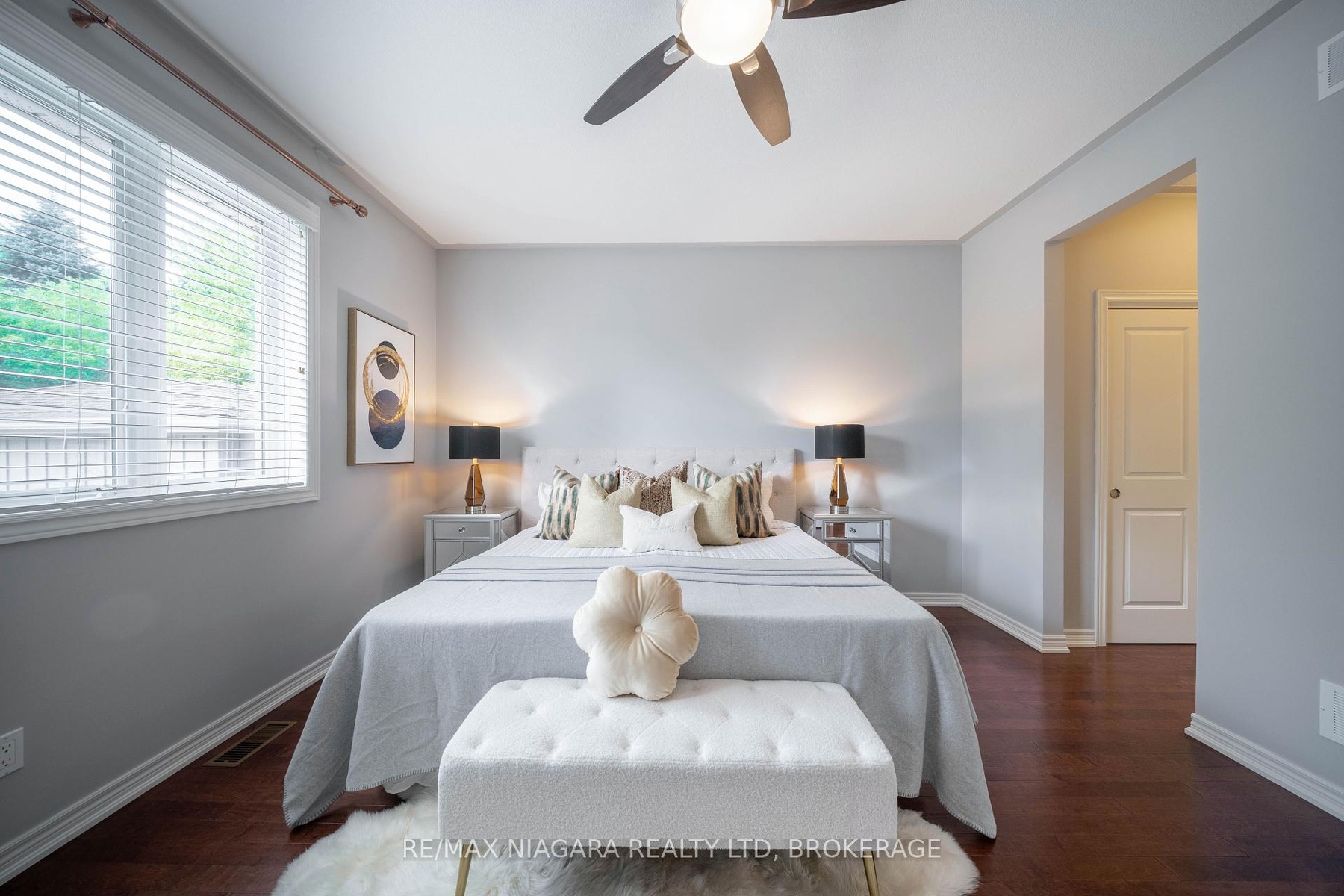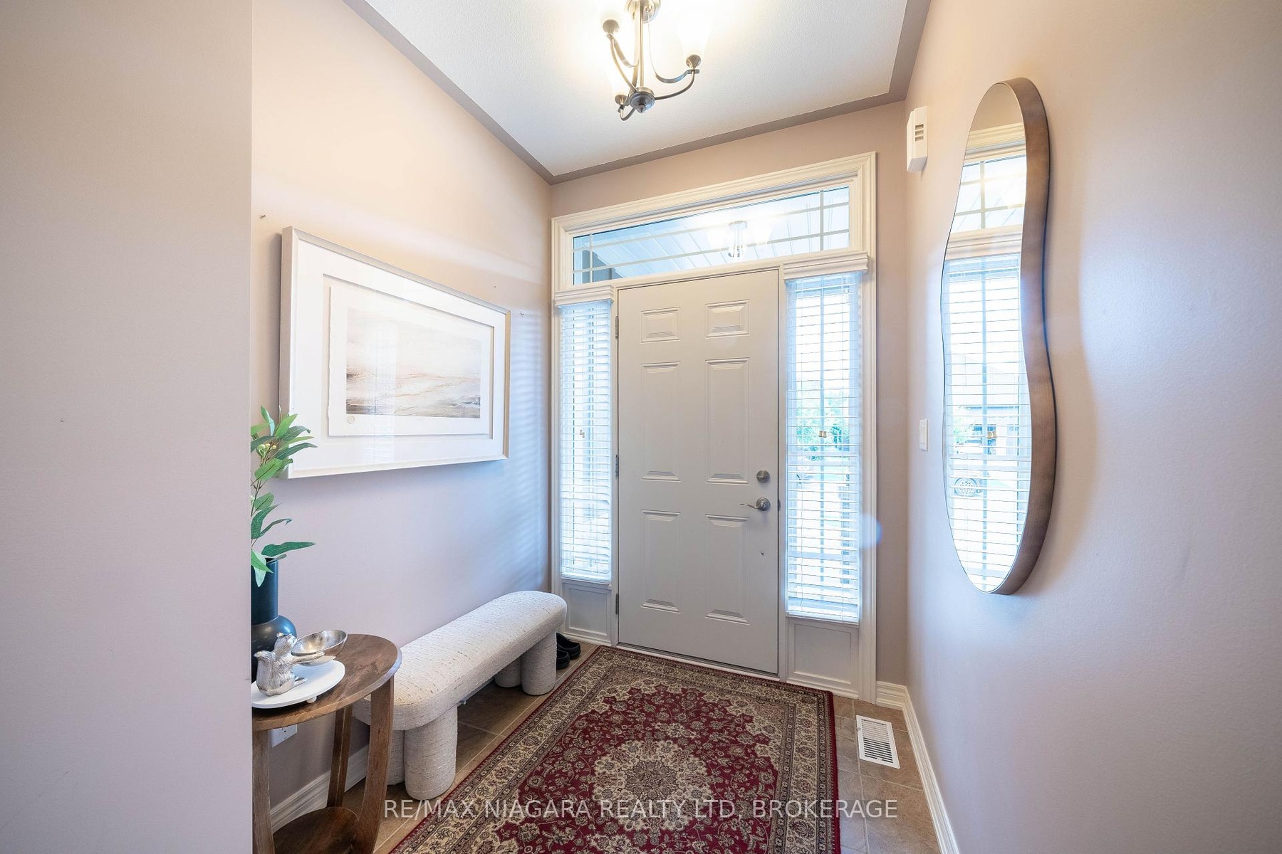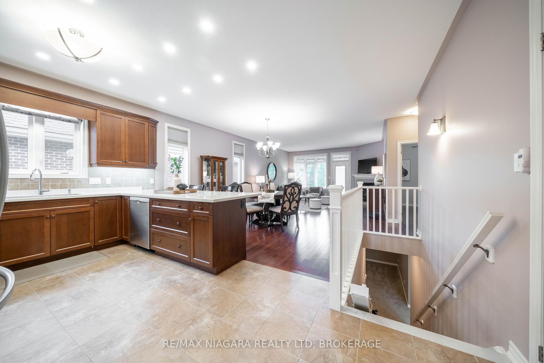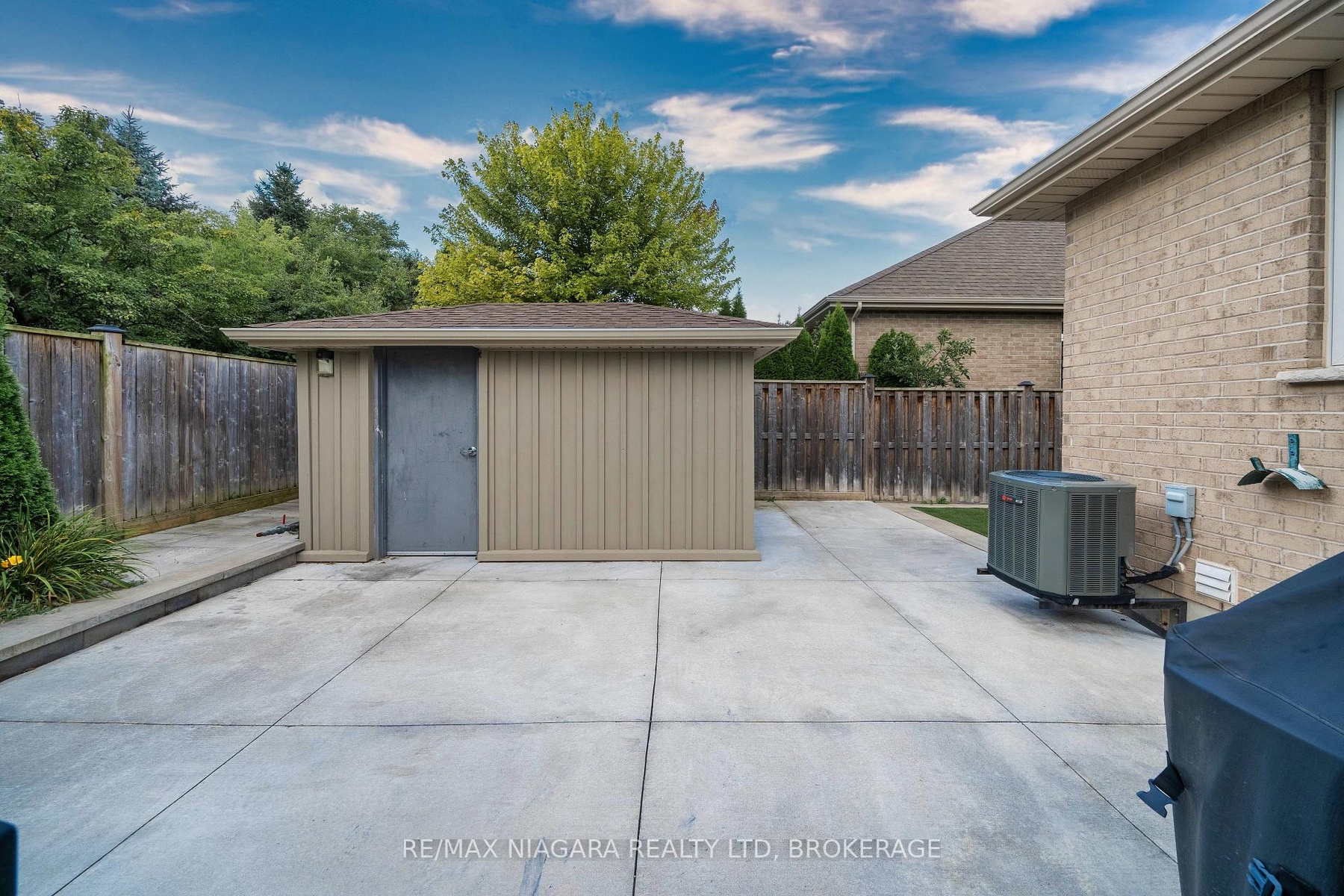 This beautifully maintained bungalow, ideally situated in the highly sought-after St. Davids community of Niagara-on-the-Lake. Combining comfort, style, and convenience, this home offers easy access to world-class golf courses, boutique shops, acclaimed restaurants, and the U.S. borderperfect for travelers or commuters alike.From the moment you arrive, the home's curb appeal shines with low-maintenance landscaping, lush evergreen turf, a full irrigation system, and mature gardens. The heated interlock driveway, accented with ambient lighting, ensures year-round functionality and elegance.Step inside to a bright and welcoming foyer, where large windows fill the space with natural light. The heart of the home is the spacious kitchen, thoughtfully designed with ample cabinetry, stylish backsplash, and a functional layout ideal for everyday cooking or entertaining. It flows seamlessly into the dining area and cozy living room, complete with a gas fireplaceperfect for relaxing evenings or family gatherings.The main level features a generous primary suite with a luxurious 5-piece ensuite, including double sinks, a separate shower, and his-and-hers closets. A second bedroom at the front of the home offers flexibility as a guest room or home office. A convenient 2-piece powder room and laundry area complete the main floor.The fully finished lower level provides excellent additional living space, featuring a comfortable recreation room with a potential bar area, a third bedroom, a renovated 3-piece bathroom, and a large utility room offering ample storage options. Additional highlights include a heated and insulated garage with attic access, a fully powered outdoor shed, fenced backyard with lush gardens and a deck ideal for outdoor dining or relaxation, heated floor in the 5pc ensuite and downstairs bath.Closet organizer for master bedroom, and the Remote awning outback.Don't miss your chance to make it yours!