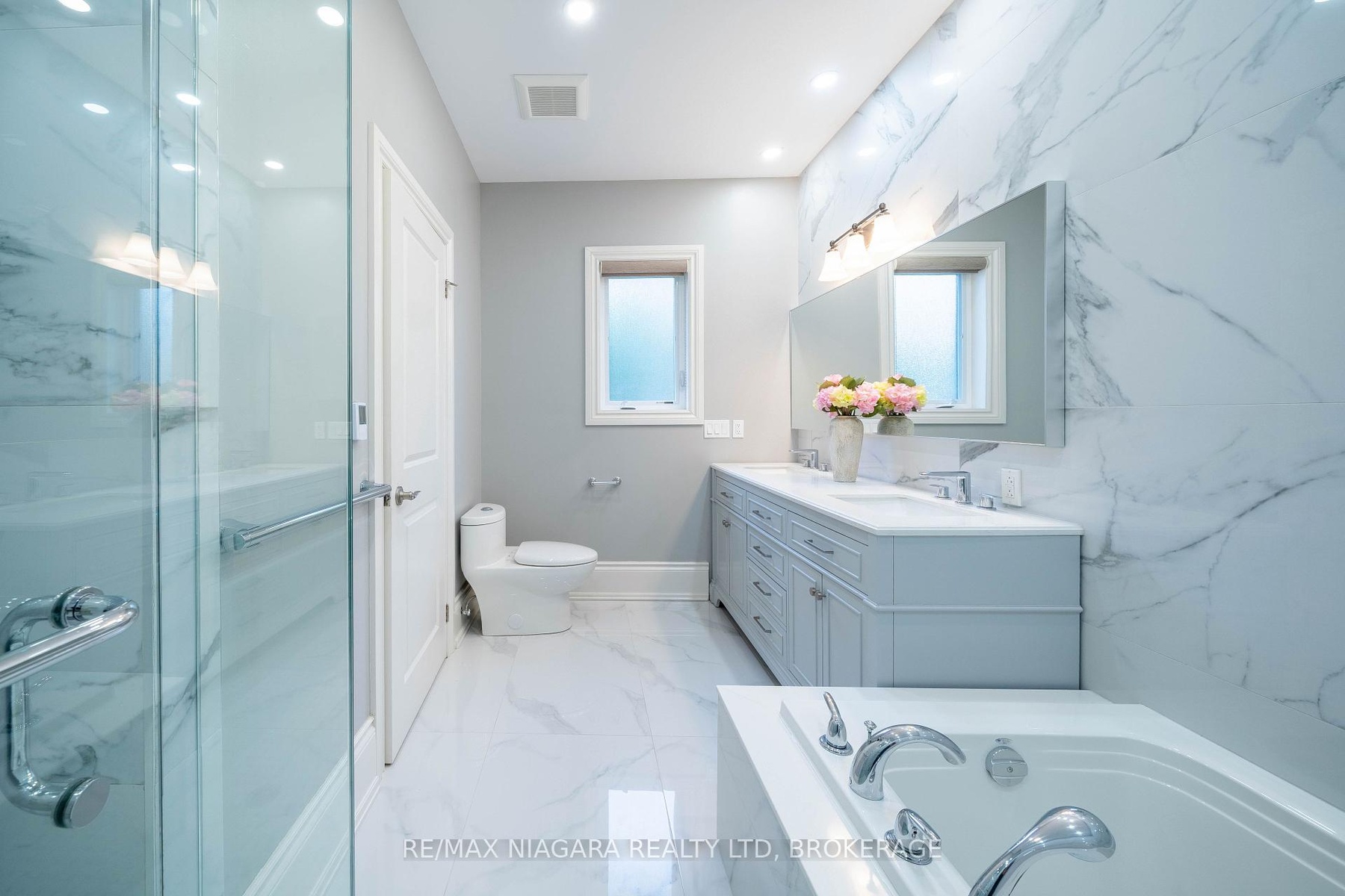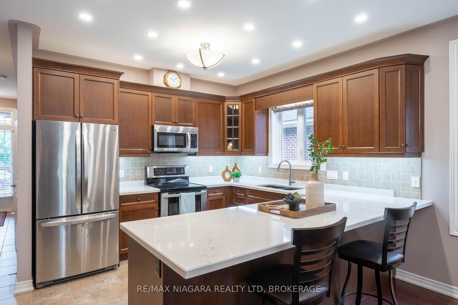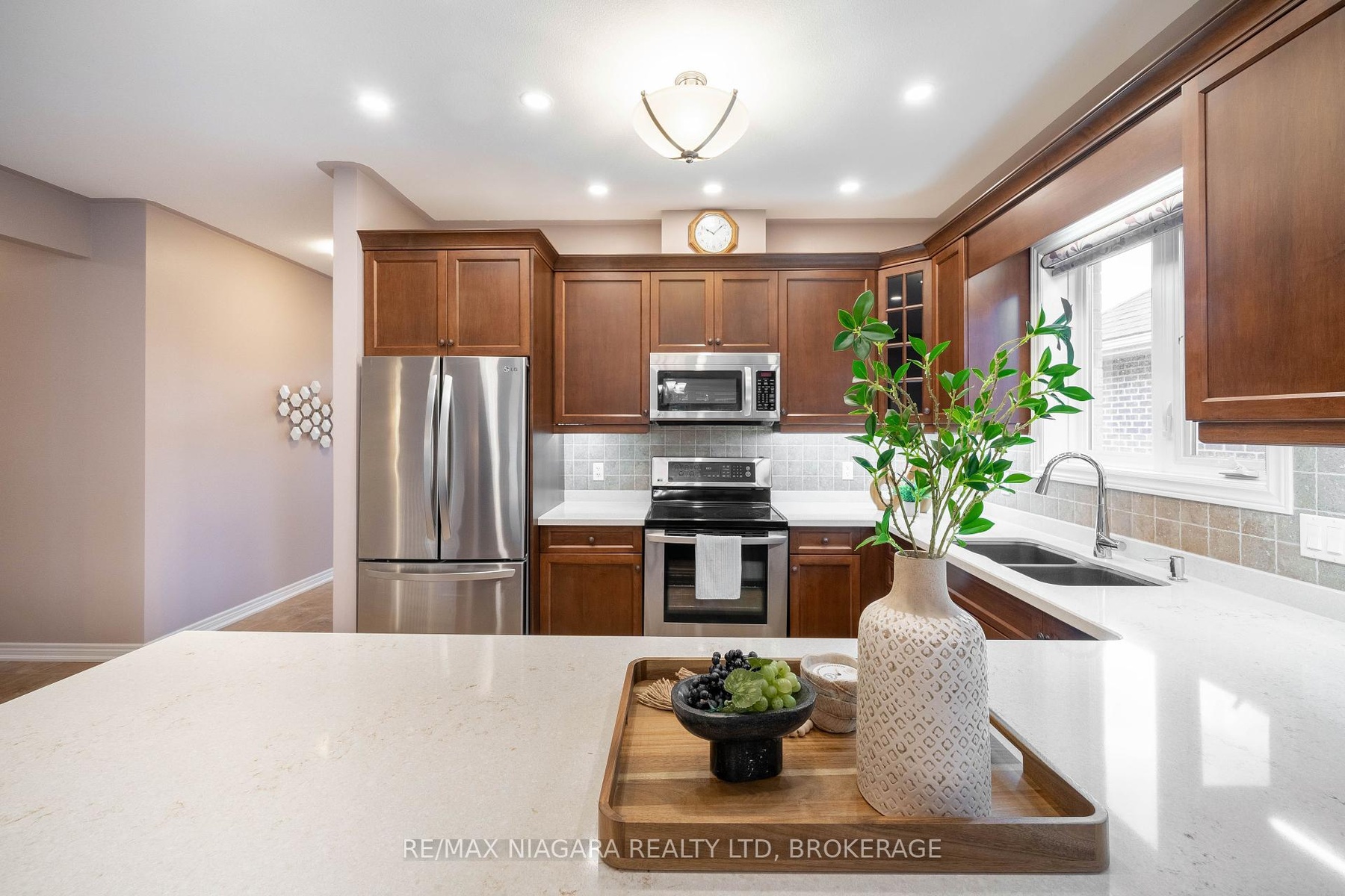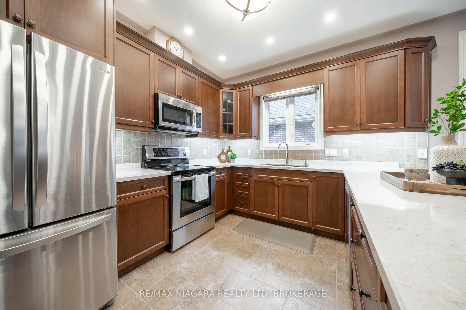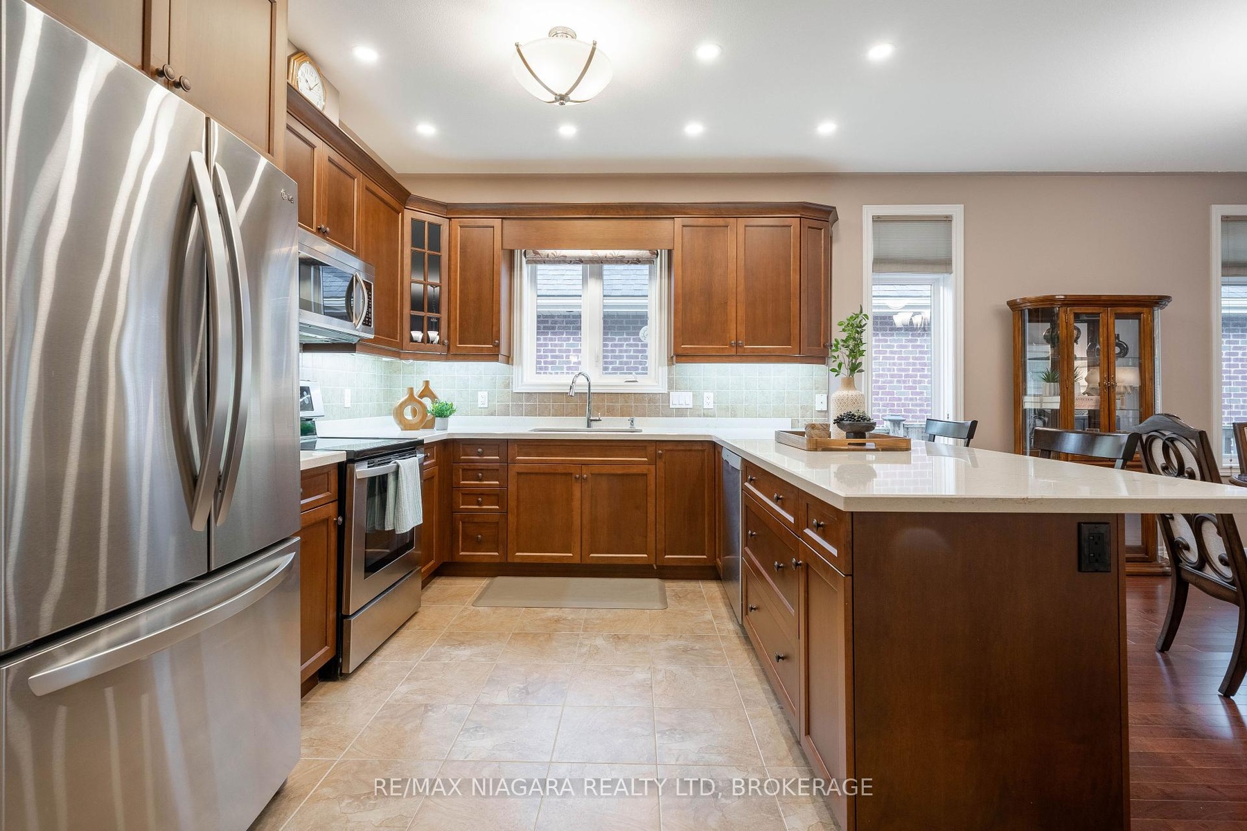 This beautifully maintained bungalow, ideally situated in the highly sought-after St. Davids community of Niagara-on-the-Lake. Combining comfort, style, and convenience, this home offers easy access to world-class golf courses, boutique shops, acclaimed restaurants, and the U.S. borderperfect for travelers or commuters alike.From the moment you arrive, the home's curb appeal shines with low-maintenance landscaping, lush evergreen turf, a full irrigation system, and mature gardens. The heated interlock driveway, accented with ambient lighting, ensures year-round functionality and elegance.Step inside to a bright and welcoming foyer, where large windows fill the space with natural light. The heart of the home is the spacious kitchen, thoughtfully designed with ample cabinetry, stylish backsplash, and a functional layout ideal for everyday cooking or entertaining. It flows seamlessly into the dining area and cozy living room, complete with a gas fireplaceperfect for relaxing evenings or family gatherings.The main level features a generous primary suite with a luxurious 5-piece ensuite, including double sinks, a separate shower, and his-and-hers closets. A second bedroom at the front of the home offers flexibility as a guest room or home office. A convenient 2-piece powder room and laundry area complete the main floor.The fully finished lower level provides excellent additional living space, featuring a comfortable recreation room with a potential bar area, a third bedroom, a renovated 3-piece bathroom, and a large utility room offering ample storage options. Additional highlights include a heated and insulated garage with attic access, a fully powered outdoor shed, fenced backyard with lush gardens and a deck ideal for outdoor dining or relaxation, heated floor in the 5pc ensuite and downstairs bath.Closet organizer for master bedroom, and the Remote awning outback.Don't miss your chance to make it yours!