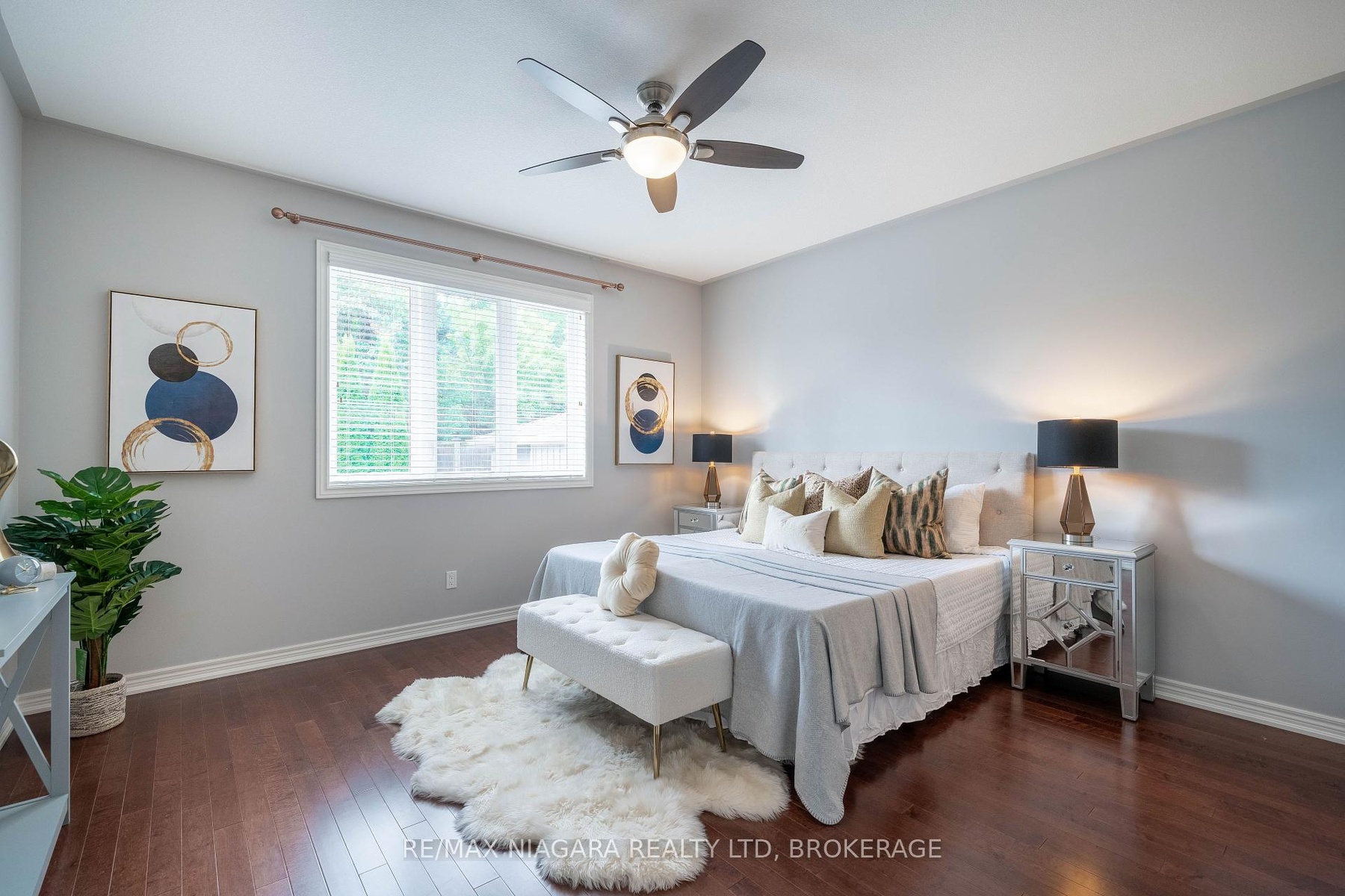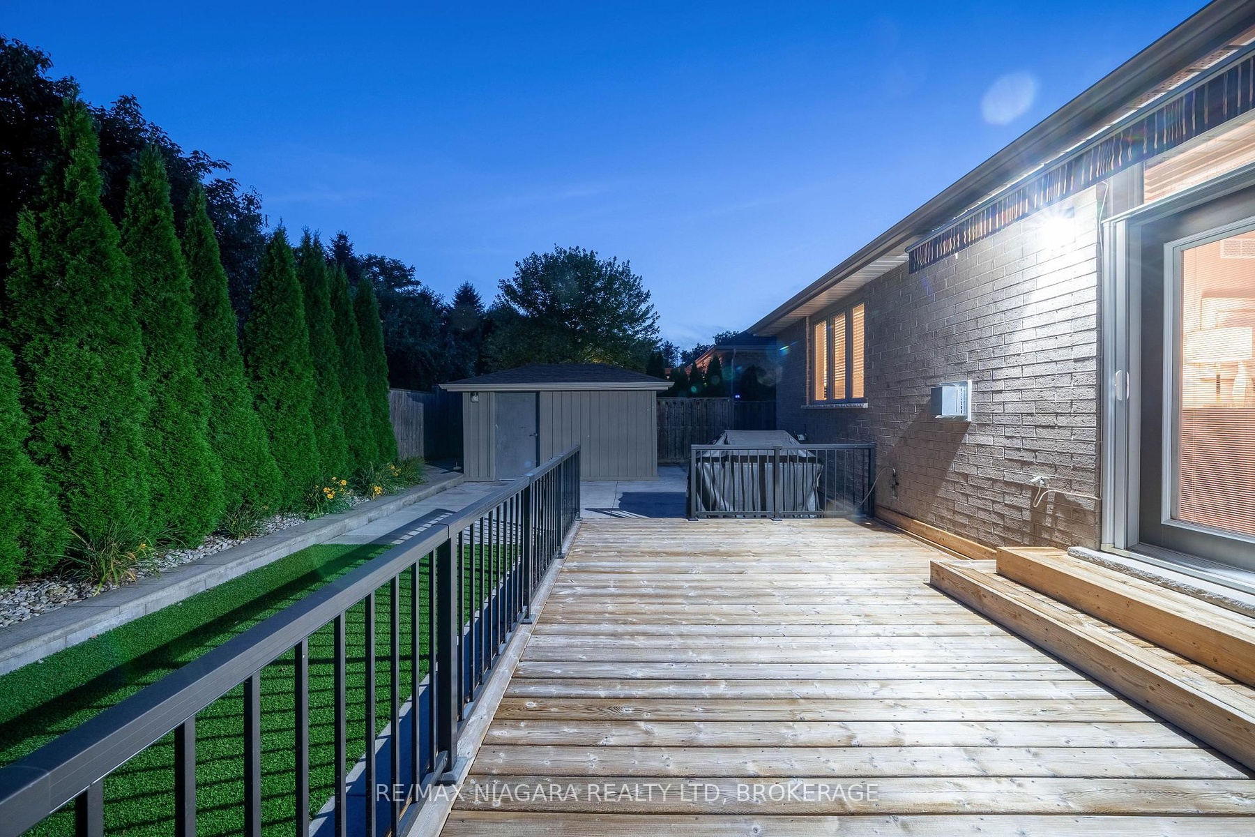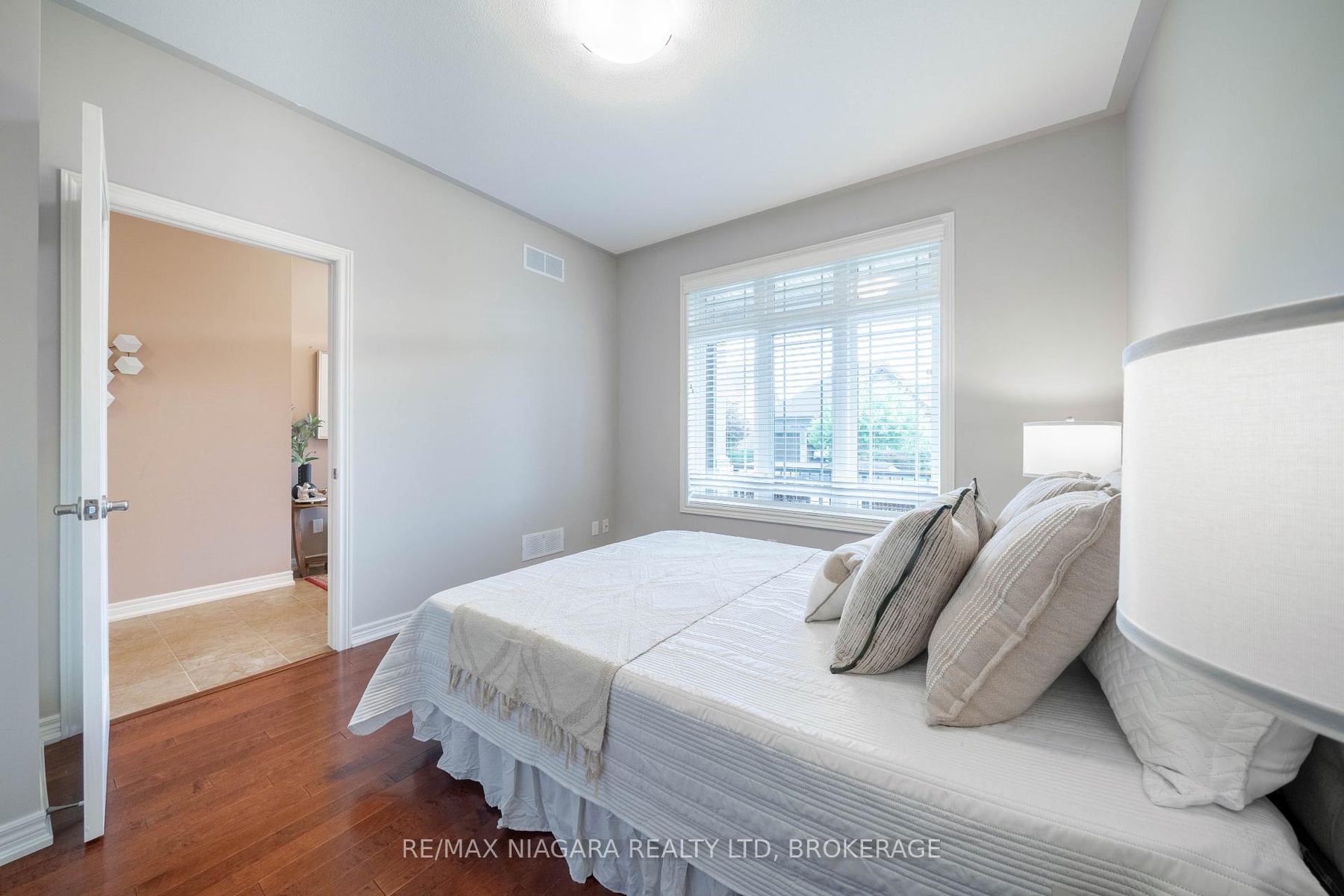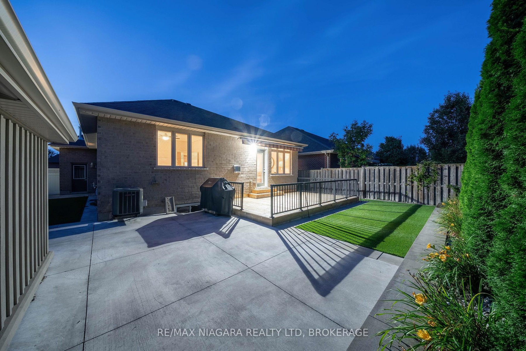 This beautifully maintained bungalow, ideally situated in the highly sought-after St. Davids community of Niagara-on-the-Lake. Combining comfort, style, and convenience, this home offers easy access to world-class golf courses, boutique shops, acclaimed restaurants, and the U.S. borderperfect for travelers or commuters alike.From the moment you arrive, the home's curb appeal shines with low-maintenance landscaping, lush evergreen turf, a full irrigation system, and mature gardens. The heated interlock driveway, accented with ambient lighting, ensures year-round functionality and elegance.Step inside to a bright and welcoming foyer, where large windows fill the space with natural light. The heart of the home is the spacious kitchen, thoughtfully designed with ample cabinetry, stylish backsplash, and a functional layout ideal for everyday cooking or entertaining. It flows seamlessly into the dining area and cozy living room, complete with a gas fireplaceperfect for relaxing evenings or family gatherings.The main level features a generous primary suite with a luxurious 5-piece ensuite, including double sinks, a separate shower, and his-and-hers closets. A second bedroom at the front of the home offers flexibility as a guest room or home office. A convenient 2-piece powder room and laundry area complete the main floor.The fully finished lower level provides excellent additional living space, featuring a comfortable recreation room with a potential bar area, a third bedroom, a renovated 3-piece bathroom, and a large utility room offering ample storage options. Additional highlights include a heated and insulated garage with attic access, a fully powered outdoor shed, fenced backyard with lush gardens and a deck ideal for outdoor dining or relaxation, heated floor in the 5pc ensuite and downstairs bath.Closet organizer for master bedroom, and the Remote awning outback.Don't miss your chance to make it yours!