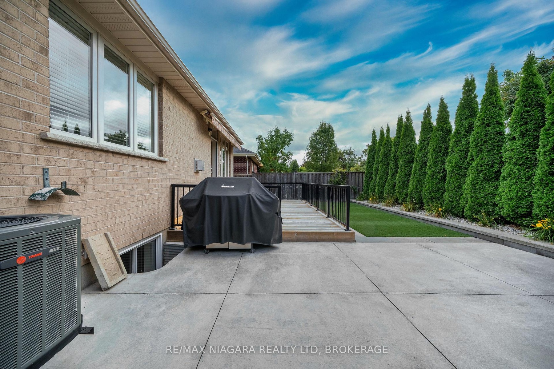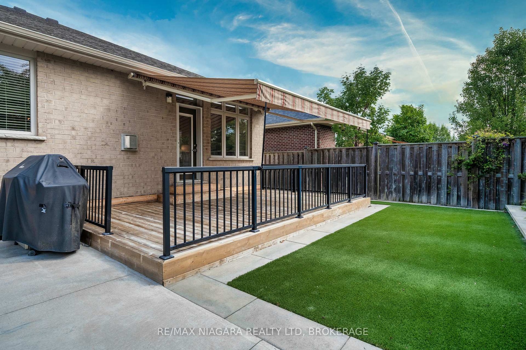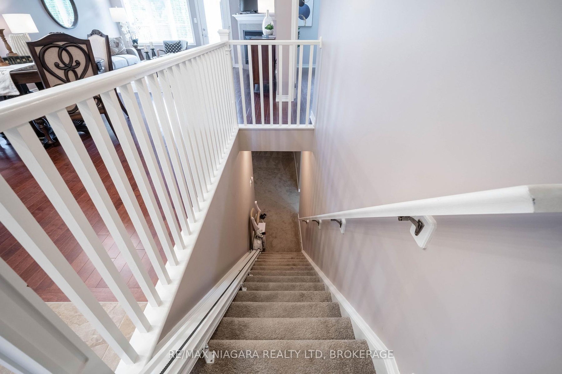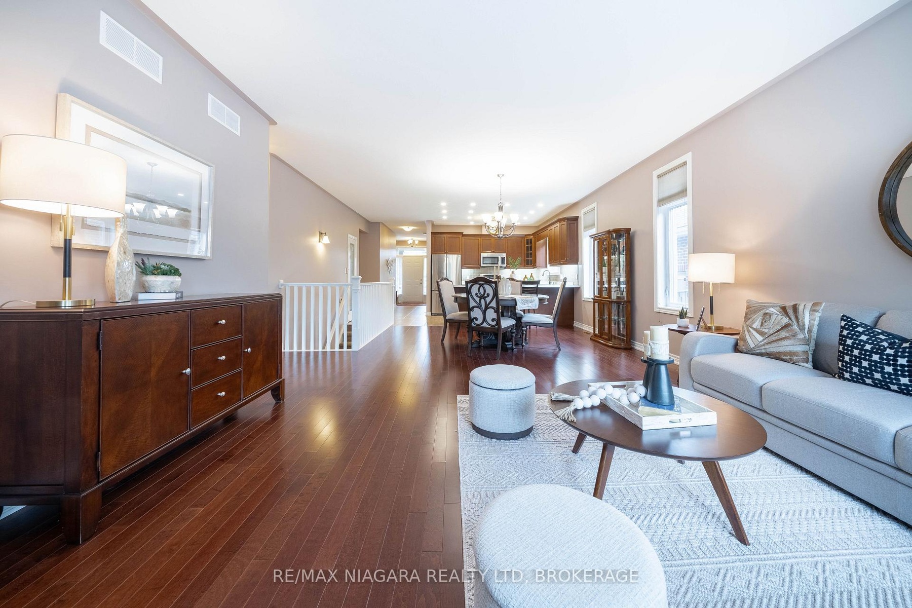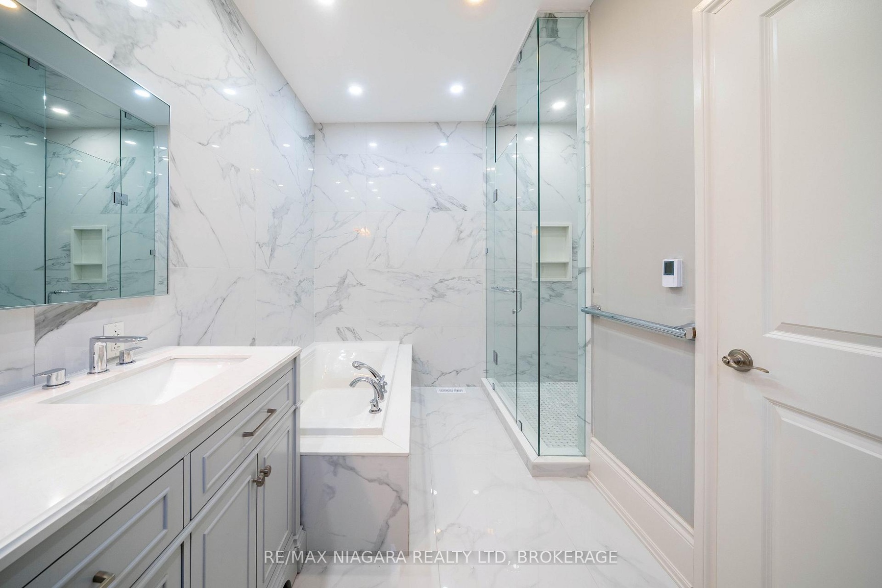 This beautifully maintained bungalow, ideally situated in the highly sought-after St. Davids community of Niagara-on-the-Lake. Combining comfort, style, and convenience, this home offers easy access to world-class golf courses, boutique shops, acclaimed restaurants, and the U.S. borderperfect for travelers or commuters alike.From the moment you arrive, the home's curb appeal shines with low-maintenance landscaping, lush evergreen turf, a full irrigation system, and mature gardens. The heated interlock driveway, accented with ambient lighting, ensures year-round functionality and elegance.Step inside to a bright and welcoming foyer, where large windows fill the space with natural light. The heart of the home is the spacious kitchen, thoughtfully designed with ample cabinetry, stylish backsplash, and a functional layout ideal for everyday cooking or entertaining. It flows seamlessly into the dining area and cozy living room, complete with a gas fireplaceperfect for relaxing evenings or family gatherings.The main level features a generous primary suite with a luxurious 5-piece ensuite, including double sinks, a separate shower, and his-and-hers closets. A second bedroom at the front of the home offers flexibility as a guest room or home office. A convenient 2-piece powder room and laundry area complete the main floor.The fully finished lower level provides excellent additional living space, featuring a comfortable recreation room with a potential bar area, a third bedroom, a renovated 3-piece bathroom, and a large utility room offering ample storage options. Additional highlights include a heated and insulated garage with attic access, a fully powered outdoor shed, fenced backyard with lush gardens and a deck ideal for outdoor dining or relaxation, heated floor in the 5pc ensuite and downstairs bath.Closet organizer for master bedroom, and the Remote awning outback.Don't miss your chance to make it yours!
