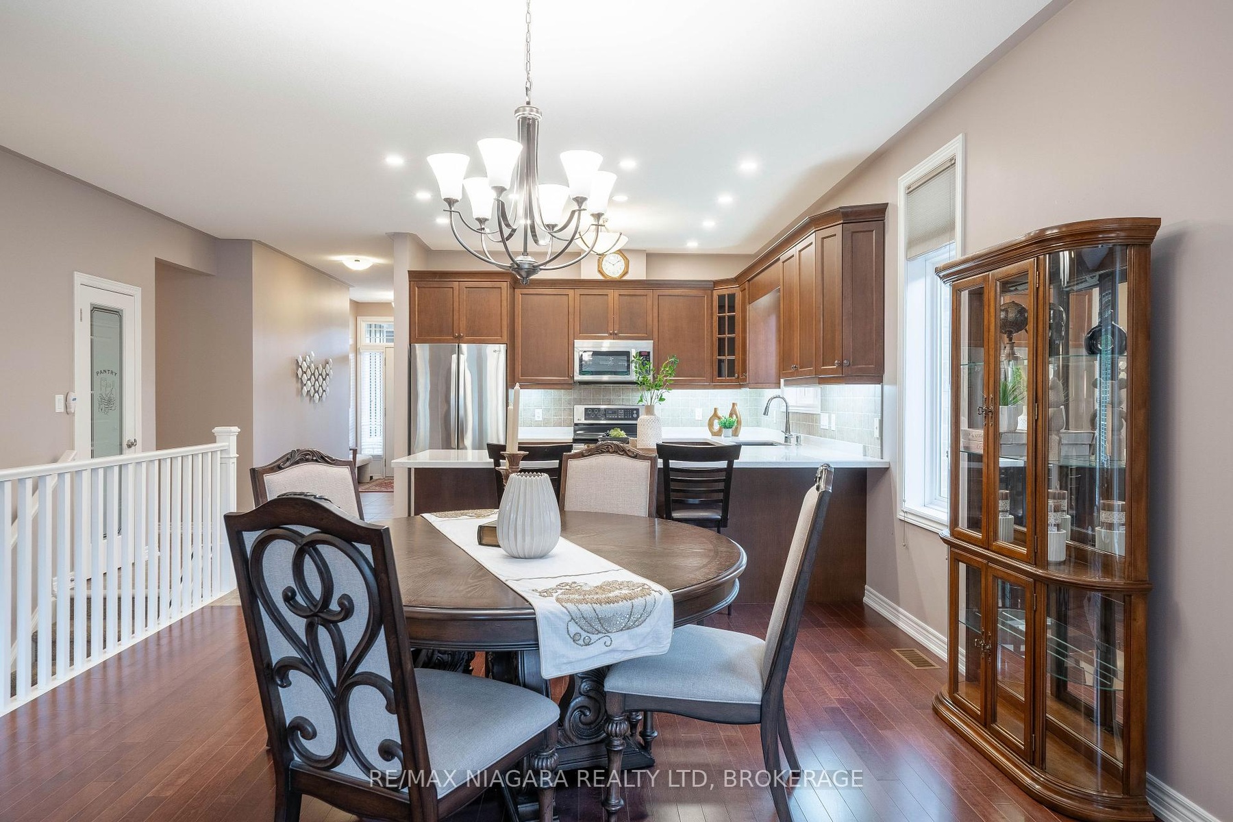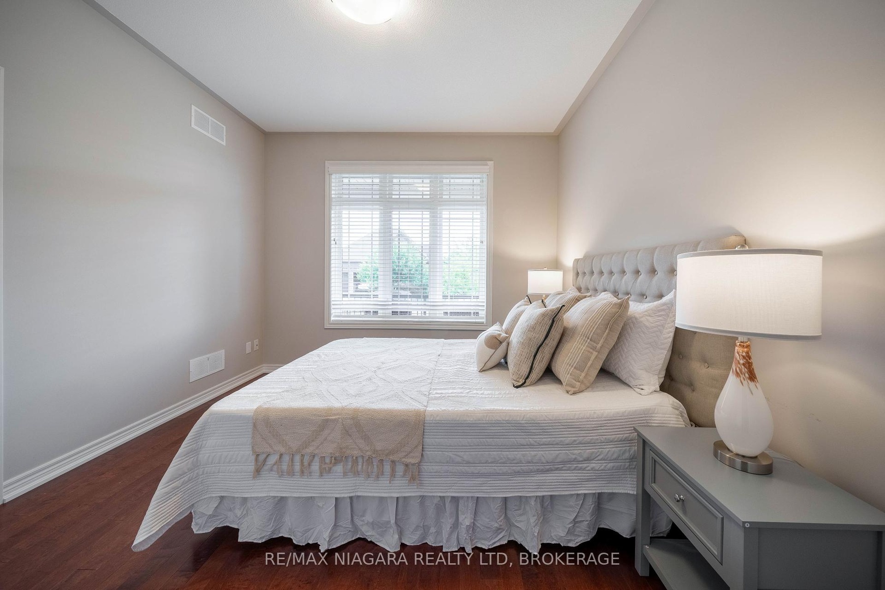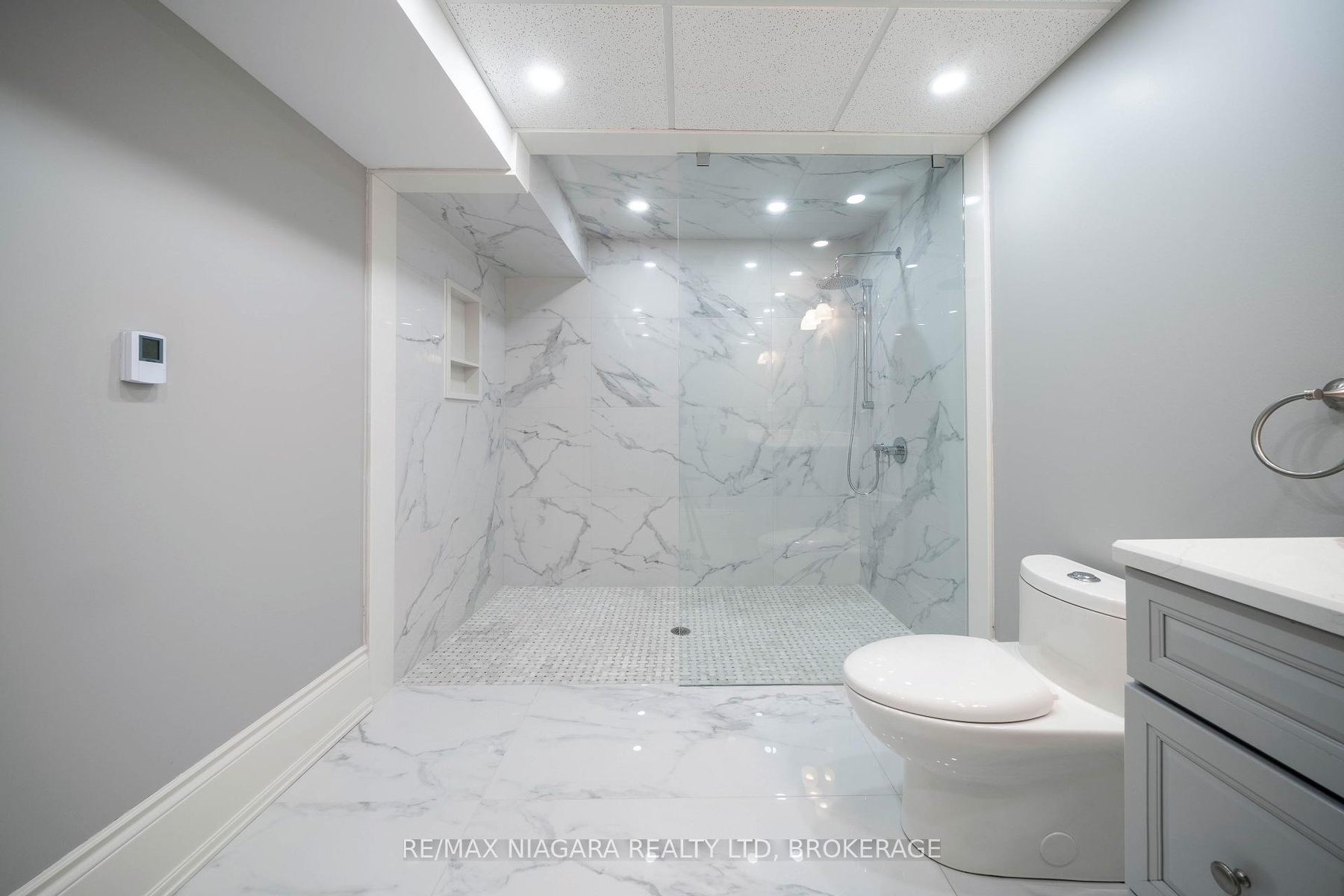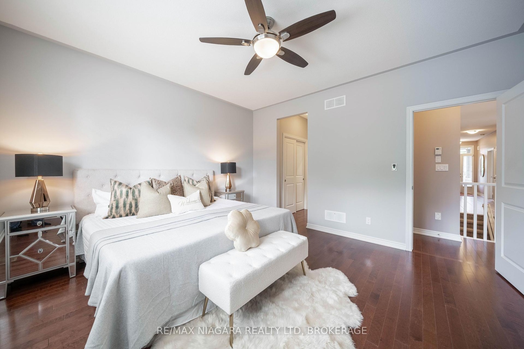This beautifully maintained bungalow, ideally situated in the highly sought-after St. Davids community of Niagara-on-the-Lake. Combining comfort, style, and convenience, this home offers easy access to world-class golf courses, boutique shops, acclaimed restaurants, and the U.S. borderperfect for travelers or commuters alike.From the moment you arrive, the home's curb appeal shines with low-maintenance landscaping, lush evergreen turf, a full irrigation system, and mature gardens. The heated interlock driveway, accented with ambient lighting, ensures year-round functionality and elegance.Step inside to a bright and welcoming foyer, where large windows fill the space with natural light. The heart of the home is the spacious kitchen, thoughtfully designed with ample cabinetry, stylish backsplash, and a functional layout ideal for everyday cooking or entertaining. It flows seamlessly into the dining area and cozy living room, complete with a gas fireplaceperfect for relaxing evenings or family gatherings.The main level features a generous primary suite with a luxurious 5-piece ensuite, including double sinks, a separate shower, and his-and-hers closets. A second bedroom at the front of the home offers flexibility as a guest room or home office. A convenient 2-piece powder room and laundry area complete the main floor.The fully finished lower level provides excellent additional living space, featuring a comfortable recreation room with a potential bar area, a third bedroom, a renovated 3-piece bathroom, and a large utility room offering ample storage options. Additional highlights include a heated and insulated garage with attic access, a fully powered outdoor shed, fenced backyard with lush gardens and a deck ideal for outdoor dining or relaxation, heated floor in the 5pc ensuite and downstairs bath.Closet organizer for master bedroom, and the Remote awning outback.Don't miss your chance to make it yours!