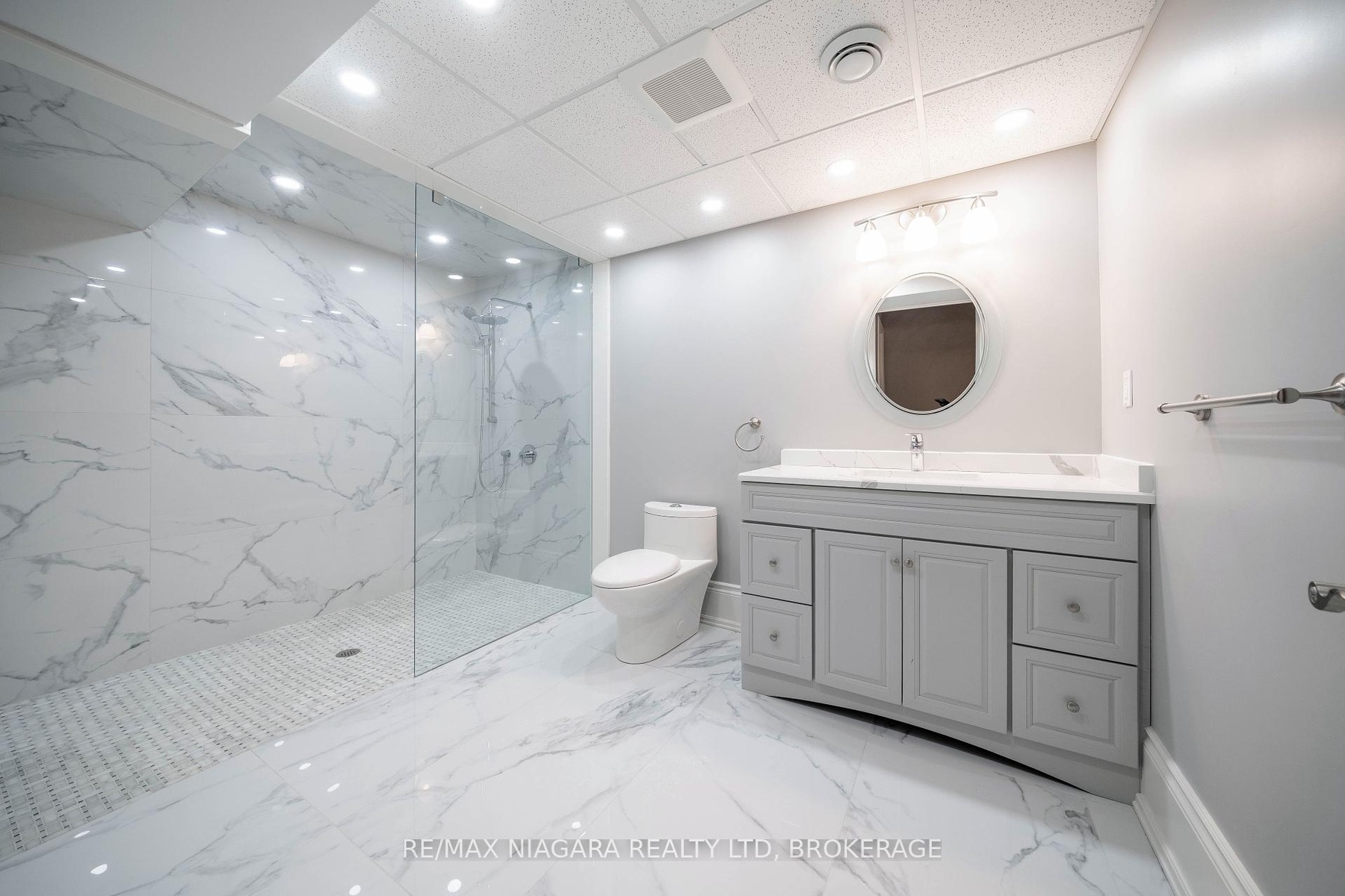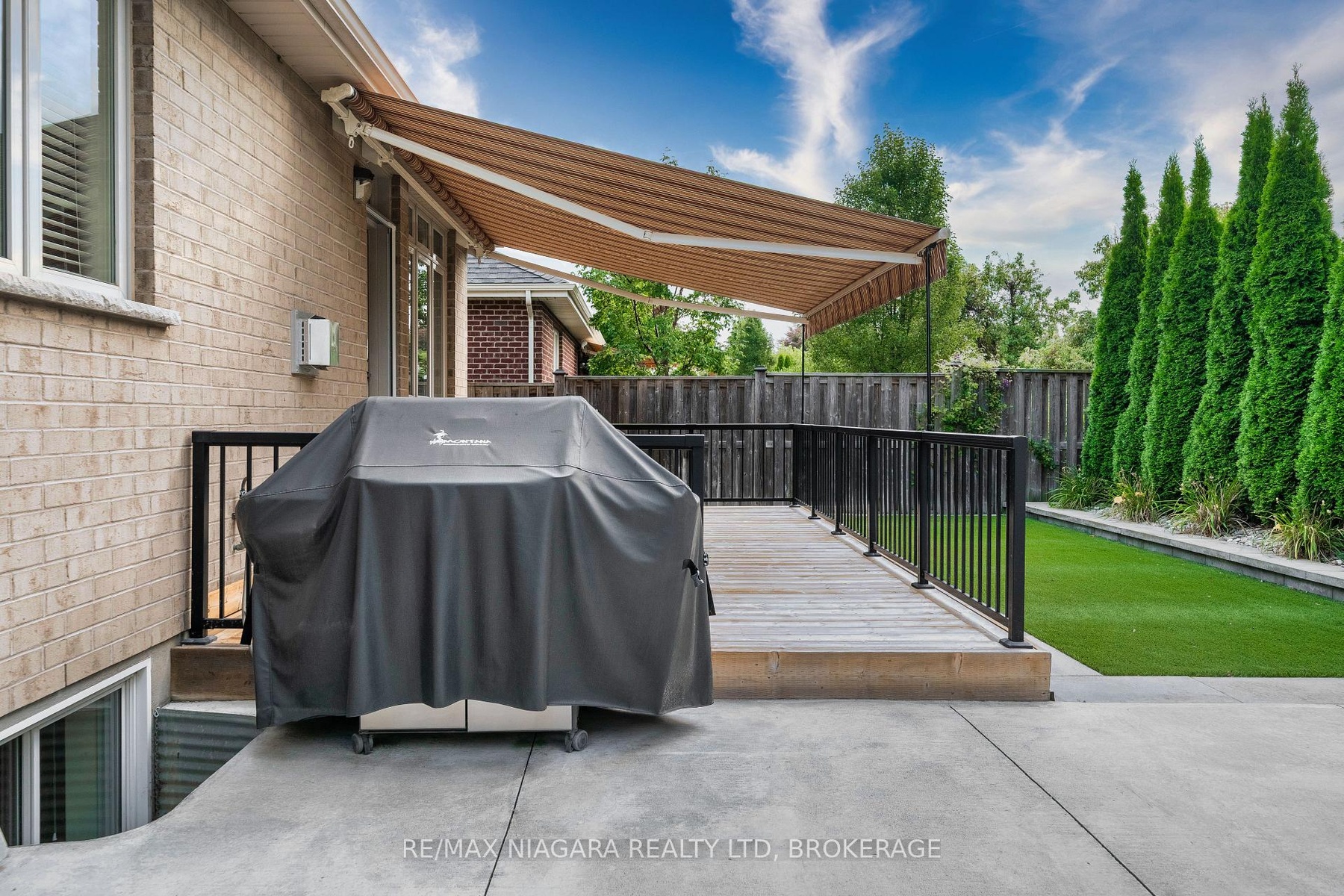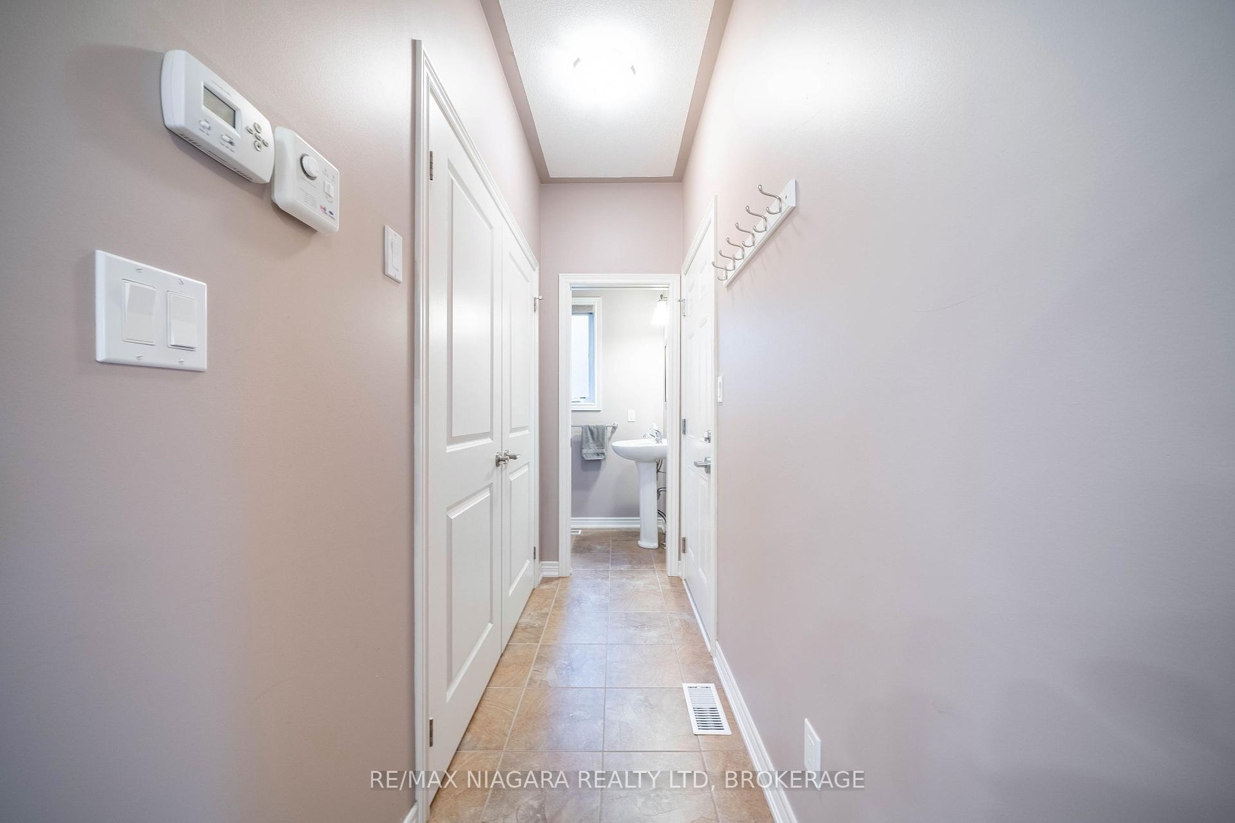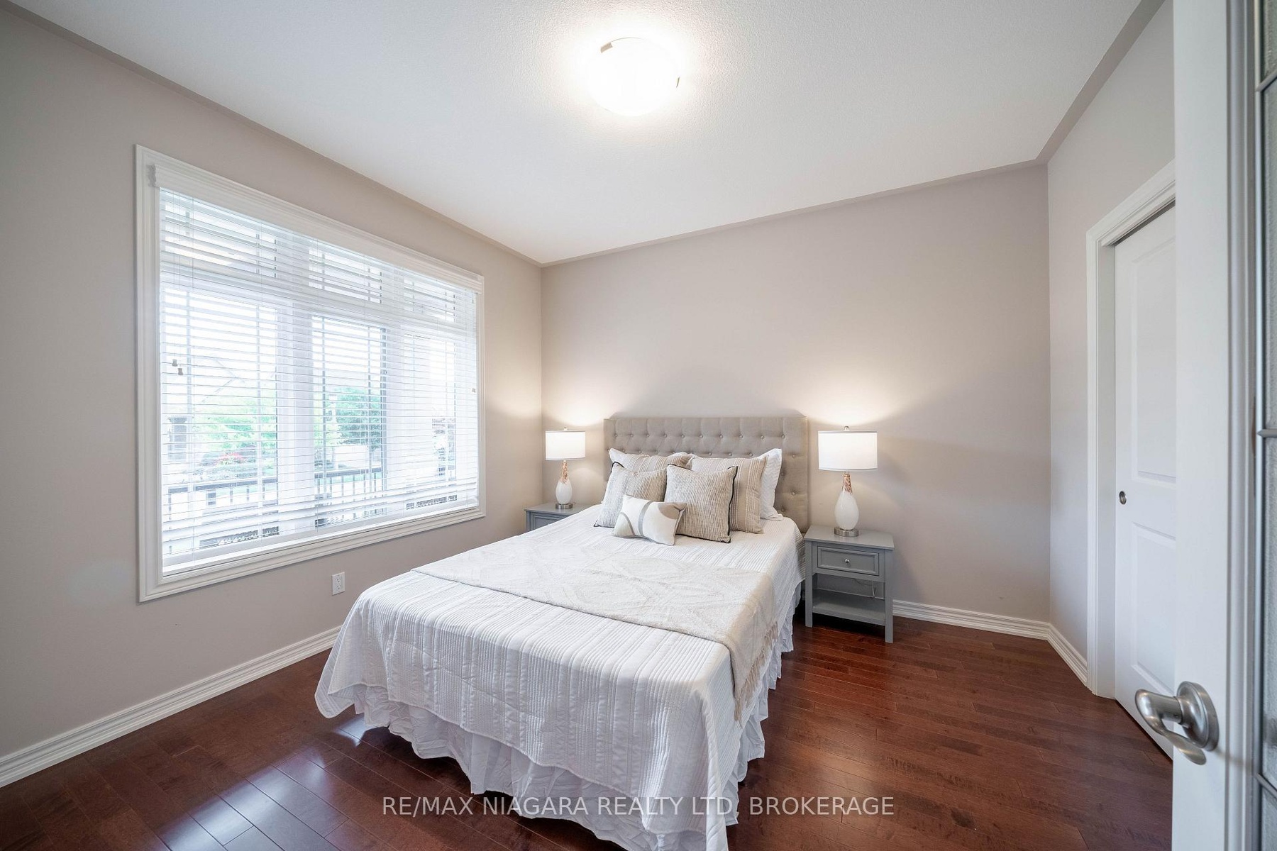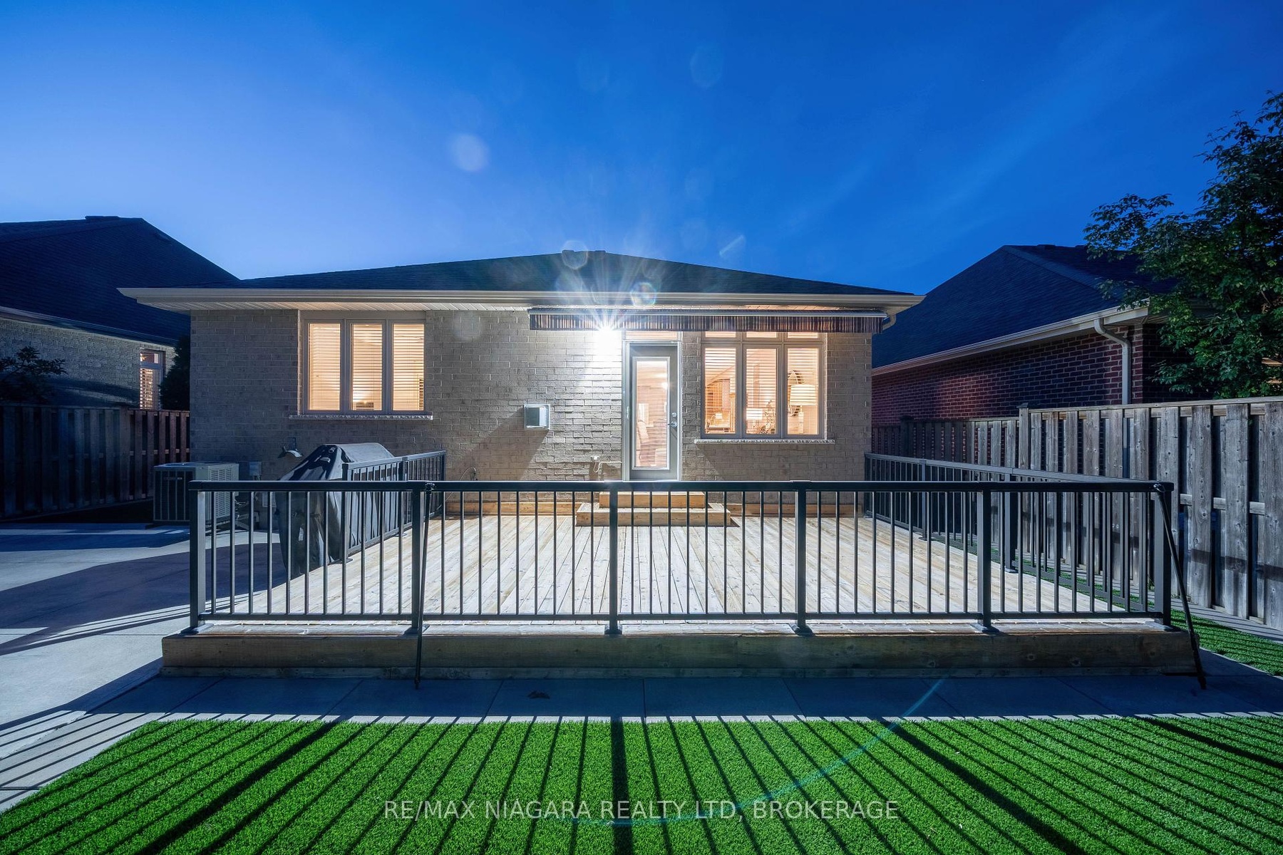 This beautifully maintained bungalow, ideally situated in the highly sought-after St. Davids community of Niagara-on-the-Lake. Combining comfort, style, and convenience, this home offers easy access to world-class golf courses, boutique shops, acclaimed restaurants, and the U.S. borderperfect for travelers or commuters alike.From the moment you arrive, the home's curb appeal shines with low-maintenance landscaping, lush evergreen turf, a full irrigation system, and mature gardens. The heated interlock driveway, accented with ambient lighting, ensures year-round functionality and elegance.Step inside to a bright and welcoming foyer, where large windows fill the space with natural light. The heart of the home is the spacious kitchen, thoughtfully designed with ample cabinetry, stylish backsplash, and a functional layout ideal for everyday cooking or entertaining. It flows seamlessly into the dining area and cozy living room, complete with a gas fireplaceperfect for relaxing evenings or family gatherings.The main level features a generous primary suite with a luxurious 5-piece ensuite, including double sinks, a separate shower, and his-and-hers closets. A second bedroom at the front of the home offers flexibility as a guest room or home office. A convenient 2-piece powder room and laundry area complete the main floor.The fully finished lower level provides excellent additional living space, featuring a comfortable recreation room with a potential bar area, a third bedroom, a renovated 3-piece bathroom, and a large utility room offering ample storage options. Additional highlights include a heated and insulated garage with attic access, a fully powered outdoor shed, fenced backyard with lush gardens and a deck ideal for outdoor dining or relaxation, heated floor in the 5pc ensuite and downstairs bath.Closet organizer for master bedroom, and the Remote awning outback.Don't miss your chance to make it yours!