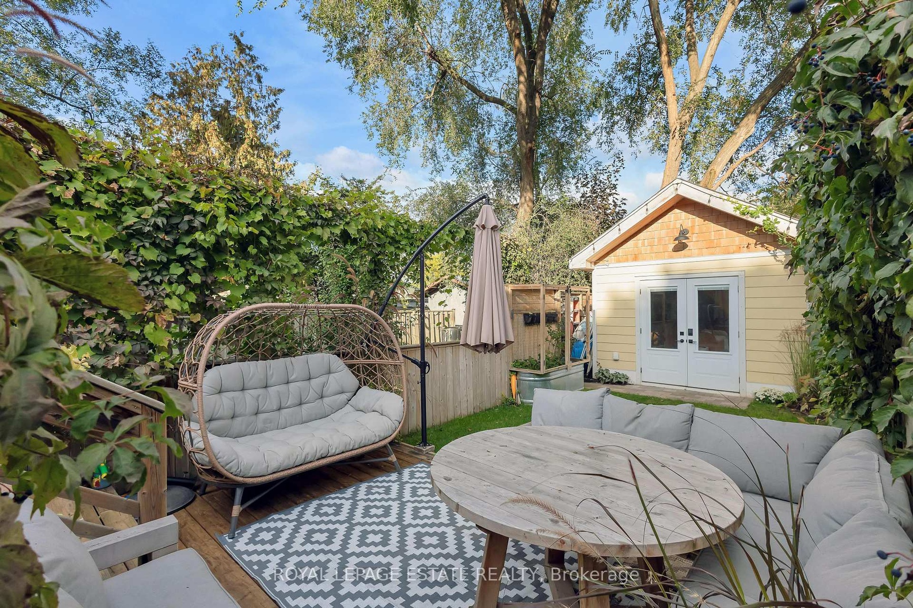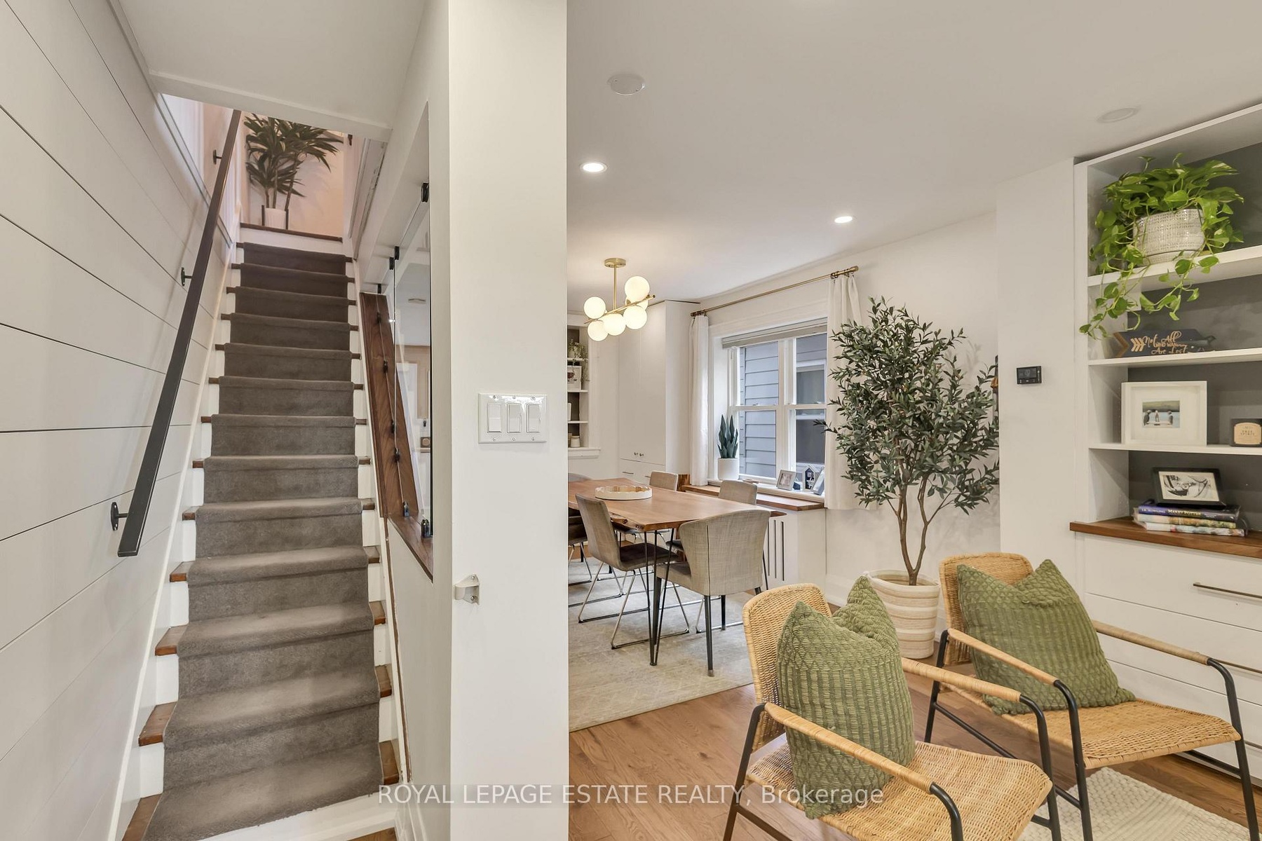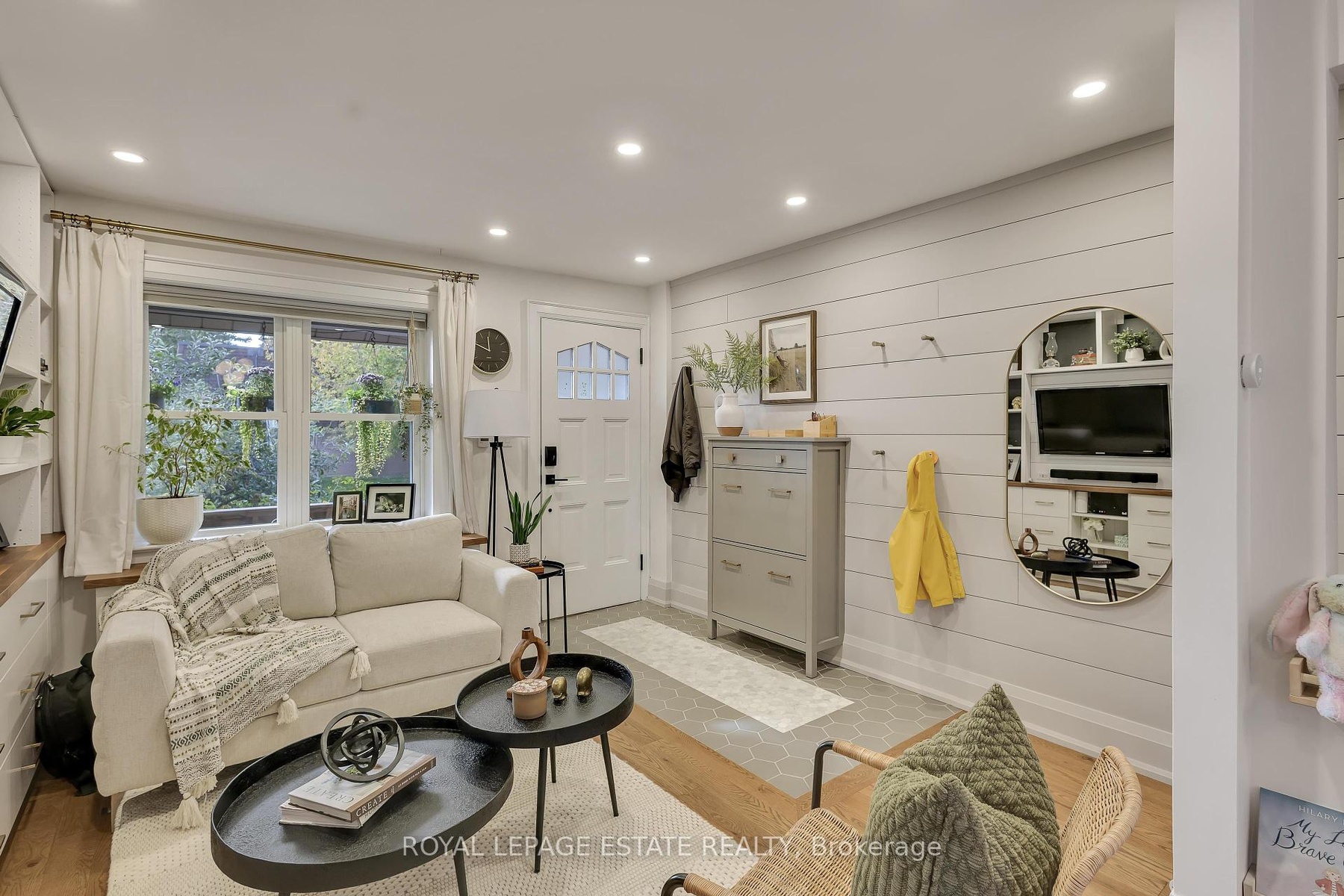 Welcome to the jewel of Eastdale Ave! This charming home has been thoughtfully updated with both function and style in mind. Enjoy custom built-in cabinetry throughout, a beautifully reconfigured kitchen with crisp white cabinets, brand new counters, and great storage and prep space. Upstairs, the bedrooms feature custom closets and a cozy nook thats perfect for a desk or reading chair. The finished basement offers a comfortable recreation area, a second washroom, and laundry.Outside, the fully insulated custom-built shed with power, water, and a unique air circulation system offers endless possibilities ideal for a home office, gym, yoga or art studio. Across the street, a brand new park with a splash pad, playground, and beautiful gardens brings extra charm and community appeal. Steps to the subway, Danforth GO, Taylor Creek Park, and all the shops and cafés along the Danforth this is the perfect fit for first-time buyers, condo upsizers, or downsizers alike. and don't miss the Granny Smith apple tree out front!
