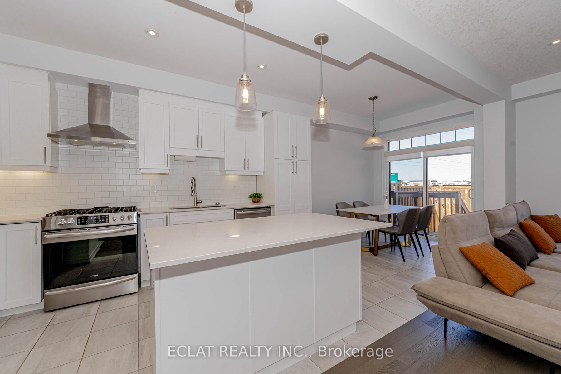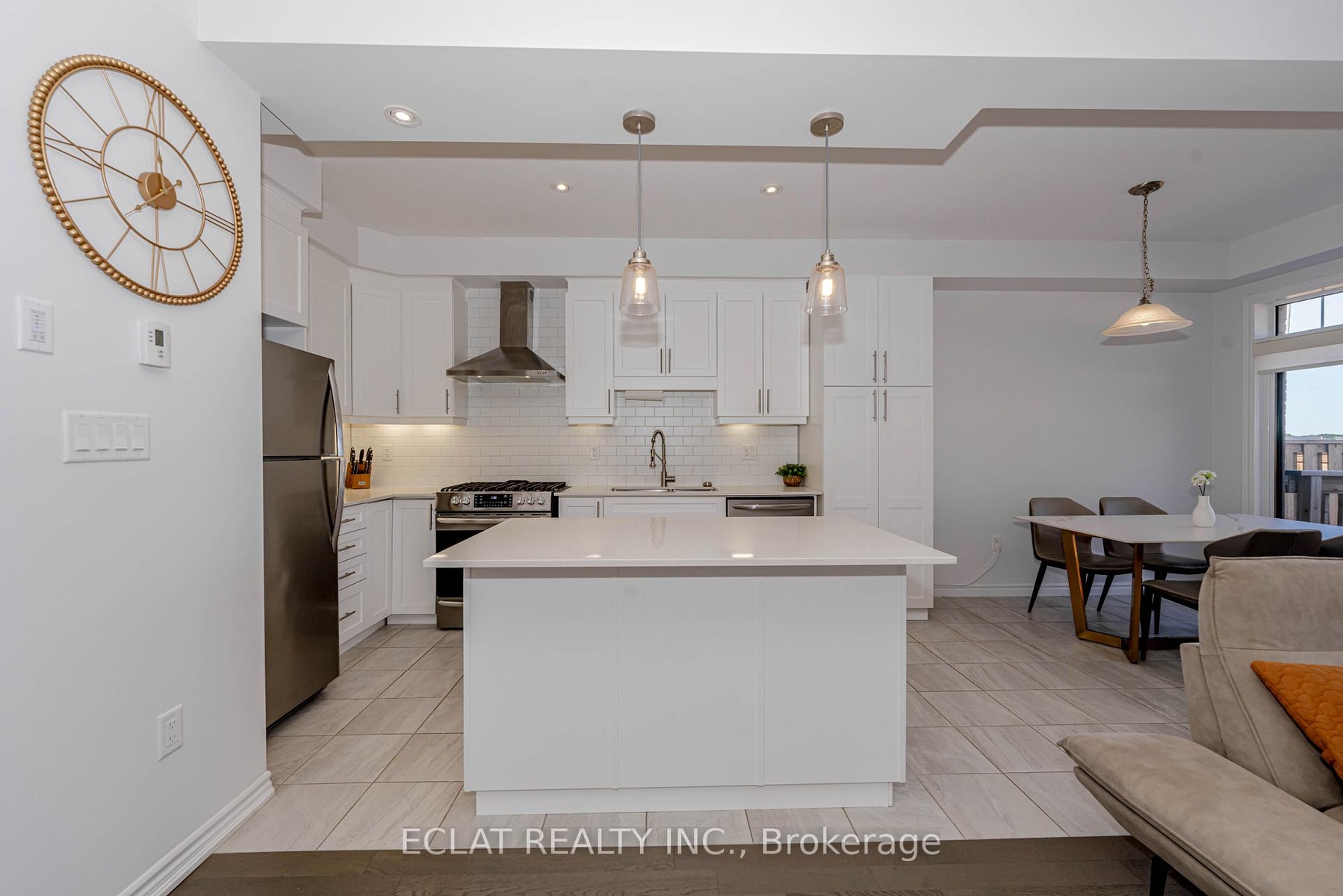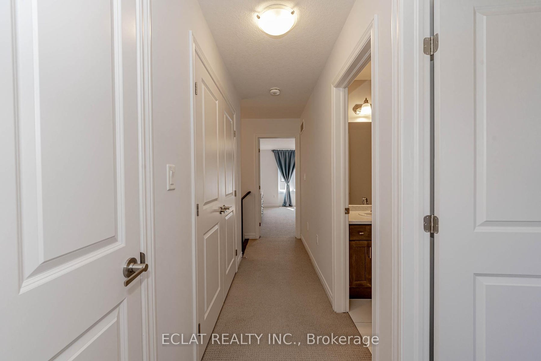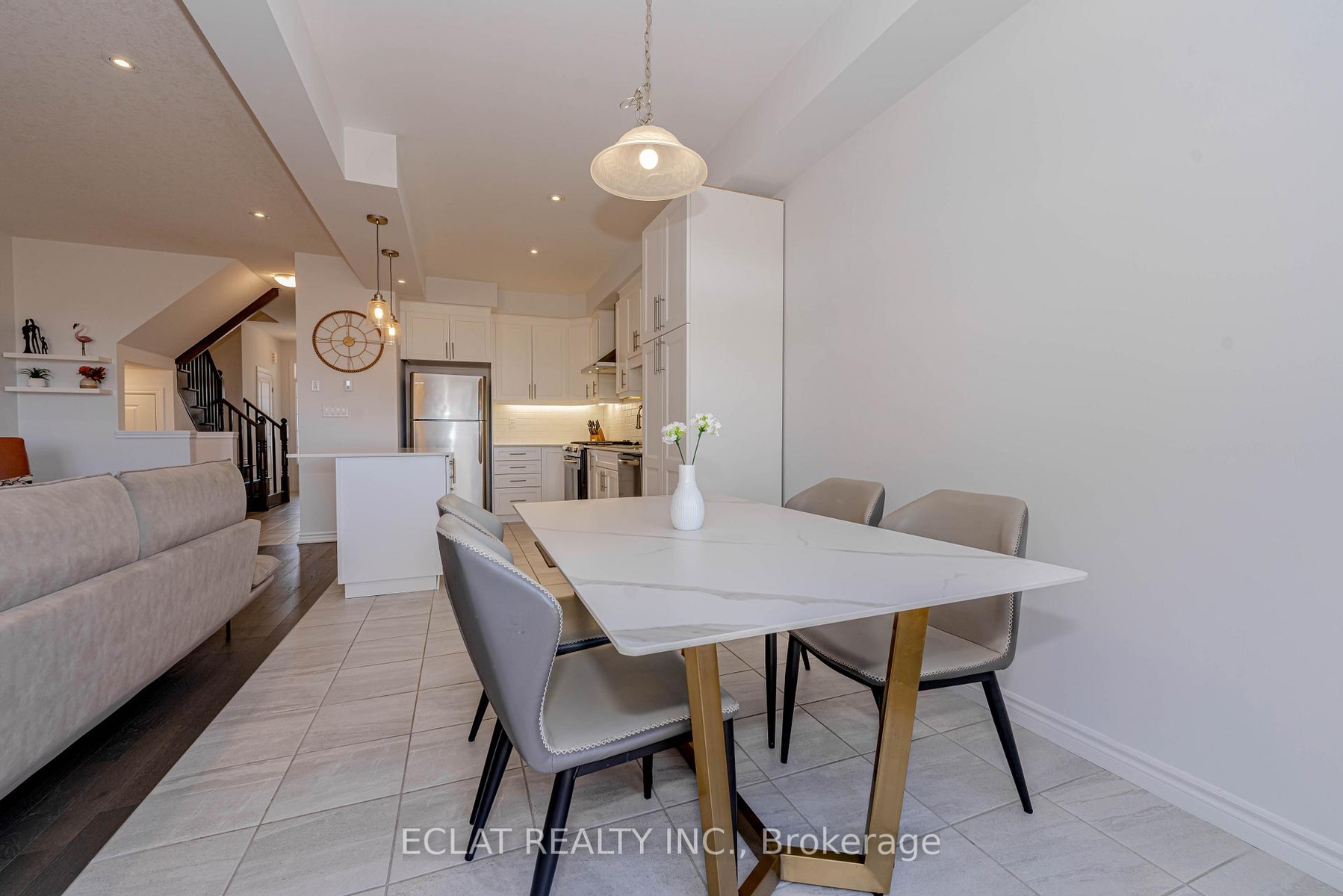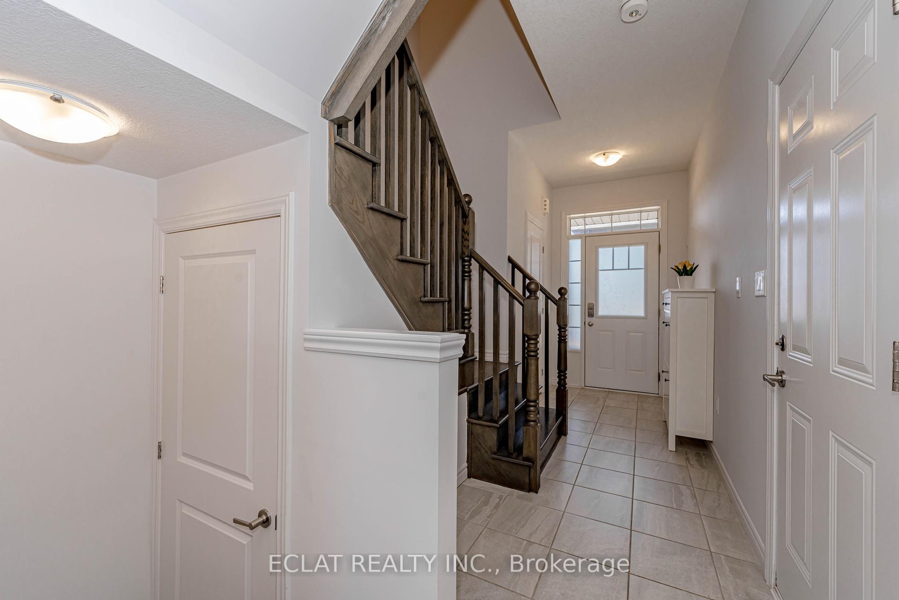 Welcome to this thoughtfully designed executive freehold townhouse, built by award-winning Losani Homes. Offering 1,318 sqft of functional living space, this elegant 3-bedroom, 2.5-bathroom home includes a single-car garage and backs onto a quiet neighborhood park,providing privacy and a peaceful setting with no rear neighbors. Perfectly located just minutes from historic downtown Paris, you will enjoy boutique shops, cafes, and restaurants, all while having quick access to Highway 403 (Rest Acres Road exit viaTom Brown Road).The bright open-concept main floor features engineered hardwood in the living room, a stylish upgraded kitchen with full-height cabinetry, Caesarstone quartz countertops, and stainless steel appliances, plus a welcoming 9 ft. entrance ceiling. An oak staircase leads to the upper level, creating a seamless flow throughout the home.Upstairs, the spacious primary bedroom includes a walk-in closet and 3-piece ensuite. The second floor also offers a walk-in laundry room upgraded with custom cabinetry, providing both convenience and extra storage. A patio door opens to the backyard, where you can relax while overlooking the ravine andwalking trail. Nearby amenities include the towns Fairgrounds, Two Rivers Stadium, the Community Centre, local library, hospital, and the Brant Sports Complex, all just a short drive or walk away. Blending modern finishes, a private natural setting, and small-town charm, this move-in ready home is a perfect fit for families, professionals, or downsizers seeking a low-maintenance lifestyle in one of Ontarios most desirable communities. ****Plus, the owned water filtration system adds extra comfort and peace of mind.*****