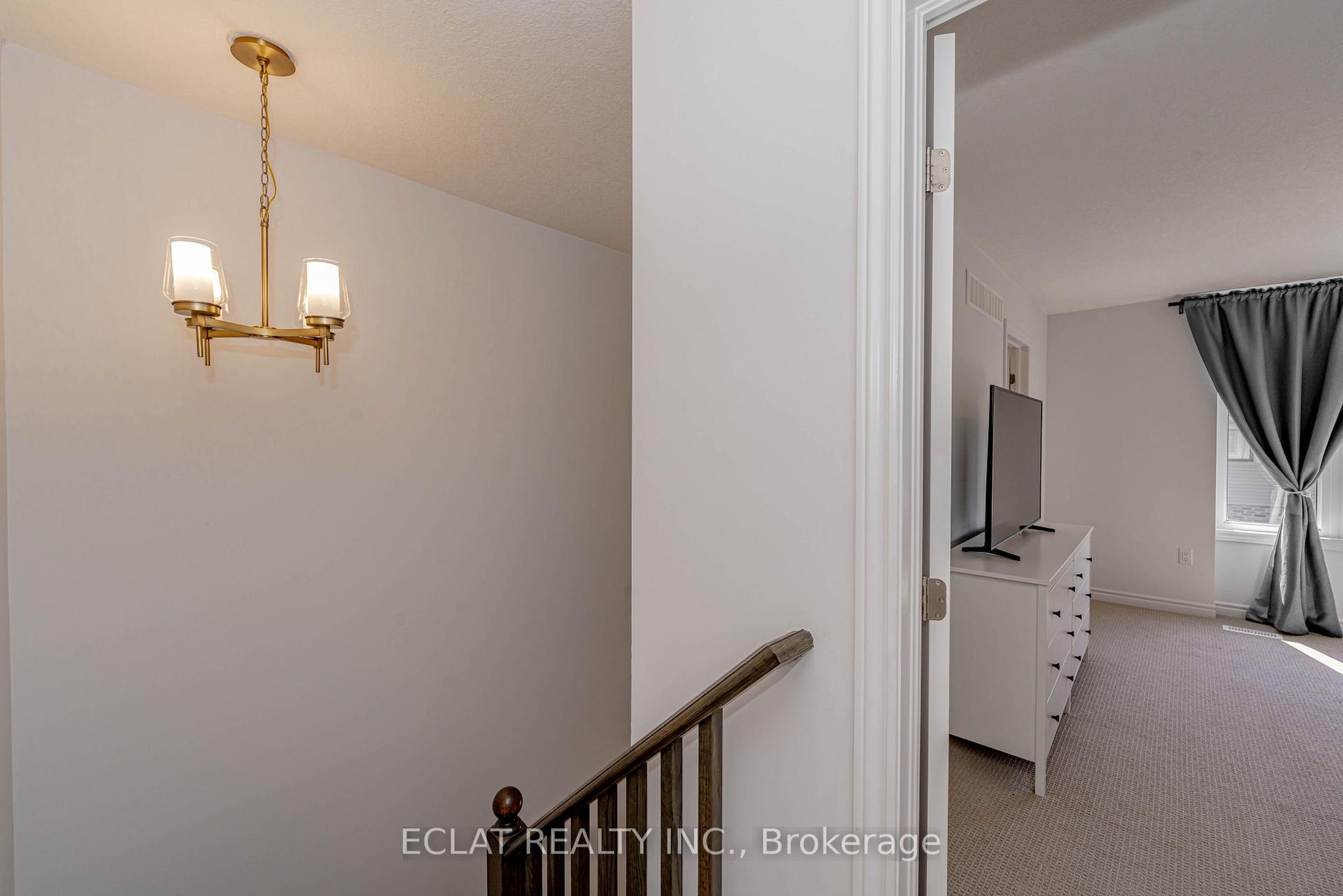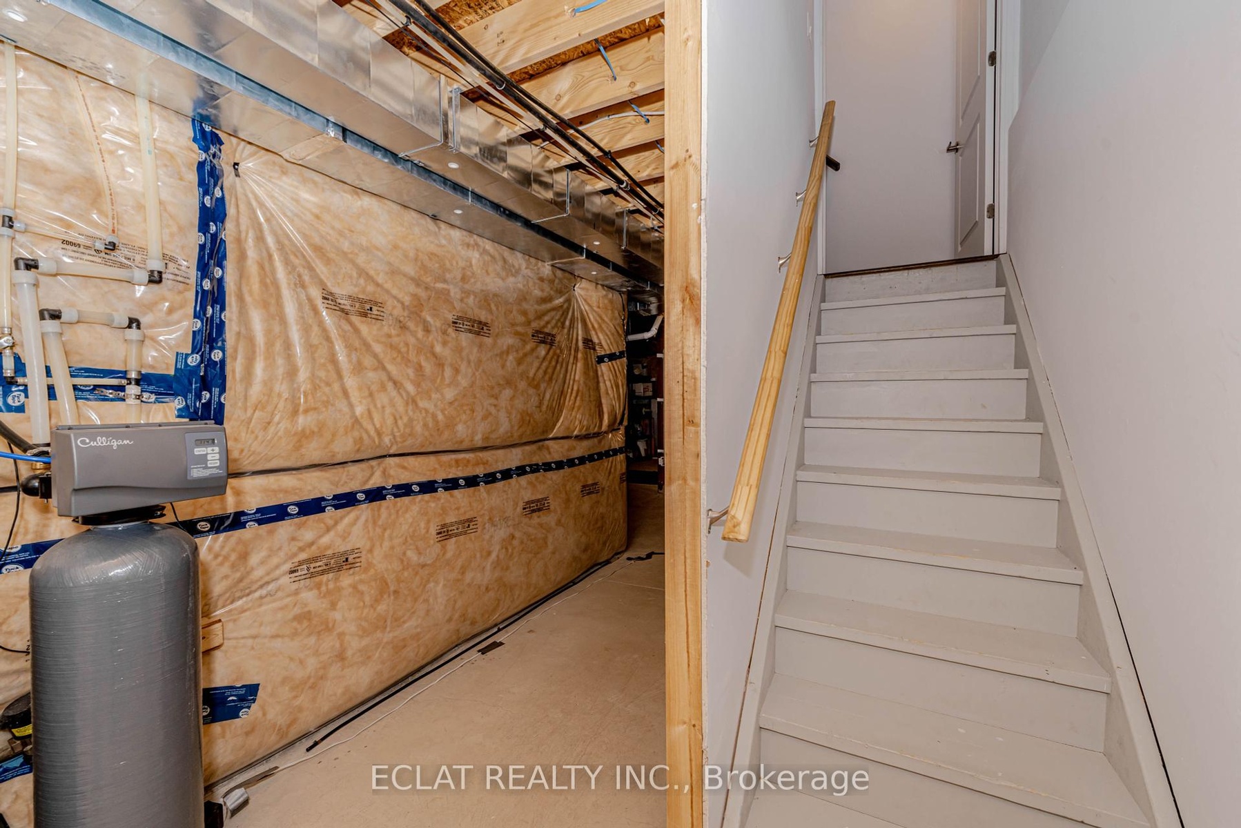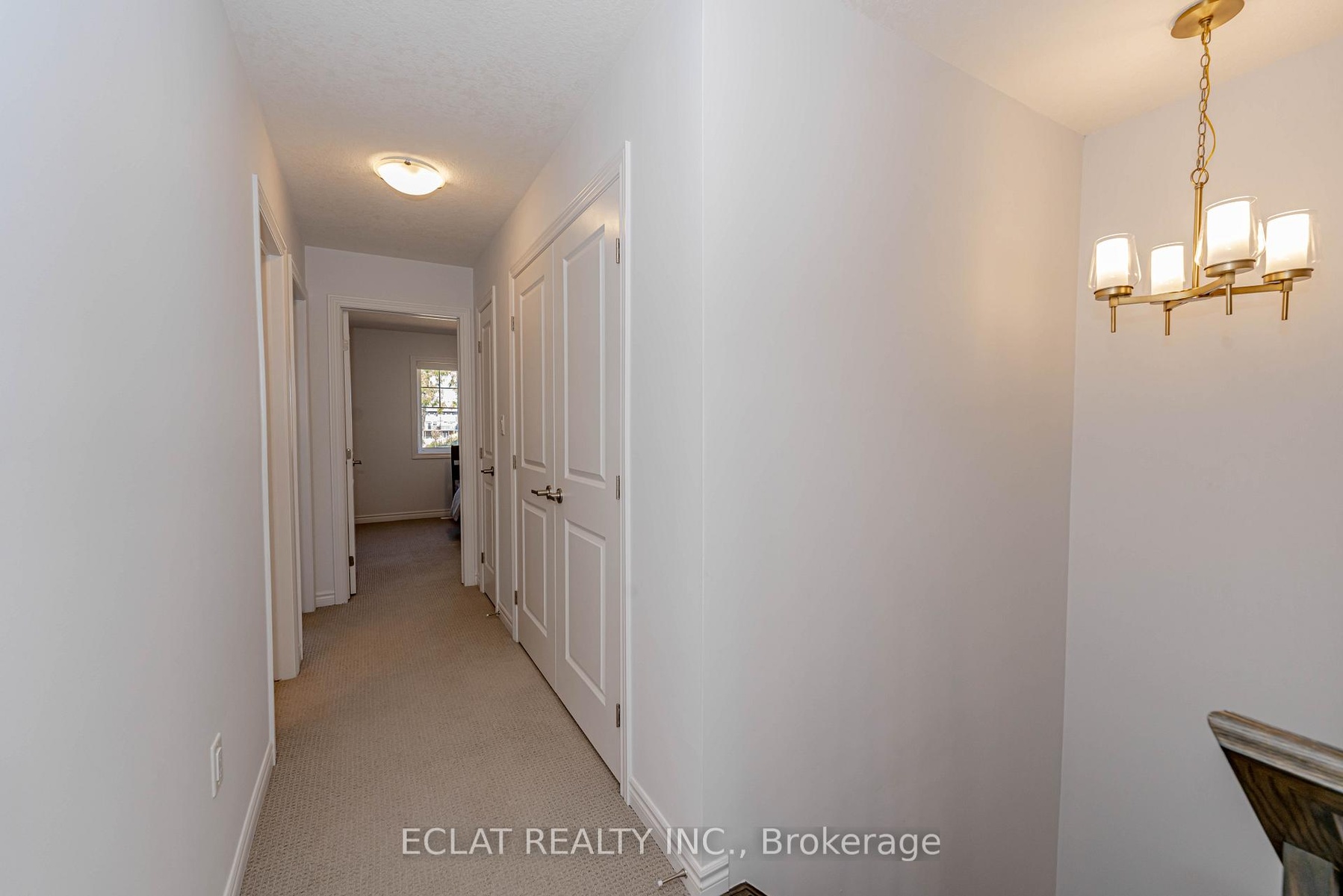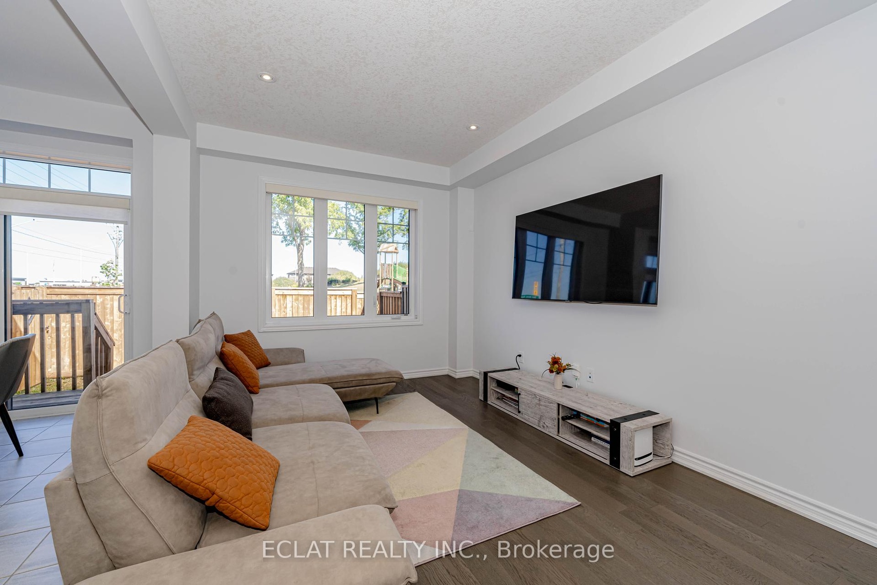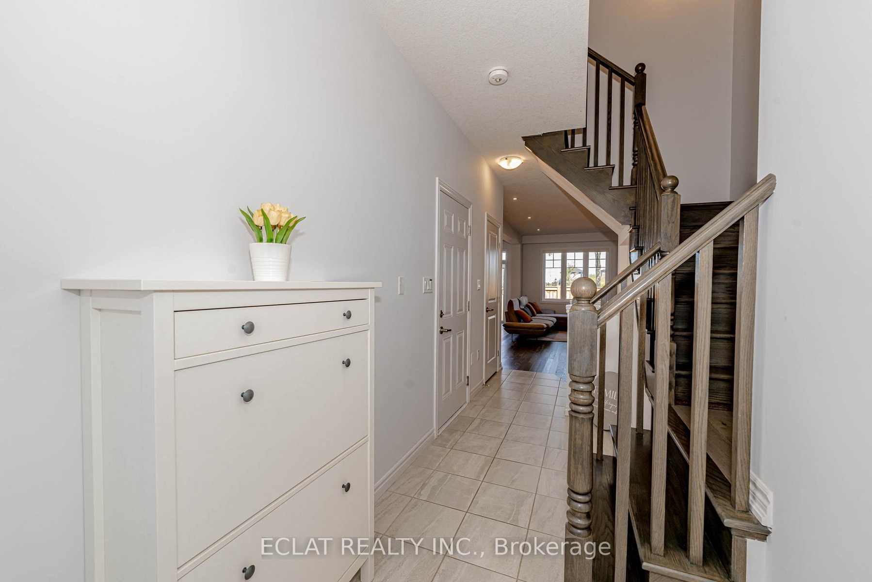 Welcome to this thoughtfully designed executive freehold townhouse, built by award-winning Losani Homes. Offering 1,318 sqft of functional living space, this elegant 3-bedroom, 2.5-bathroom home includes a single-car garage and backs onto a quiet neighborhood park,providing privacy and a peaceful setting with no rear neighbors. Perfectly located just minutes from historic downtown Paris, you will enjoy boutique shops, cafes, and restaurants, all while having quick access to Highway 403 (Rest Acres Road exit viaTom Brown Road).The bright open-concept main floor features engineered hardwood in the living room, a stylish upgraded kitchen with full-height cabinetry, Caesarstone quartz countertops, and stainless steel appliances, plus a welcoming 9 ft. entrance ceiling. An oak staircase leads to the upper level, creating a seamless flow throughout the home.Upstairs, the spacious primary bedroom includes a walk-in closet and 3-piece ensuite. The second floor also offers a walk-in laundry room upgraded with custom cabinetry, providing both convenience and extra storage. A patio door opens to the backyard, where you can relax while overlooking the ravine andwalking trail. Nearby amenities include the towns Fairgrounds, Two Rivers Stadium, the Community Centre, local library, hospital, and the Brant Sports Complex, all just a short drive or walk away. Blending modern finishes, a private natural setting, and small-town charm, this move-in ready home is a perfect fit for families, professionals, or downsizers seeking a low-maintenance lifestyle in one of Ontarios most desirable communities. ****Plus, the owned water filtration system adds extra comfort and peace of mind.*****