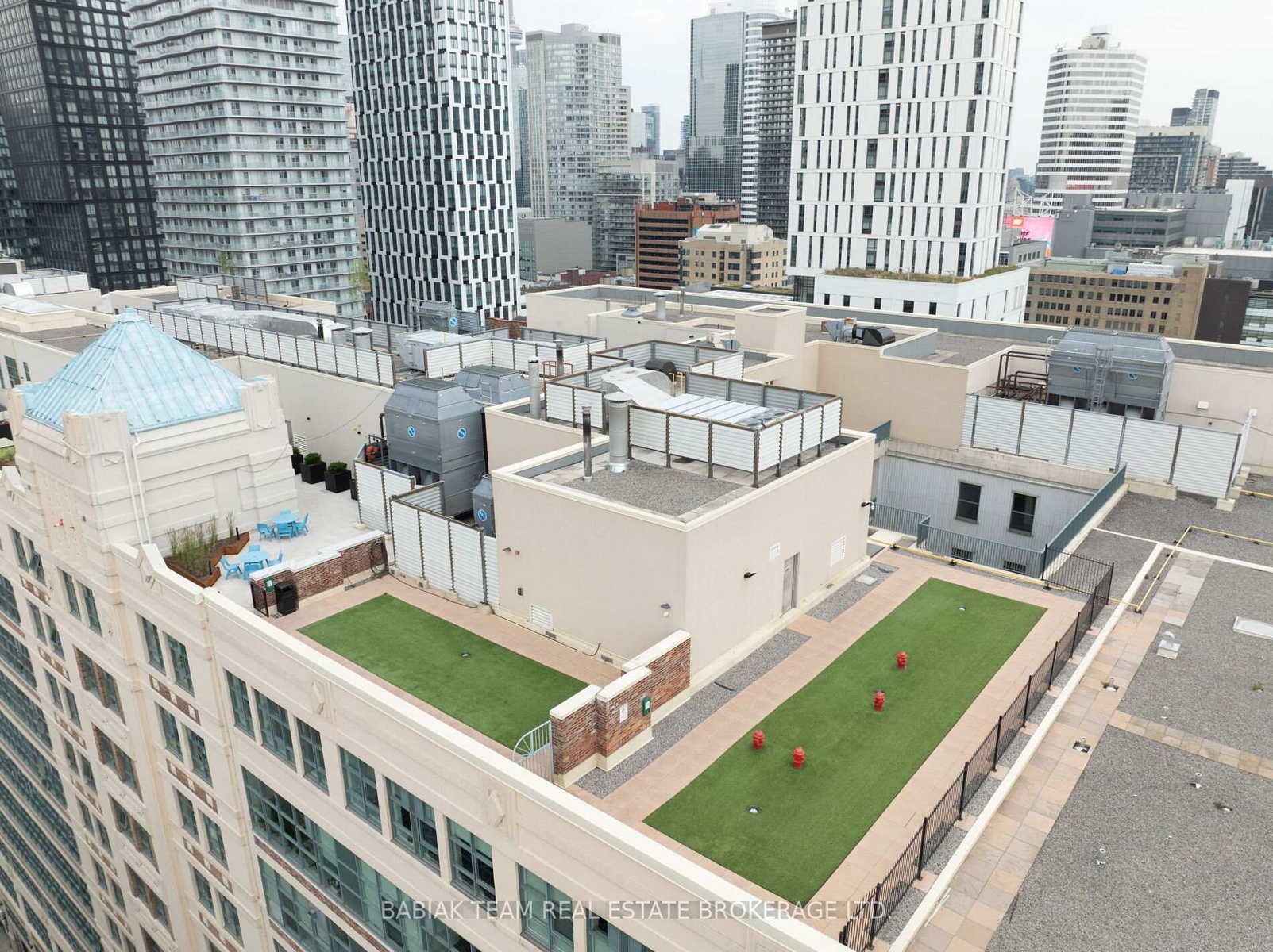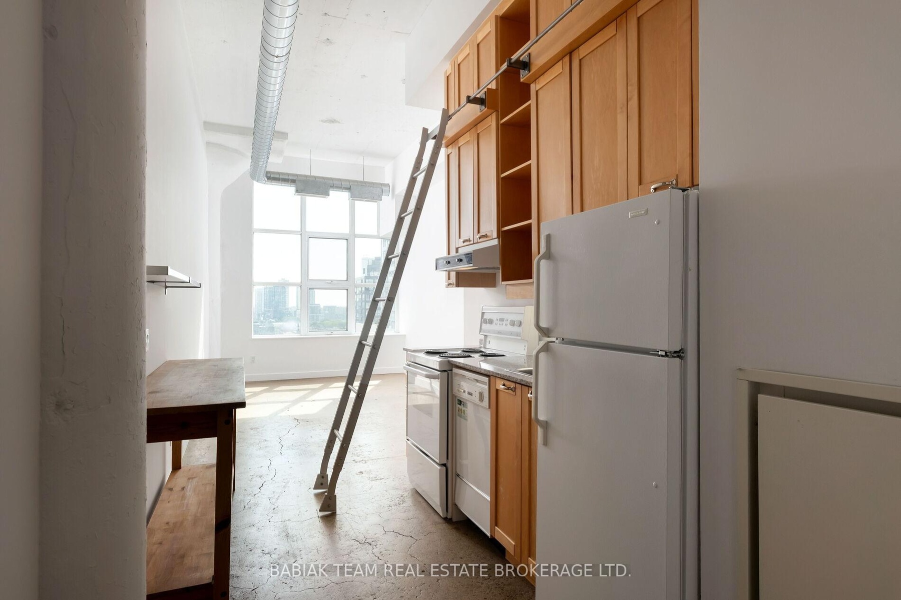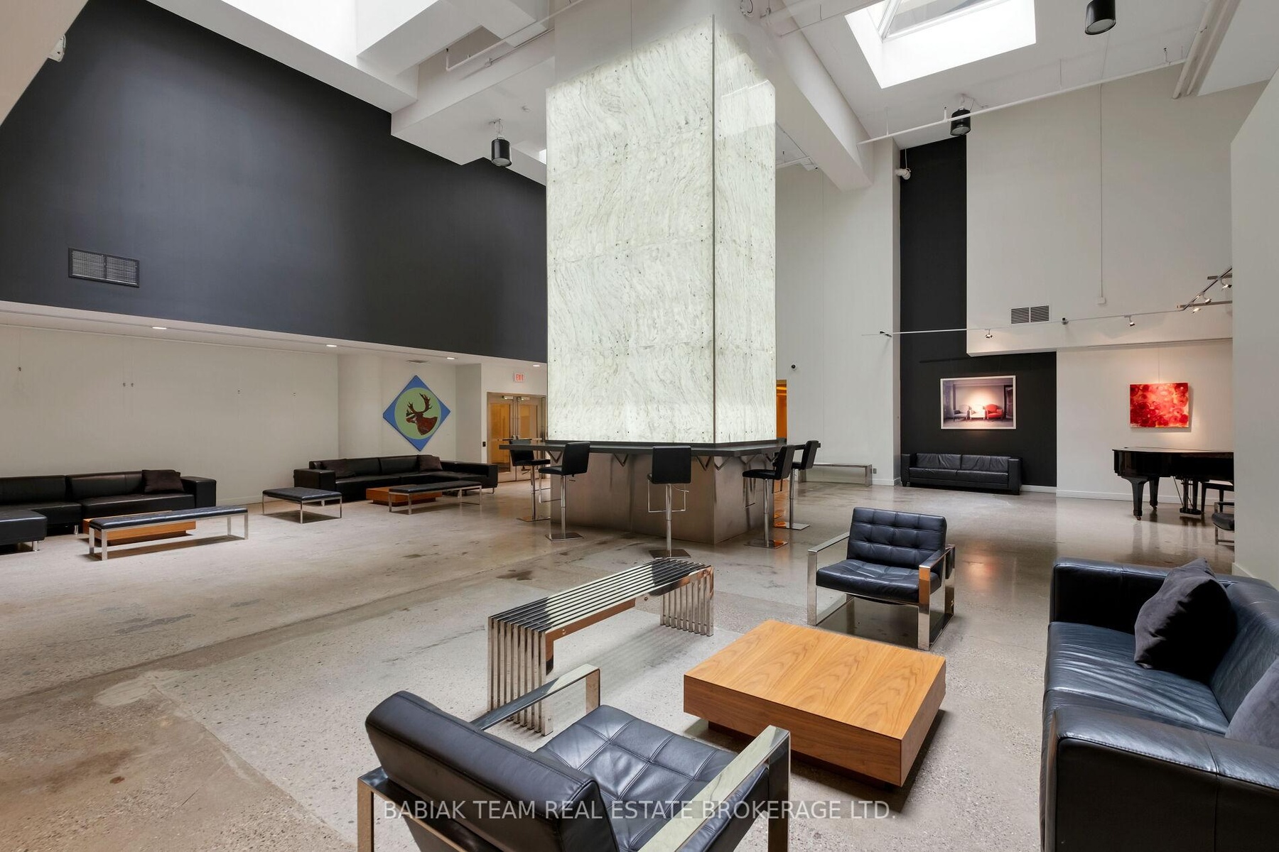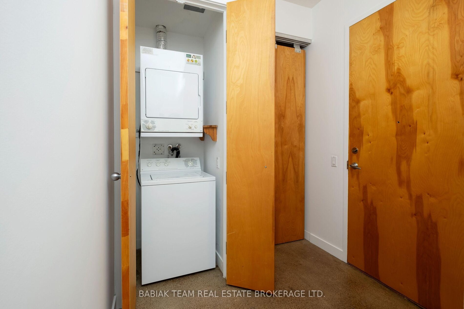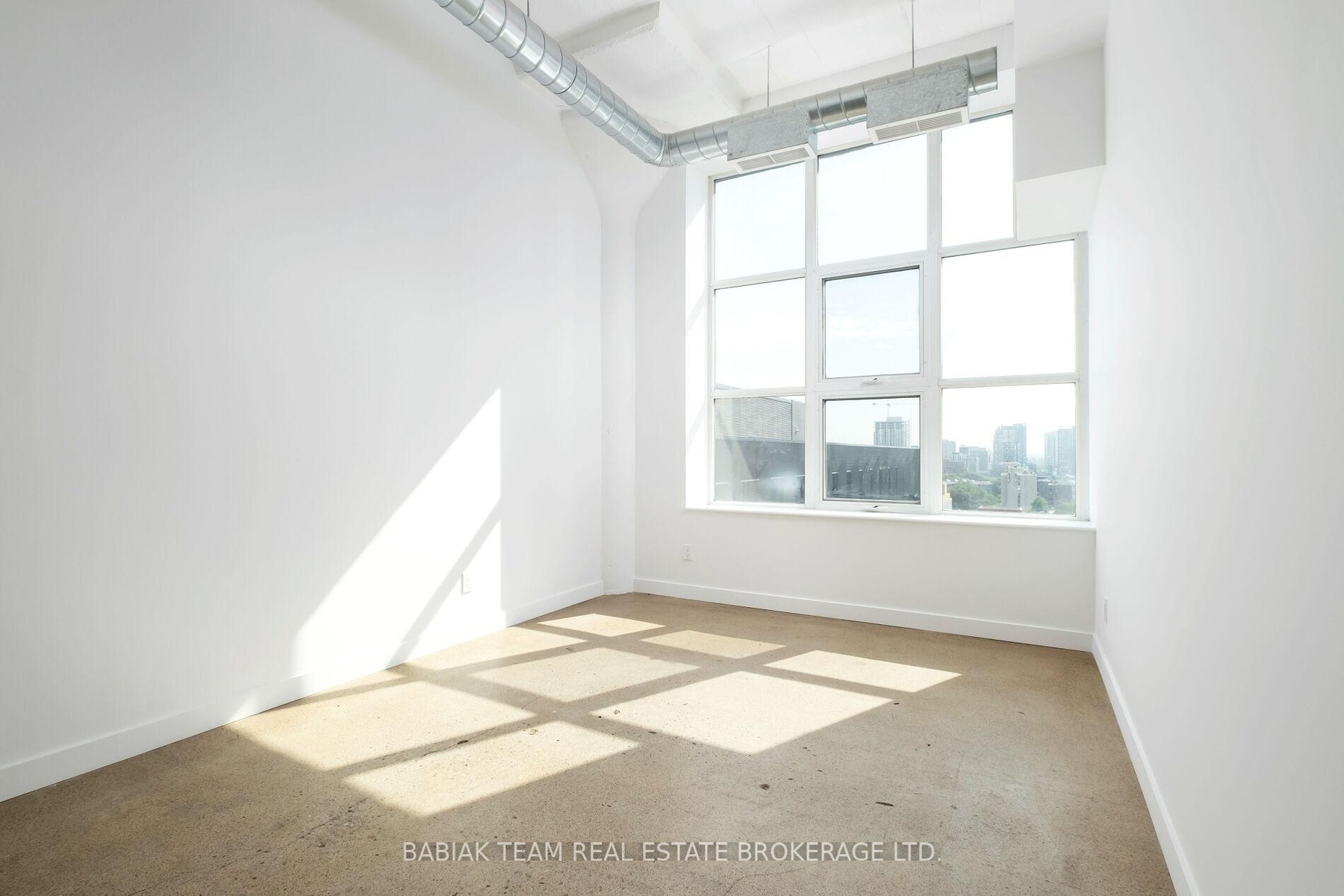 Sun-filled authentic one bedroom hard loft with 12 foot ceilings located in the iconic Merchandise Building, one of Torontos best conversions, steeped in history and rich architectural details. This suite boasts soaring ceilings, a flexible floorplan, wall-to-wall windows right to the ceiling with open views, an oversized pull-through parking spot, and a spacious locker. Additional features include chic polished concrete floors, warm wood elements including gorgeous heavy duty sliding doors, exposed ductwork adding to the industrial flair, a roomy bedroom, semi-ensuite four piece bath with private toilet, and extra high wood kitchen cabinets with ladder access. On the market for the first time since the building was converted to lofts, this suite has been truly loved by its only owner since conception, a testament to the amazing liveable space, location and award-winning condominium conversion. First class amenities include the noteworthy wrap-around rooftop terrace/garden with multiple seating areas (both covered and open), basketball court, full fitness centre, rooftop indoor pool, rooftop dog facilities, large party room, games room with pool table and ping pong, library, guest suites, and much more! Close to Toronto Eaton Centre, Bay Street offices, St Mike's Hospital, TMU, University of Toronto, transit, shops, restaurants and more! Walk Score 99, Transit 100, Bike Score 98. Dont miss this stylish and unique loft in such a coveted landmark building!