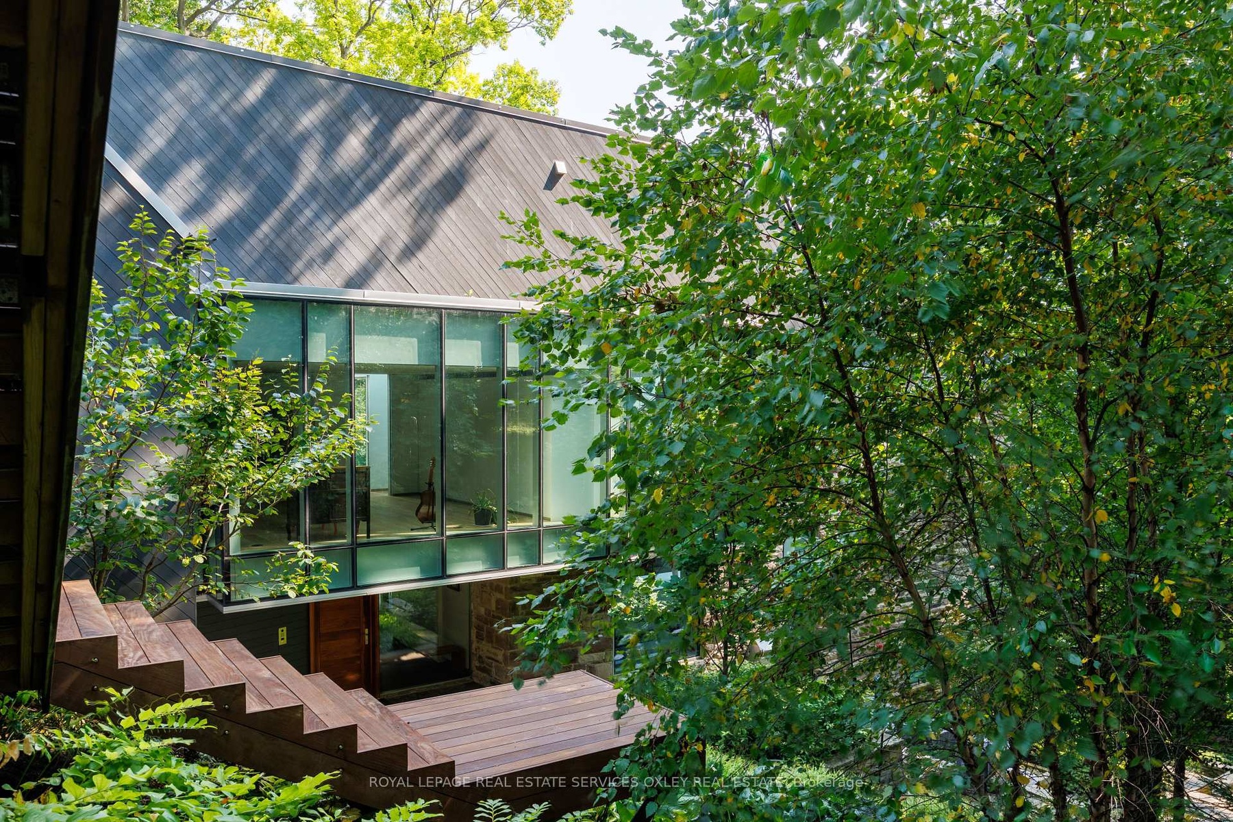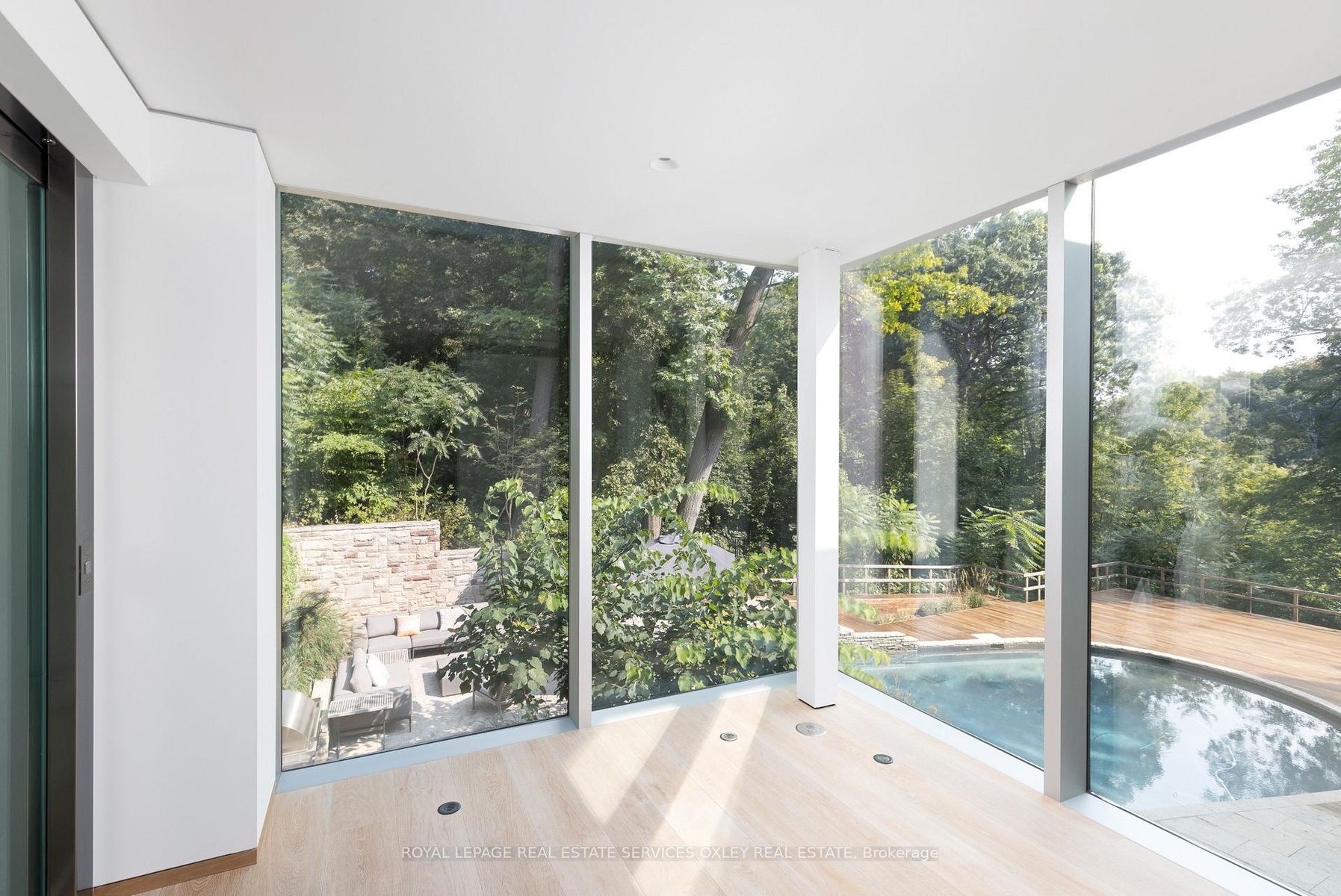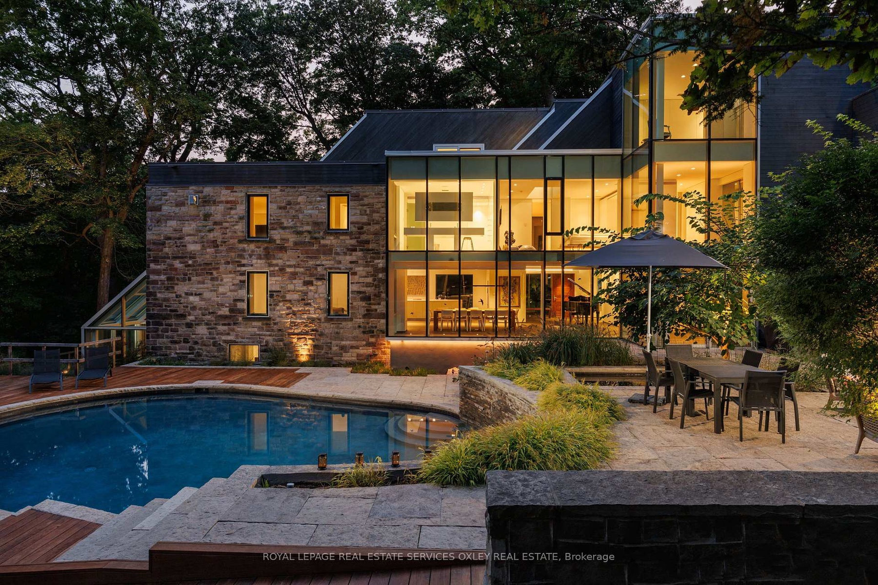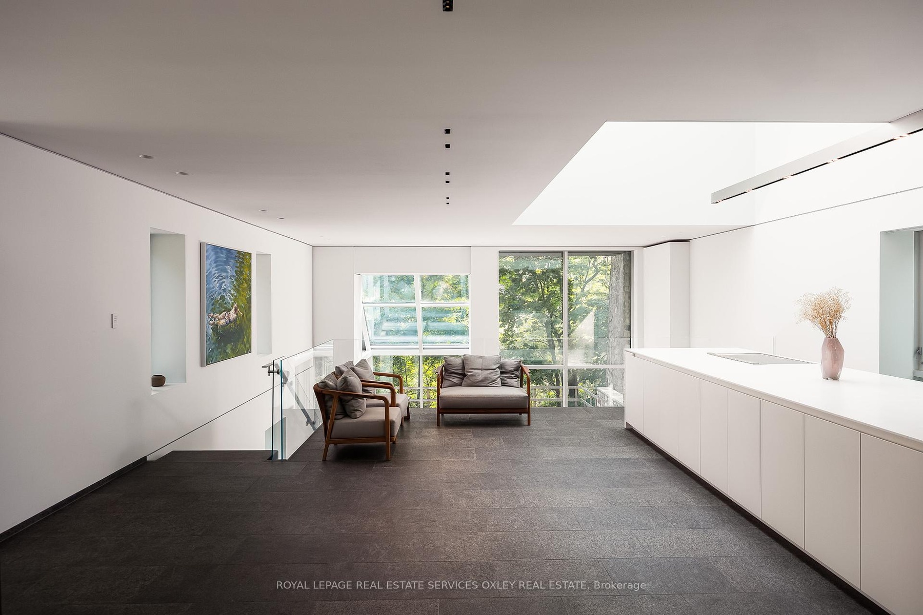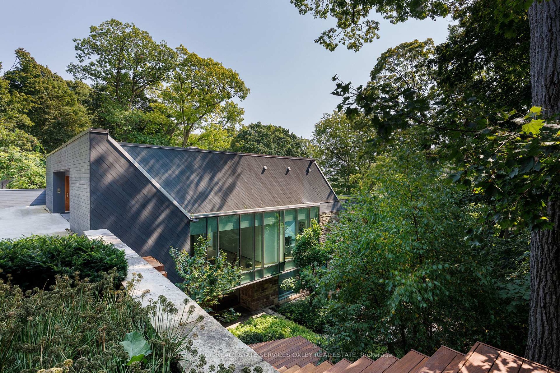 Rare opportunity to own one of the citys most iconic properties, nestled into the side of the Rosedale ravine. This magical home is impossible to replicate originally designed by internationally acclaimed architect Eb Zeidler (of Eaton Centre fame) & completely rebuilt and reimagined by Peter Clewes (Architects-Alliance). The result: a modern, minimalist masterpiece that juxtaposes the heritage facade w/ a striking glass cube to blend seamlessly w/ nature. Deceptively discreet, this majestic home opens to 7,000+ sqft of living space. Set on 1 ACRE+ of land w/ a ~175x313 ft south-facing lot & sweeping skyline views, it offers a level of privacy rarely found in the city. The property to the East w/ ~1 ACRE of land is owned by the Ravine Conservation Authority ensuring absolute tranquility & nature. Custom landscaping w/ native species creates breathtaking outdoor views, while professionally designed lighting makes the property glow from sunset to nightfall. Watch deer, bunnies & owls become part of the scenery in your own private sanctuary. Inside, impeccable finishes shine from the sleek Poliform kitchen to the UT glass elevator. Every rm has been carefully considered, with flowing transitions & soaring ceilings that allow daylight to flood in from all sides. No unsightly posts or pillars here this steel-structured hm was built at a commercial level to preserve every clean line and open view. Featuring 4 bdrms, a massive great rm, and a kitchen/dining/sitting rm perfect for both grand entertaining & intimate family living. The primary suite stuns w/ E, W & S exposures & a showstopping ceiling detail. A resort-style pool is framed by expansive decks ideal for lavish parties, while terraced steps lead to a half tennis court ready to be reimagined as a pickleball court or play space. Just minutes to top private schools, restaurants & clubs, 11 Beaumont is a one-of-a-kind estate in the heart of the city.