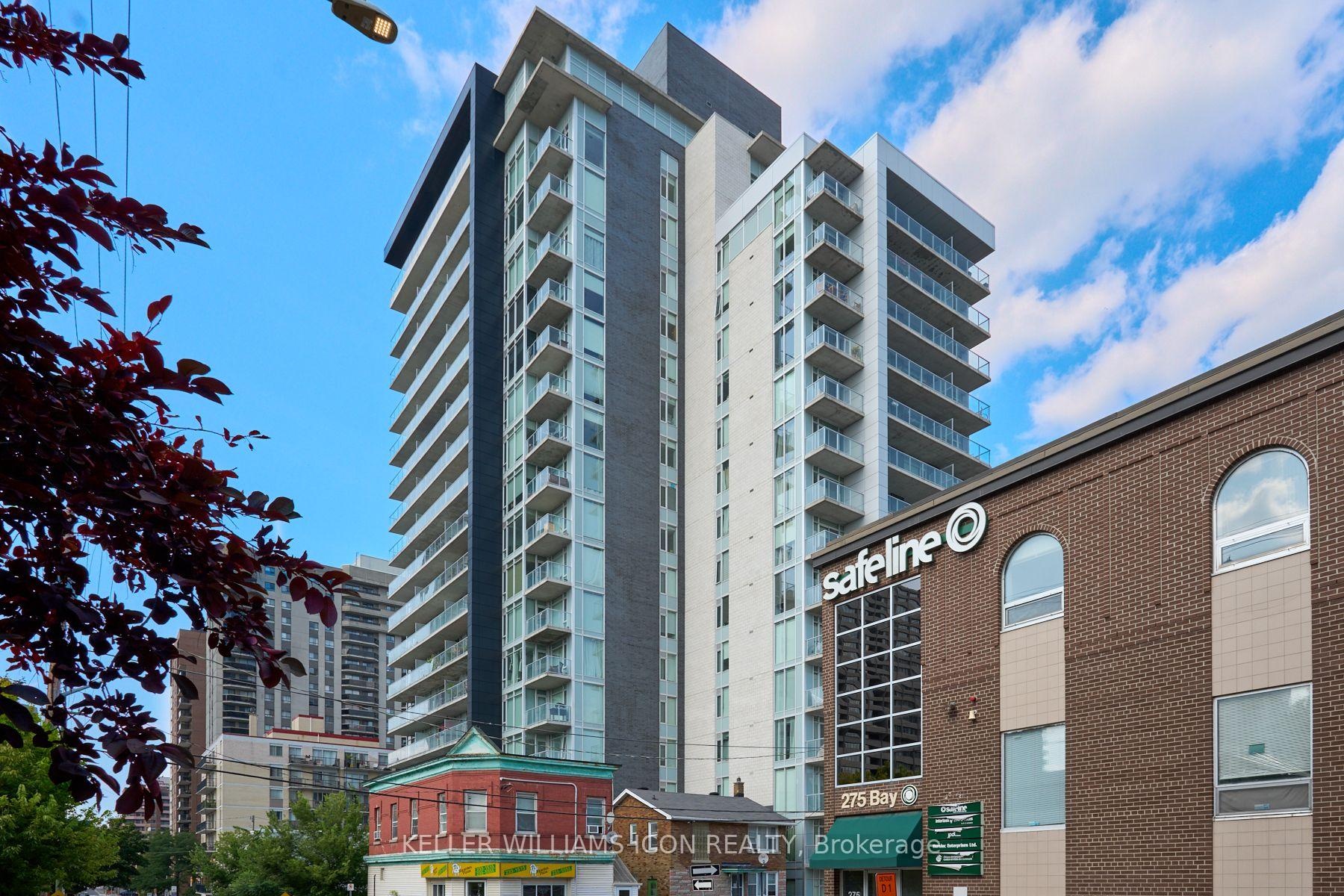 Penthouse-Level Corner Unit with Panoramic Views of the city's skyline. This stunning penthouse-level corner residence boasts bright and function living space. Offering over 800 sq. ft. of refined living space (781 sq. ft. interior plus a 52 sq. ft. balcony), the home is flooded with natural light from its two south-facing bedrooms and expansive windows.The gourmet kitchen is a chef's dream, featuring premium European appliances, sleek modern finishes, and a tiled accent wall, all beautifully complemented by wide-plank oak flooring for a timeless contemporary feel.Nestled in one of Ottawa's most prestigious condominium buildings, residents enjoy resort-inspired rooftop amenities, including an indoor swimming pool, sauna, state-of-the-art fitness center with panoramic skyline views, and one of the city's most elegant condo lounges.Perfectly situated just steps from Lyon LRT Station, yet tucked within a quiet and charming neighborhood.The unit also comes with premium underground parking and a storage locker in a highly secure building, ensuring both comfort and peace of mind.If you are seeking the pinnacle of luxury condo living in Ottawa, this is an opportunity not to be missed.