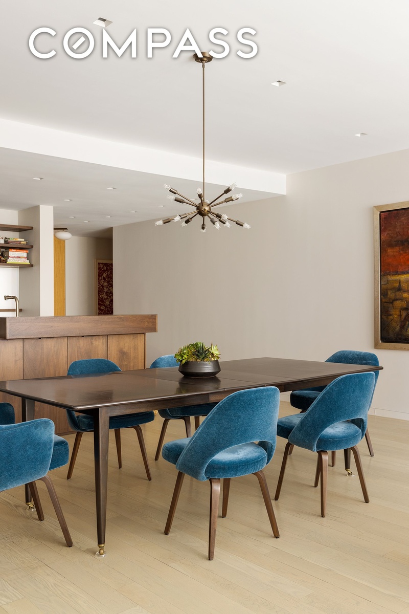 Light and space are evident in the south-facing great room, which measures 20' wide by 35' deep. The open concept features a new Henrybuilt kitchen with abundant storage and a large island with seating. State-of-the-art appliances include Sub-Zero refrigeration, Gaggenau cooktop, double Wolf ovens, and a wine cooler.
