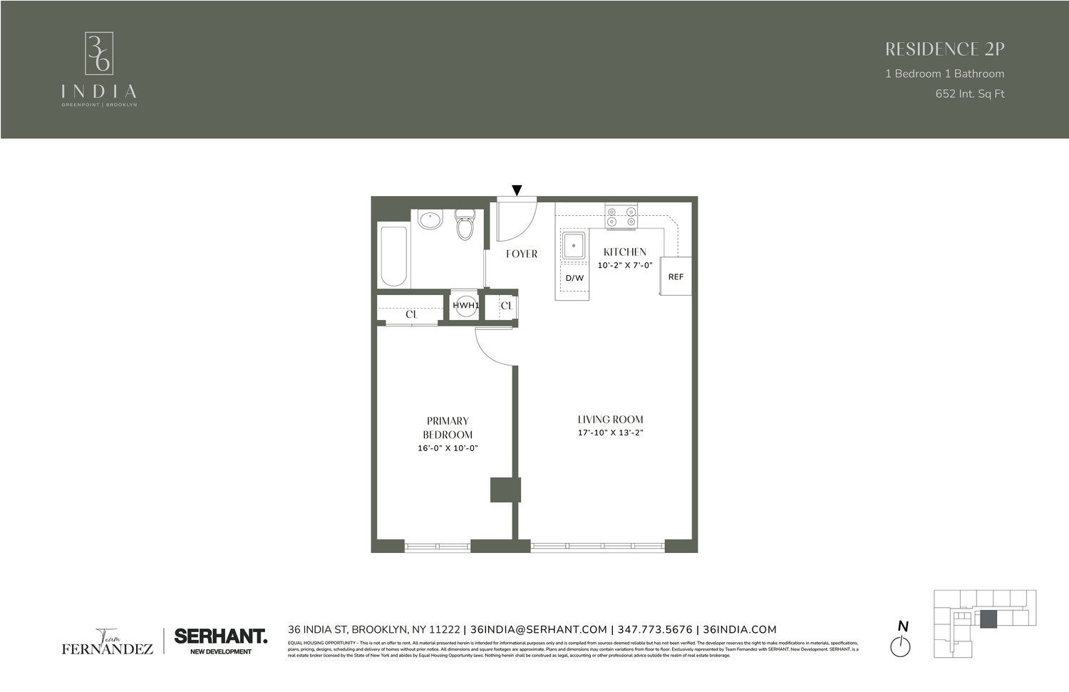 Set within Greenpoint's newest boutique rental building, 36 India Street, Residence 2P is a 600-square-foot one-bedroom, one-bath home designed with the feel and finish of a private condominium.