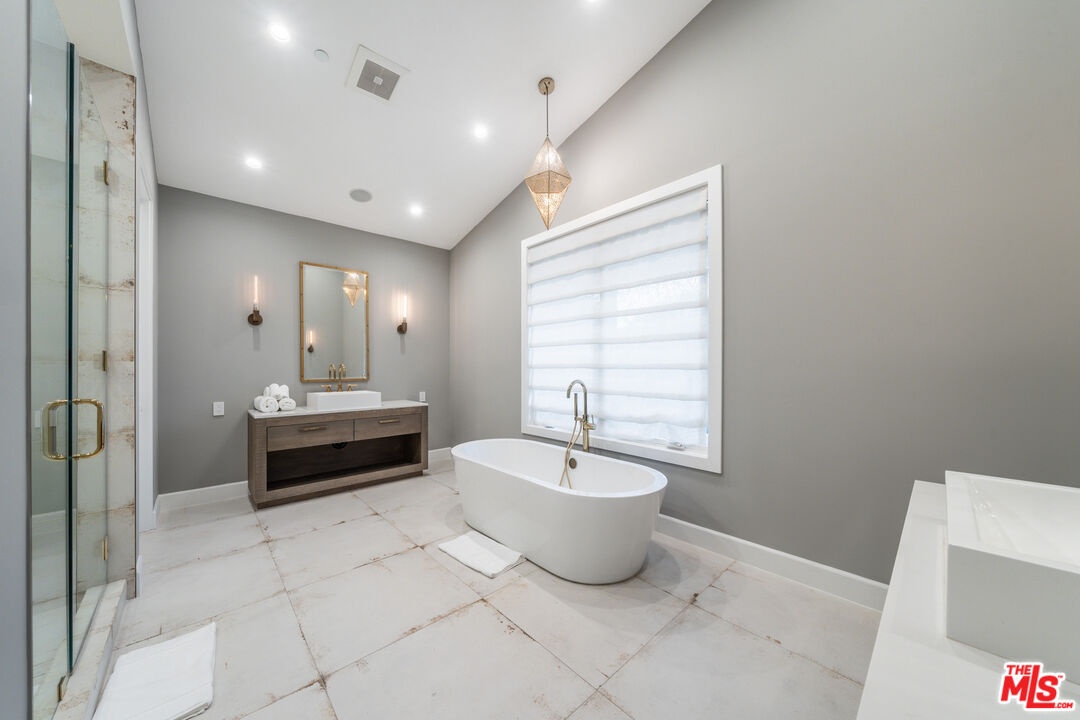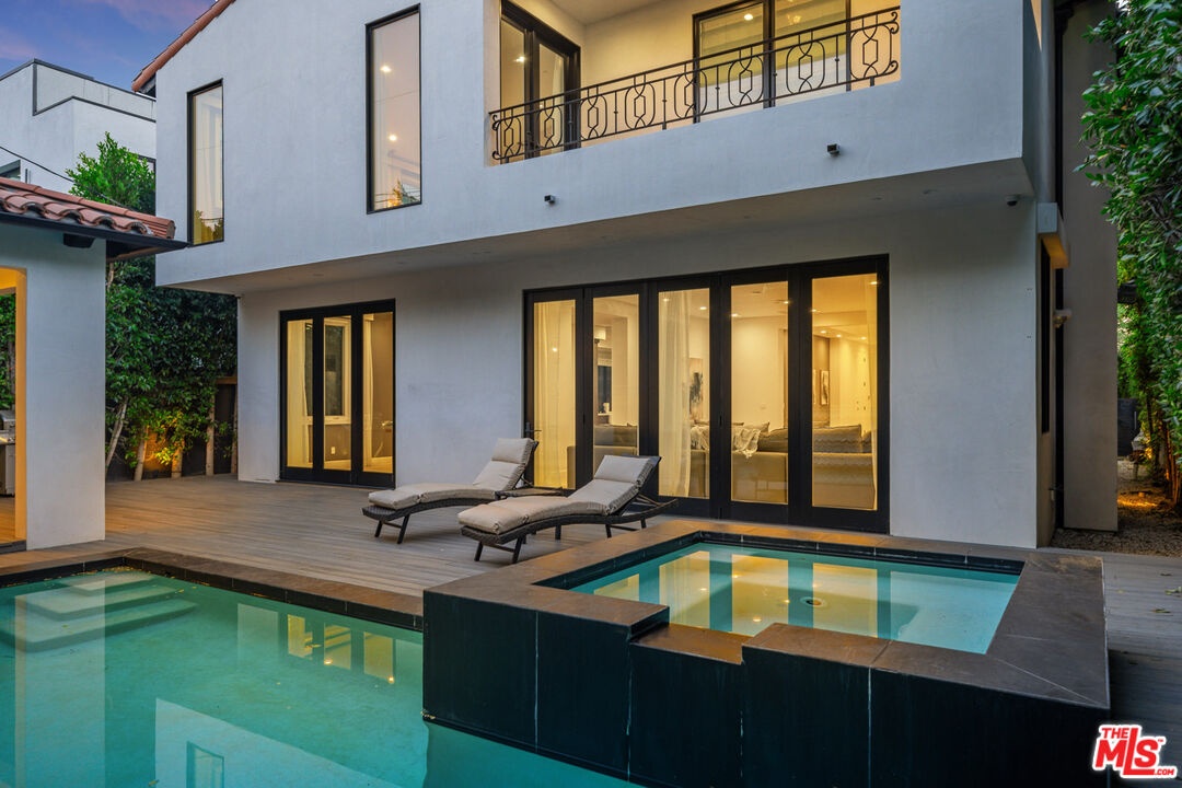 Fully Furnished, A stunning 5 bed 6 bath Spanish Villa that incorporates modern architecture and technology. Located in one of the most happening areas near Melrose Village and West Hollywood. The main floor features a full equipped chefs kitchen, dining areas, an office/bedroom, living areas, and large doors opening to the outdoor entertaining area with surround sound throughout. Enjoy the backyard with its pool, spa and cabana. Second floor: The primary bedroom offers a walk-in closet, a fireplace, vaulted ceilings, a lavish bathroom and a private balcony. Along with that, a laundry room, and three spacious bedrooms complete the second floor.Don't miss this home!