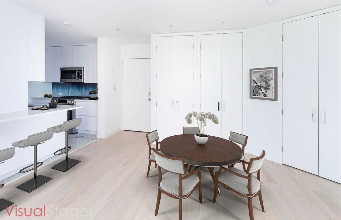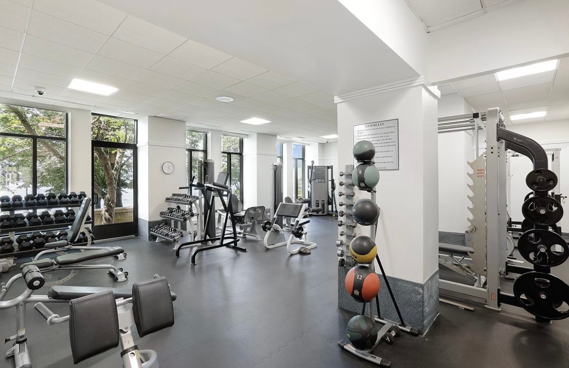 This prestigious building offers an array of amenities, including a full-time doorman, concierge, live-in superintendent, laundry facilities on every floor, a riverfront gym, and a pool with an outdoor deck and retractable sunroof. Pets are also welcome with prior management approval.