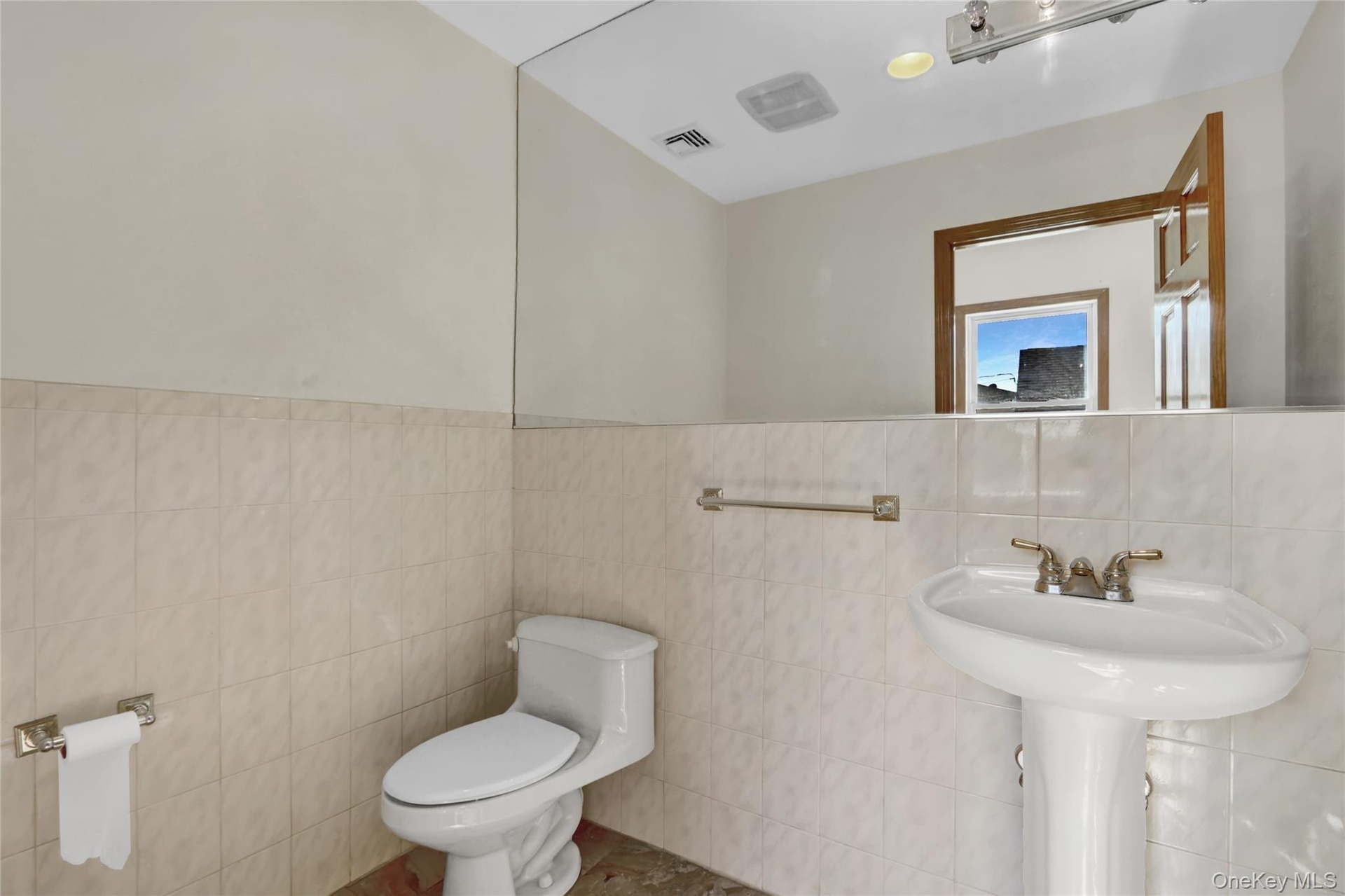- Full bathroom featuring a stall shower, tile walls, and tasteful backsplash