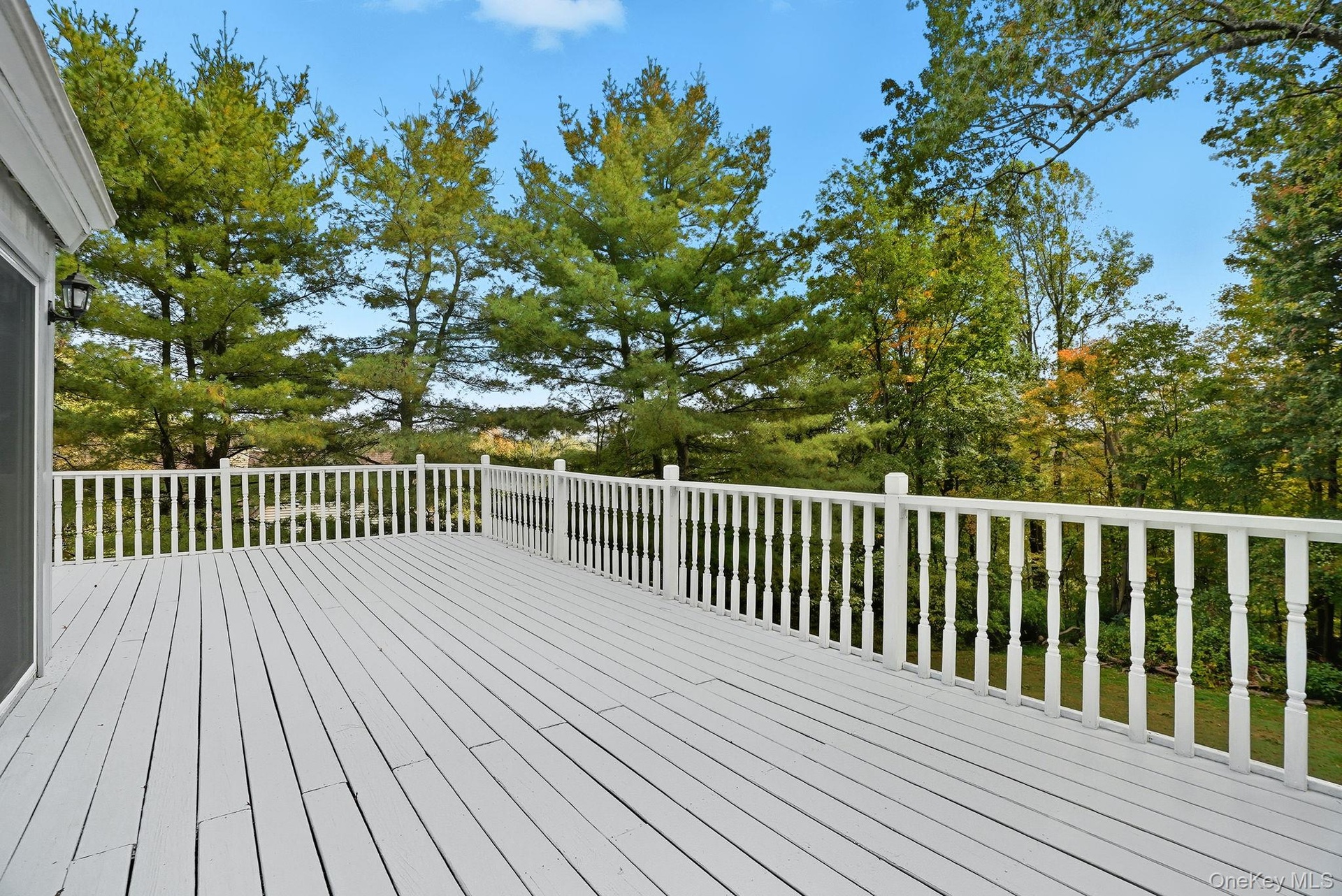 Stunning contemporary home with views! Welcome to this sun-drenched 4 bedroom, 4.5 bath contemporary-style home offering over 3200 square feet of beautifully updated living space with generously proportioned rooms. Set on landscaped property with seasonal reservoir views, this striking home features a two-story entry, soaring ceilings, skylights, and hardwood floors throughout. The fabulous updated kitchen and bathrooms showcase modern finishes, quartz countertops, stainless steel appliances, and thoughtful design. Every detail reflects quality and care, creating a welcoming ambiance. The main level primary suite is a luxurious retreat with a spa-like en-suite bath, while a second en-suite bedroom upstairs offers flexibility as an alternate primary. The heart of the home is a family room with fireplace and sliding glass doors that open to a large deck-perfect for entertaining, dining al fresco, or enjoying peaceful natural surroundings. Additional features include a semi-finished walkout basement with a full bath (approx. 1,200 sq. ft. with CO in place and not included in sq. ft.), ideal for a playroom, guest space, or home office. Brimming with natural light and contemporary charm, this beautiful home offers comfort, style, relaxed living, formal or casual entertaining all in a prime Somers location. Above ground oil tank 2025. Convenient to Metro North train, shops, restaurants and major thoroughfares. Rooms virtually staged.