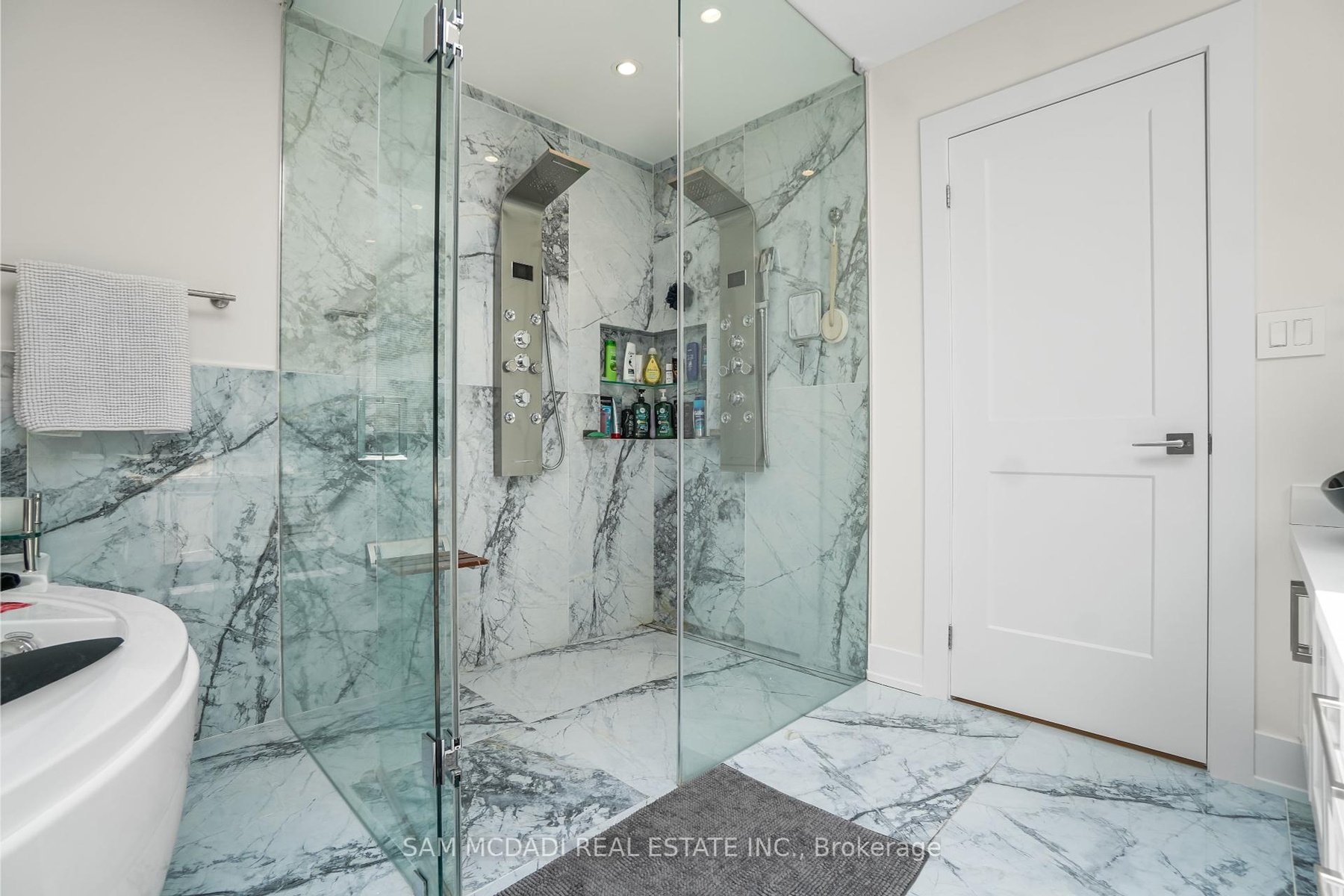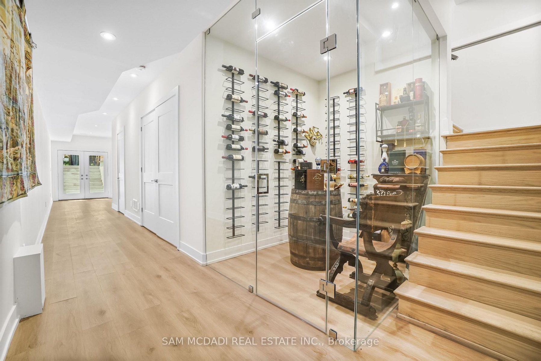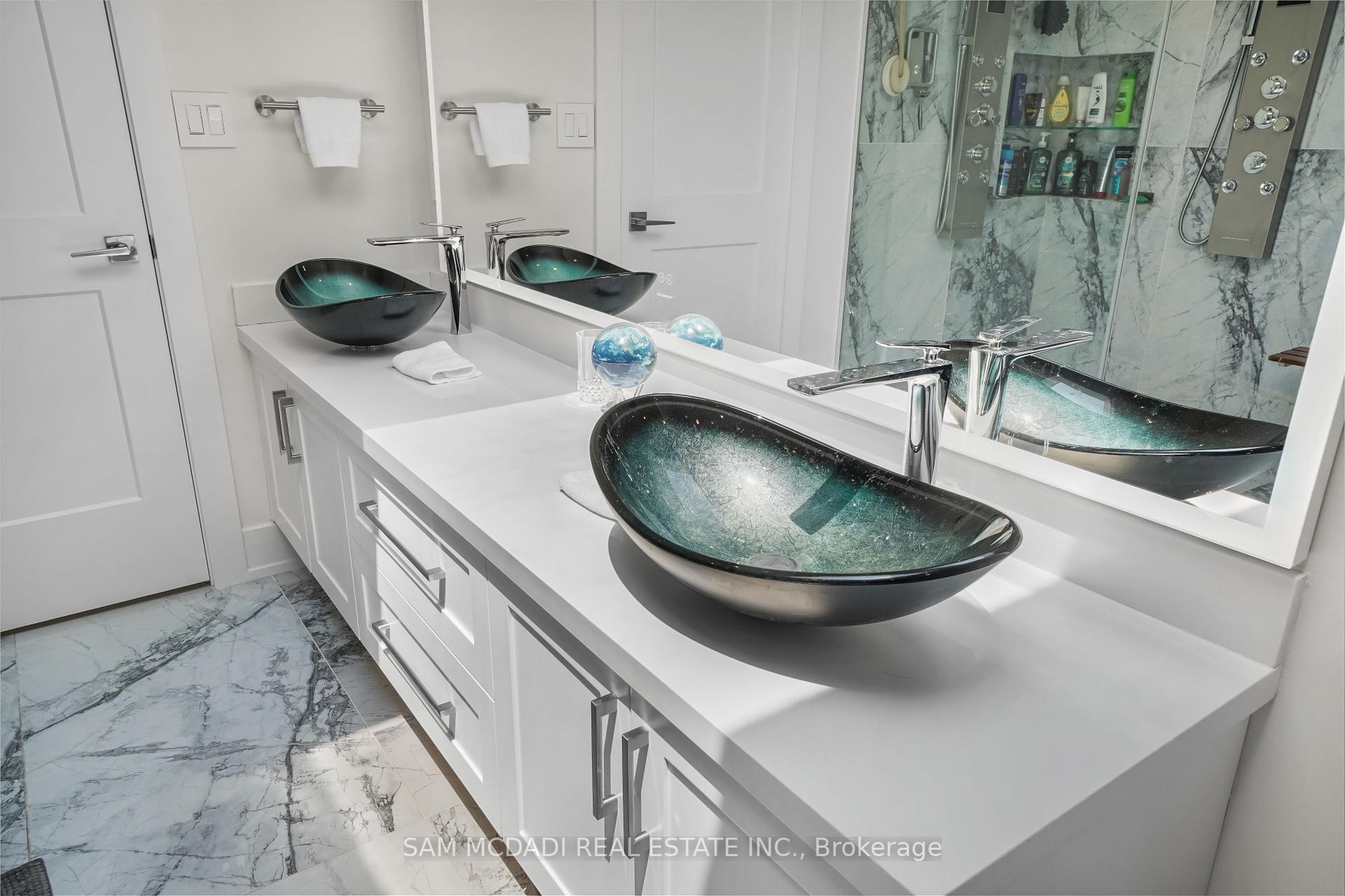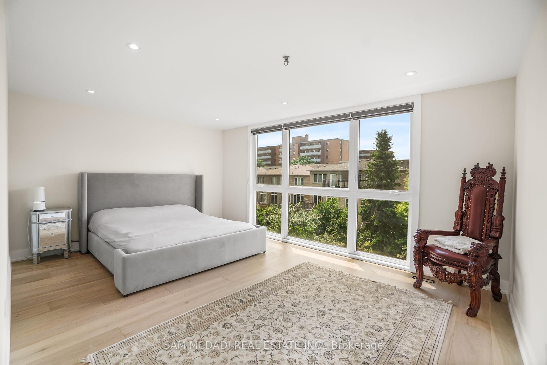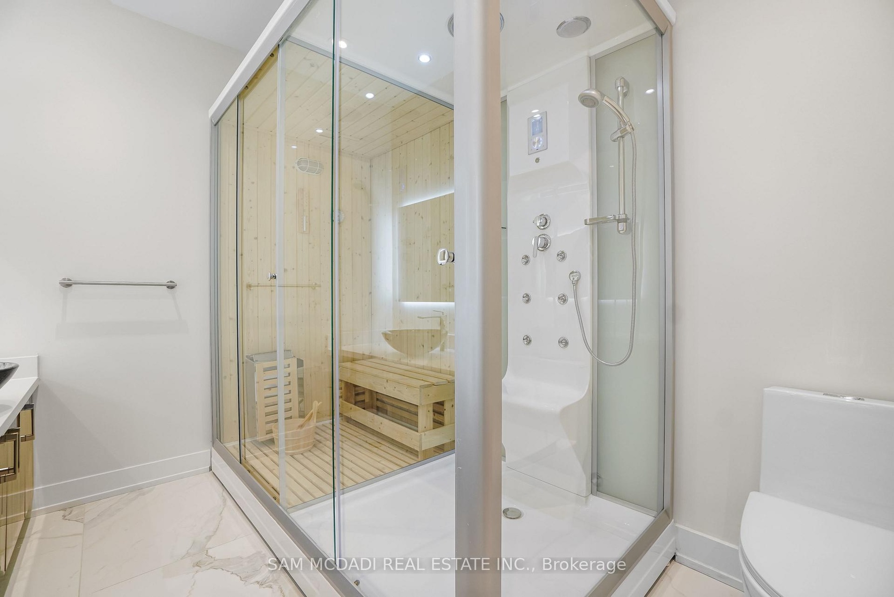 Set in one of Mississauga's most sought-after and evolving neighbourhoods, 1036 Enola Avenue isn't just a home, it's a daily escape into luxury and modern living. Just minutes from the upcoming Lakeview Village, Port Credit, and Lake Ontario's shoreline, this stunning residence blends sophistication with everyday functionality, offering over 3,600 sq ft of meticulously finished space. With no detail overlooked, this custom showpiece features 11-ft ceilings on the main level, open-tread staircases, and sleek glass railings that create effortless flow and sophistication. At the heart of the home, the chef's kitchen is outfitted with built-in premium appliances, custom hood, and a showstopping illuminated imported marble island. Pot lights, wide-plank flooring, and integrated speakers enhance the modern aesthetic. The adjoining living area is anchored by a sleek gas fireplace and full-length windows framing tranquil, green views. The spa-inspired primary suite offers a sculptural soaking tub, dual rainfall shower towers, and a custom walk-in closet. Additional bedrooms are generously sized with designer finishes, and a skylight above the upper hallway floods the space with natural light. The fully finished lower level elevates the living experience with a glass-enclosed wine cellar, private sauna, and a separate walk-up entrance, ideal for extended family, a home office, or rental income. A modern bathroom with double vessel sinks completes the space. Each level features built-in iPad screens connected to the door camera system for secure, voice-enabled entry, while integrated speakers throughout the home are powered by a premium Onkyo audio system perfect for immersive, whole-home sound. Outside, a fenced yard and deck create a private setting for summer entertaining. Just steps from lakefront parks, golf, top-tier schools, and with easy access to the QEW, Highway 403, and the GO Station, this is luxury living in Lakeview at its finest.