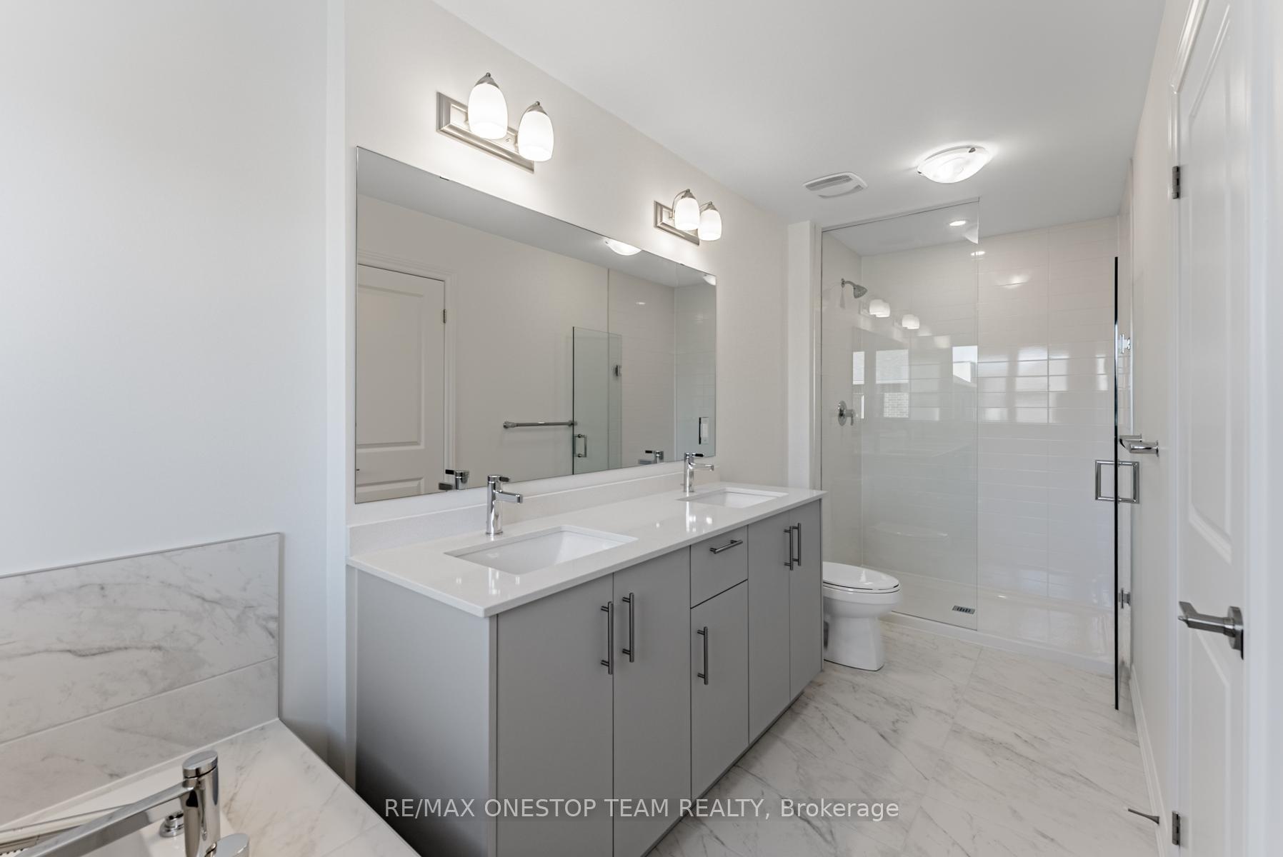 Welcome to this move-in-ready, brand-new, never-lived-in executive townhome located in prestigious Joshua Creek Montage. 2,260 sq ft of luxurious living space with upscale finishes throughout. Step inside to discover a bright and open layout with four spacious bedrooms and 3.5 bathrooms. Soaring 9ft ceilings on main floor. Elegant hardwood flooring throughout, oversized windows that flood the home with natural light. The kitchen boasts a large island, quartz countertops, upgraded cabinetry and stainless steel appliances, perfect for entertaining or family living. The primary bedroom offers a peaceful retreat with a spa-inspired 5-piece ensuite and a large walk-in closet while the secondary bedroom also features its own private ensuite. The two additional bedrooms share a modern 4-piece bath. Enjoy the convenience of a second-floor laundry room complete with built-in cabinetry and extra storage. Situated in one of Oakville's most desirable communities, with easy access to Hwy 403, 407, and QEW, plus proximity to Oakville and Clarkson GO Stations, top-rated schools, parks, trails, and shopping.