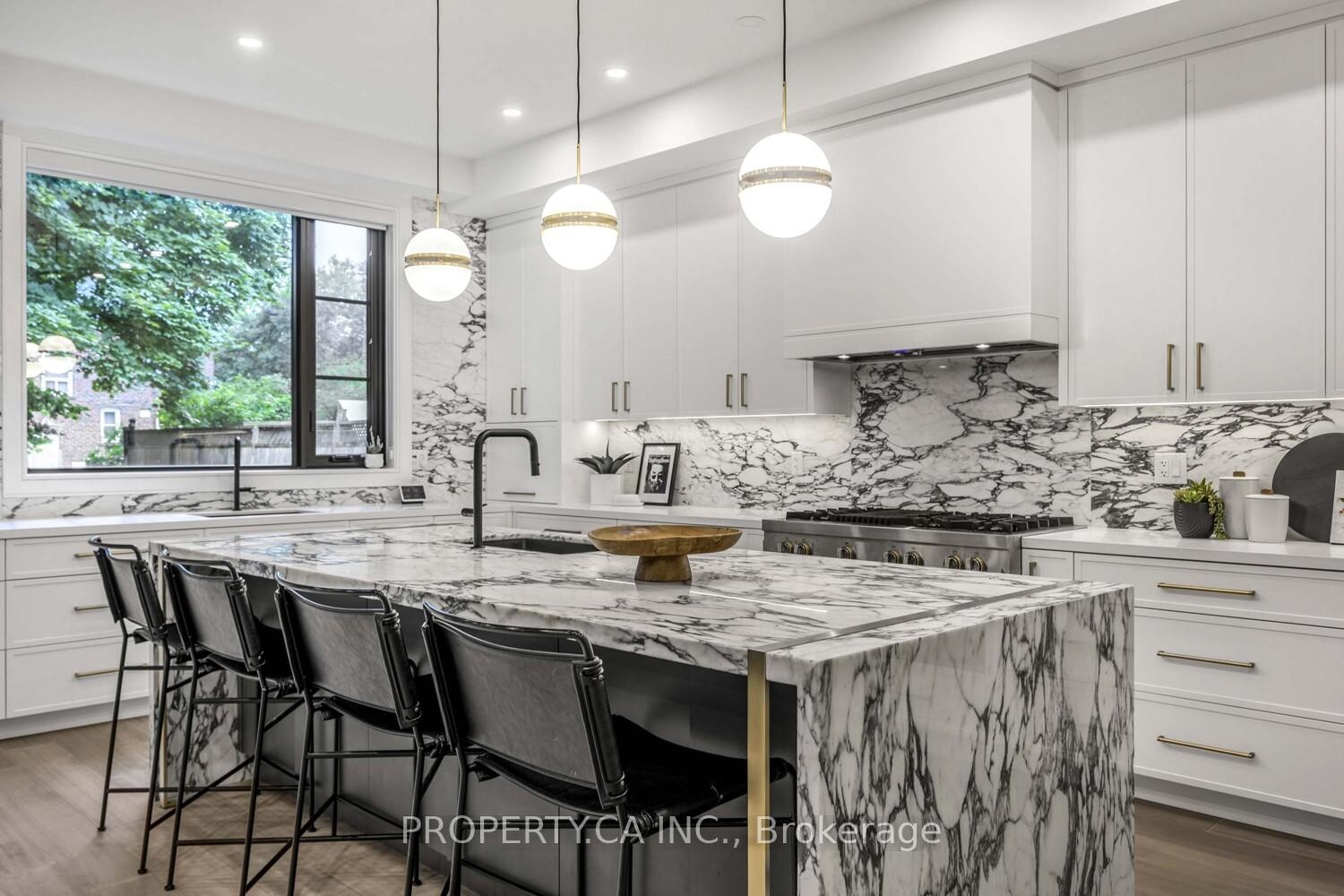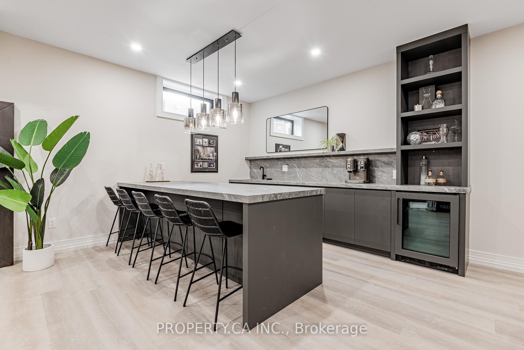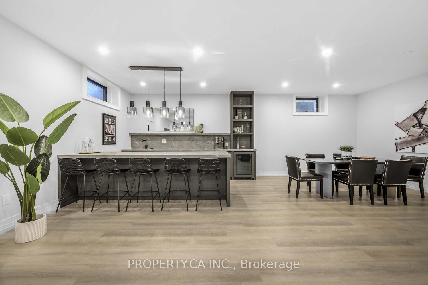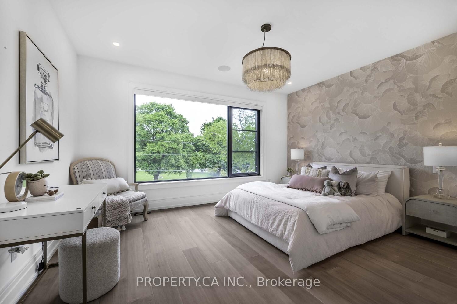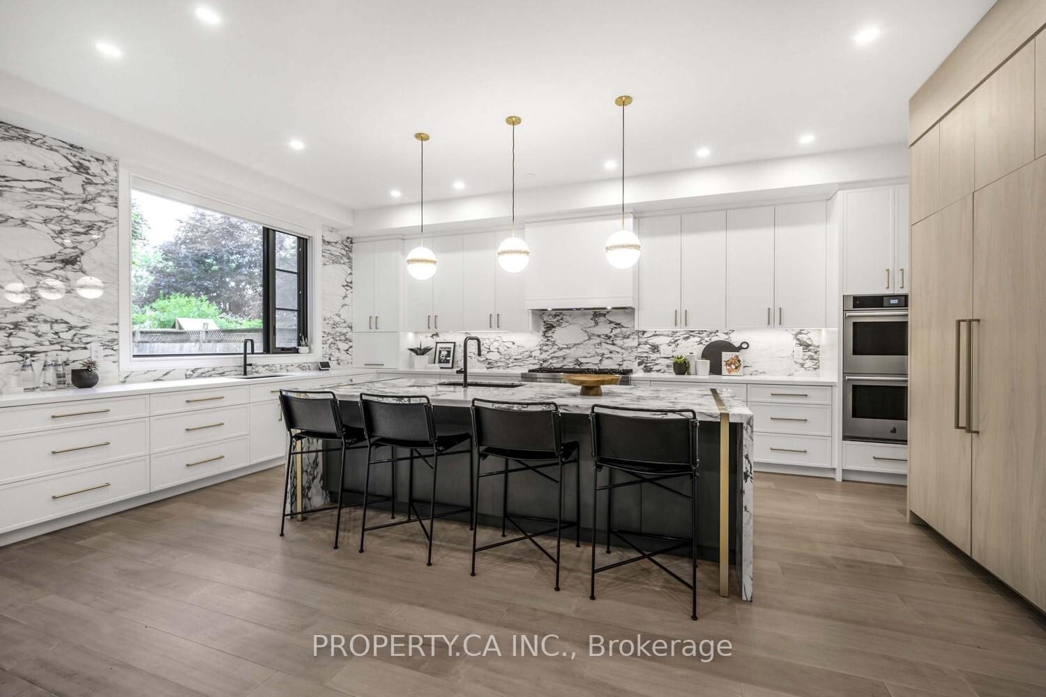 Welcome to 8 Manor Haven Road A Custom Home Across from the Park!This beautifully designed 4+1 bedroom, 6-bathroom home offers over 3500 sqft luxurious living in a prime family-friendly location. Designed by Shaun Lipsey, it features premium finishes and a thoughtful, functional layout throughout. The main floor features 10ft ceilings, pre-engineered hardwood floors, pot lights, and floor-to-ceiling inline windows that flood the home with natural light. Spacious principal rooms include a formal living room and a large separate dining room, ideal for entertaining. The chefs kitchen by California Kitchens is a true showstopper, equipped with top-of-the-line JennAir appliances, including a side-by-side fridge and freezer, two wall ovens, and a massive 10-ft island with ample seating. A dedicated prep space with drink fridge, paired with a huge walk-in pantry offer exceptional storage and prep space. The family room features a cozy fireplace framed by a stunning floor-to-ceiling granite feature wall, creating a dramatic and welcoming focal point.Upstairs, you'll find four spacious bedrooms and three full bathrooms, including a primary retreat with a walk-in closet by Closets by Design and a spa-like ensuite with heated floors.The finished basement offers 1570 sqft includes a fifth bedroom, full bathroom, and a large open-concept rec space ideal for a home office, gym, or guest suite. A built-in bar adds flexibility for entertaining. Additional highlights include a heated mudroom, built-in Sonos surround sound, gas BBQ hookup, and a large private backyard. Located directly across from a park, this home delivers top-tier quality, comfort, and modern family living