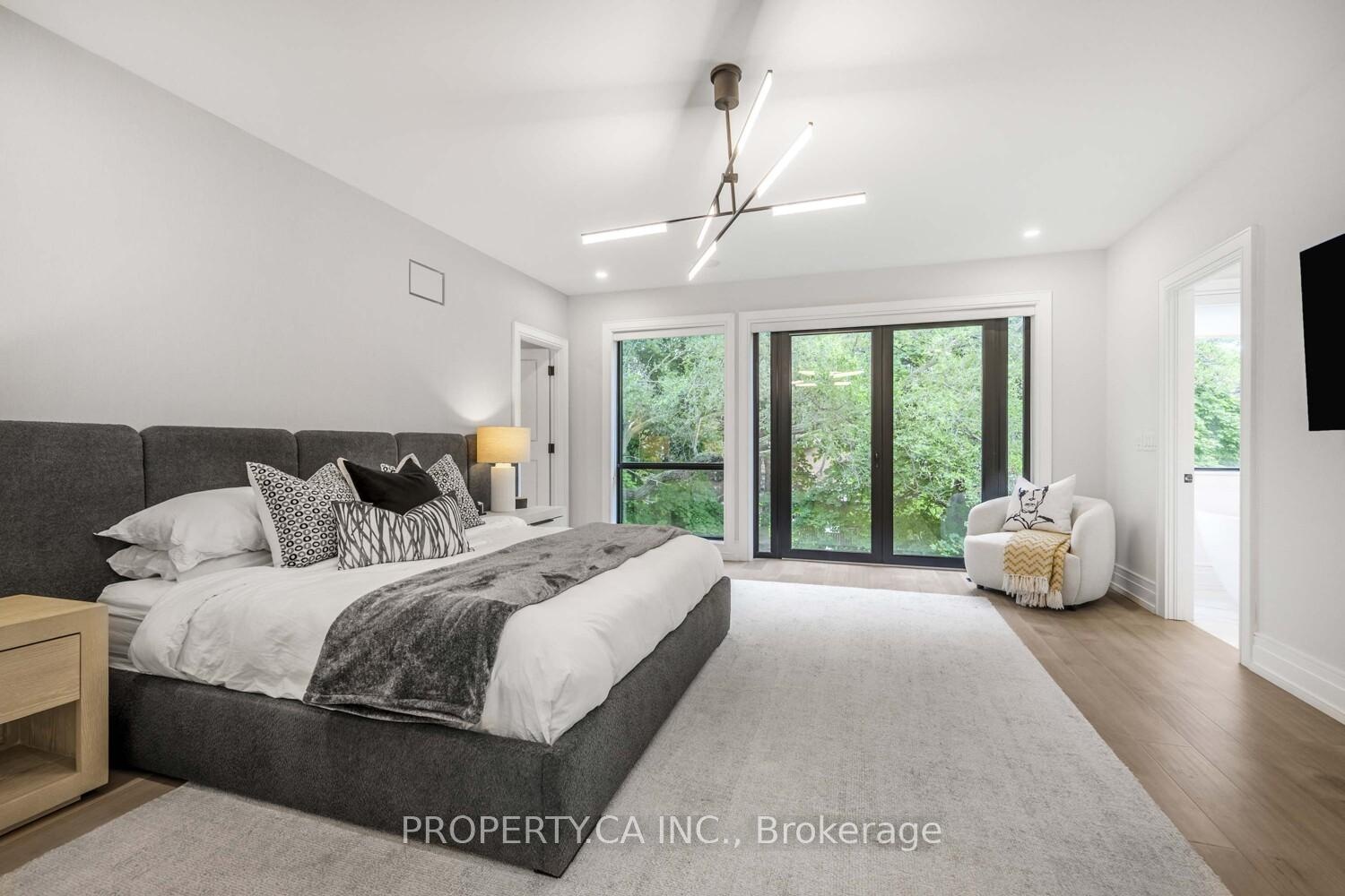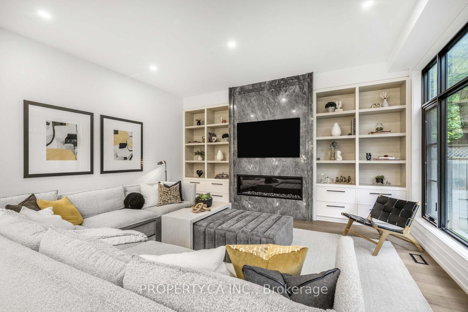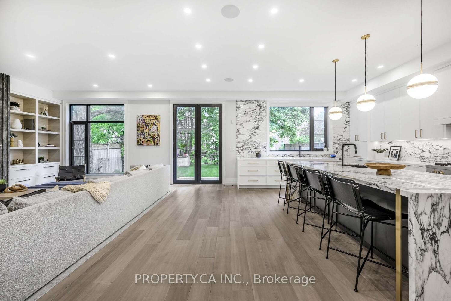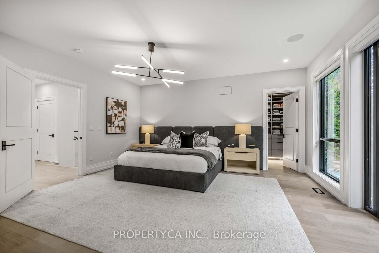 Welcome to 8 Manor Haven Road A Custom Home Across from the Park!This beautifully designed 4+1 bedroom, 6-bathroom home offers over 3500 sqft luxurious living in a prime family-friendly location. Designed by Shaun Lipsey, it features premium finishes and a thoughtful, functional layout throughout. The main floor features 10ft ceilings, pre-engineered hardwood floors, pot lights, and floor-to-ceiling inline windows that flood the home with natural light. Spacious principal rooms include a formal living room and a large separate dining room, ideal for entertaining. The chefs kitchen by California Kitchens is a true showstopper, equipped with top-of-the-line JennAir appliances, including a side-by-side fridge and freezer, two wall ovens, and a massive 10-ft island with ample seating. A dedicated prep space with drink fridge, paired with a huge walk-in pantry offer exceptional storage and prep space. The family room features a cozy fireplace framed by a stunning floor-to-ceiling granite feature wall, creating a dramatic and welcoming focal point.Upstairs, you'll find four spacious bedrooms and three full bathrooms, including a primary retreat with a walk-in closet by Closets by Design and a spa-like ensuite with heated floors.The finished basement offers 1570 sqft includes a fifth bedroom, full bathroom, and a large open-concept rec space ideal for a home office, gym, or guest suite. A built-in bar adds flexibility for entertaining. Additional highlights include a heated mudroom, built-in Sonos surround sound, gas BBQ hookup, and a large private backyard. Located directly across from a park, this home delivers top-tier quality, comfort, and modern family living