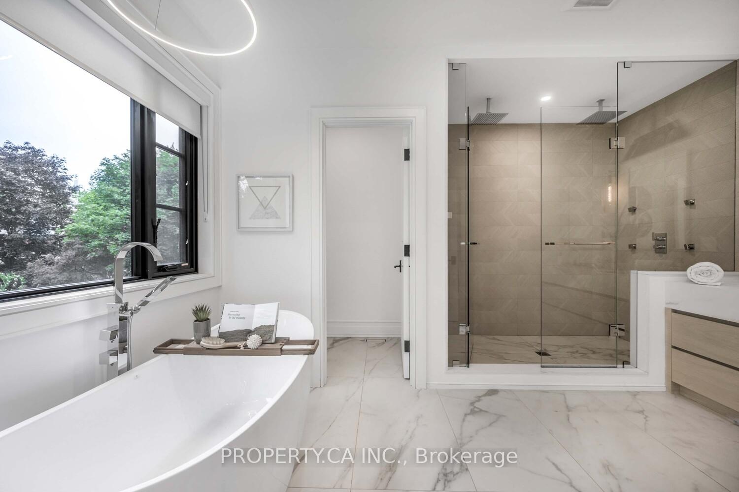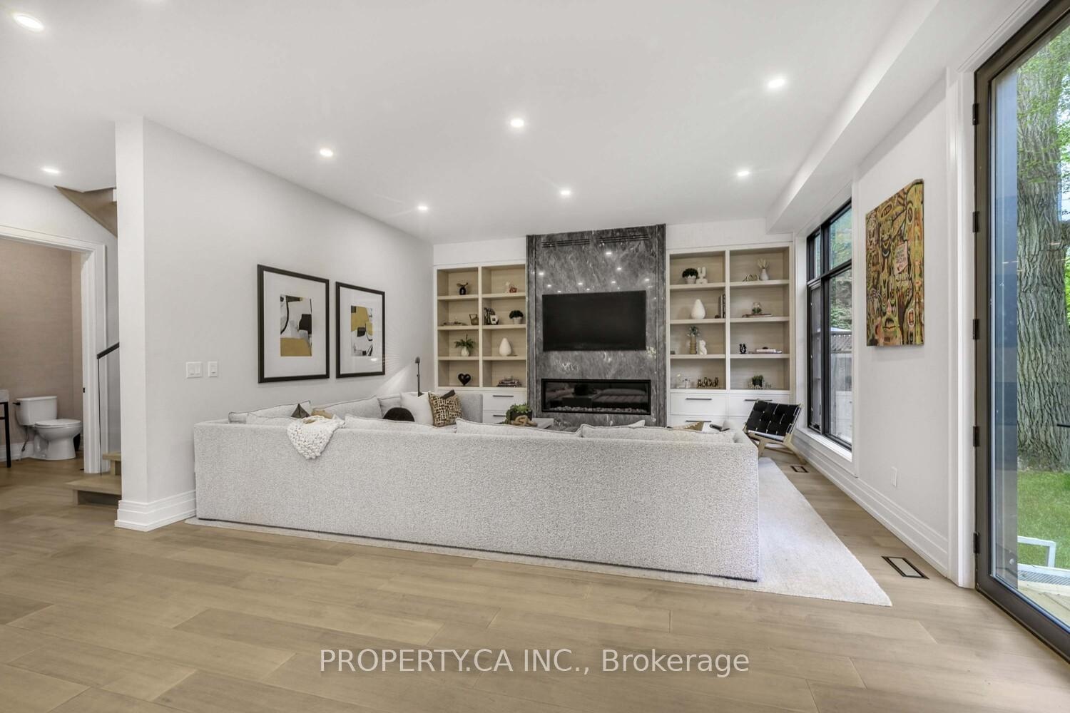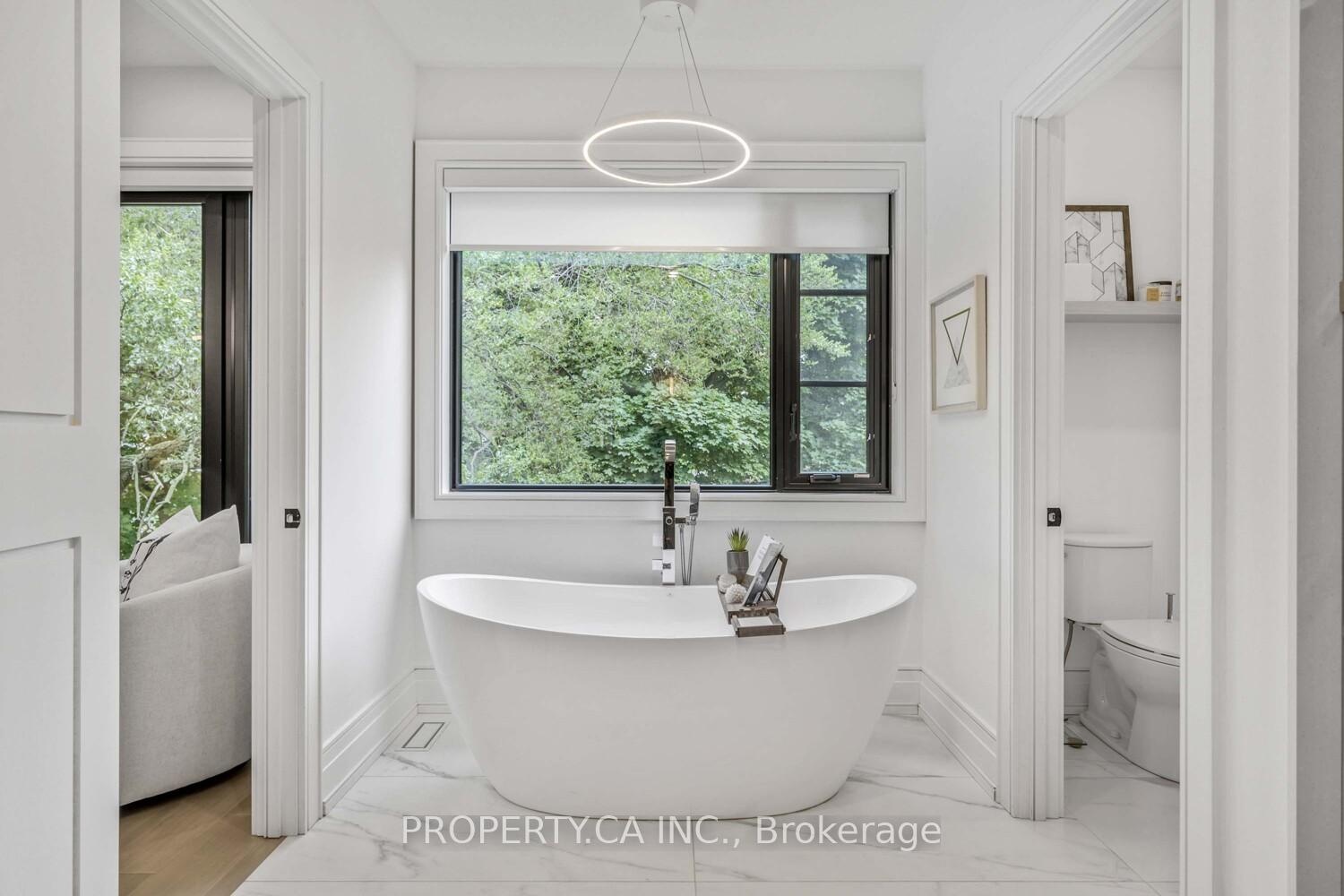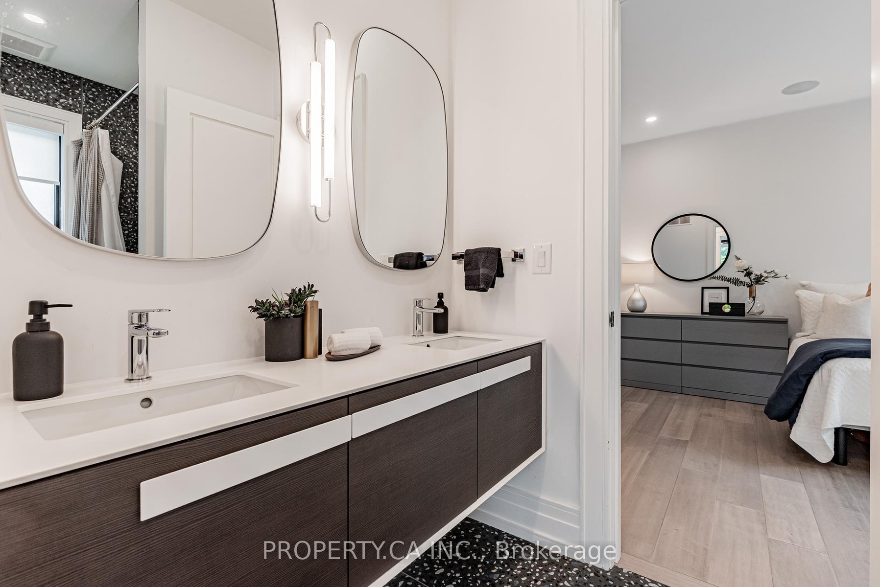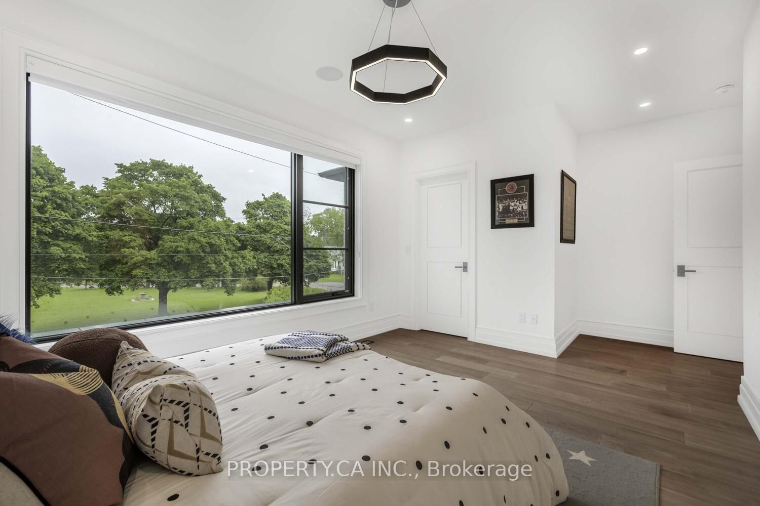 Welcome to 8 Manor Haven Road A Custom Home Across from the Park!This beautifully designed 4+1 bedroom, 6-bathroom home offers over 3500 sqft luxurious living in a prime family-friendly location. Designed by Shaun Lipsey, it features premium finishes and a thoughtful, functional layout throughout. The main floor features 10ft ceilings, pre-engineered hardwood floors, pot lights, and floor-to-ceiling inline windows that flood the home with natural light. Spacious principal rooms include a formal living room and a large separate dining room, ideal for entertaining. The chefs kitchen by California Kitchens is a true showstopper, equipped with top-of-the-line JennAir appliances, including a side-by-side fridge and freezer, two wall ovens, and a massive 10-ft island with ample seating. A dedicated prep space with drink fridge, paired with a huge walk-in pantry offer exceptional storage and prep space. The family room features a cozy fireplace framed by a stunning floor-to-ceiling granite feature wall, creating a dramatic and welcoming focal point.Upstairs, you'll find four spacious bedrooms and three full bathrooms, including a primary retreat with a walk-in closet by Closets by Design and a spa-like ensuite with heated floors.The finished basement offers 1570 sqft includes a fifth bedroom, full bathroom, and a large open-concept rec space ideal for a home office, gym, or guest suite. A built-in bar adds flexibility for entertaining. Additional highlights include a heated mudroom, built-in Sonos surround sound, gas BBQ hookup, and a large private backyard. Located directly across from a park, this home delivers top-tier quality, comfort, and modern family living