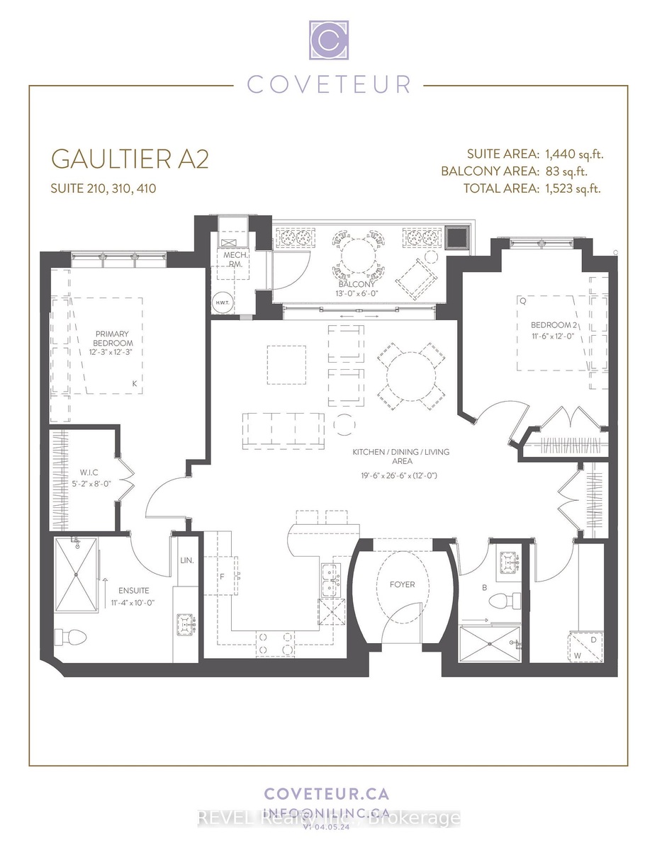 Welcome to The Gaultier A2 at Coveteur, Niagara's newest address for luxury living. This stunning fourth-floor suite offers 1,457 sq. ft. of beautifully finished living space with 2 spacious bedrooms and captivating West-facing views of the surrounding natural scenery. Designed for modern elegance, this open-concept suite features 10-ft ceilings, 8-ft doors, and an architecturally distinctive circular foyer. Personalize your home with one of four curated designer decor stylesParisian, Scandinavian Chic, New York Loft, or European Traveller each crafted for timeless sophistication. The kitchen boasts designer cabinetry with crown moulding, quartz countertops, a tile backsplash, and an eat-in island perfect for entertaining. Enjoy year-round comfort with an Echobee smart thermostat and an individual high-efficiency MagicPak system with fresh air ventilation. Elegant three-pane sliding doors open to a private balcony offering serene views. Building amenities include a landscaped outdoor terrace, party room with kitchen, library and lounge with two-sided fireplace, and a fitness and yoga studio. One underground parking space and locker included. Built strong with Insulated Concrete Forms (ICF) for superior quality and energy efficiency. Construction is underway with occupancy expected Fall 2026. Visit www.coveteur.ca for floorplans and more details.