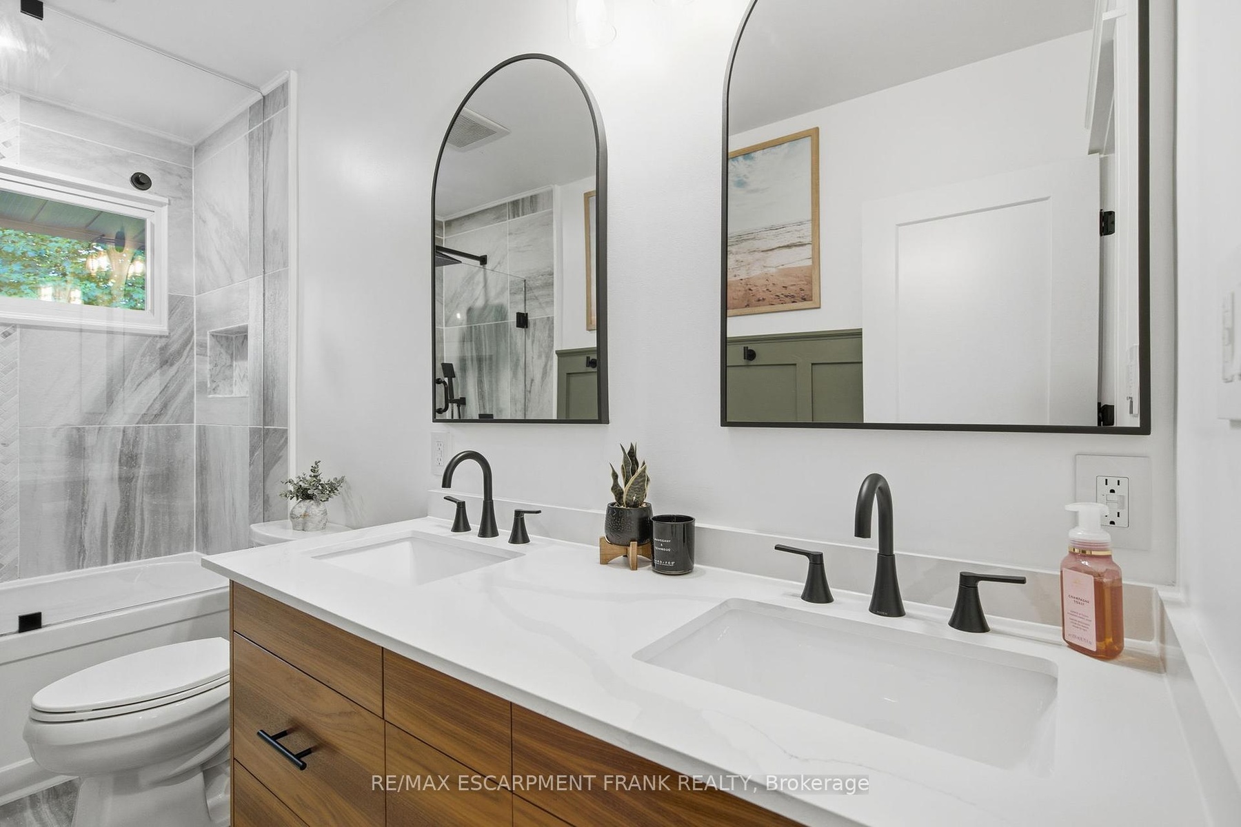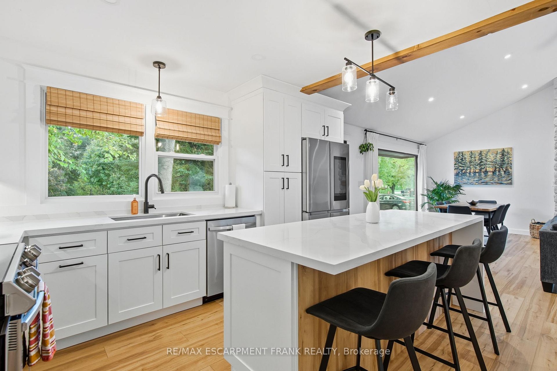 Charming Ancaster Bungalow on Expansive Lot with Luxury Upgrades - Welcome to 570 Westview - a beautifully reimagined bungalow nestled in the heart of Ancaster, set on a magnificent 88 x 173 ft lot. This home perfectly blends modern elegance with thoughtful functionality, offering both style and substance across every inch of its meticulously upgraded interior and exterior. Step inside to discover a warm, open-concept living space, beautifully enhanced with vaulted ceilings, a gas fireplace, and a seamless flow into the fully renovated kitchen. Designed for multi-generational living or added flexibility, the home also features a private in-law suite and two separate laundry areas for ultimate convenience. Entertain effortlessly with a chef-inspired kitchen upstairs and a secondary kitchen in the basement - both tastefully updated (the basement kitchen completed with cost-conscious efficiency). The home features a luxurious hot tub, set within a professionally landscaped backyard oasis complete with a paver walkway, concrete patio, and elegant gazebo. Among the home's many standout features are premium European-imported windows and doors, including a spectacular nearly 12-ft "lift-and-slide" back door - offering effortless access to the backyard while flooding the interior with natural light. With easy highway access, this home is perfect for commuters and families alike. Every detail has been carefully considered to create a move-in-ready haven, blending craftsmanship, comfort, and modern flair.