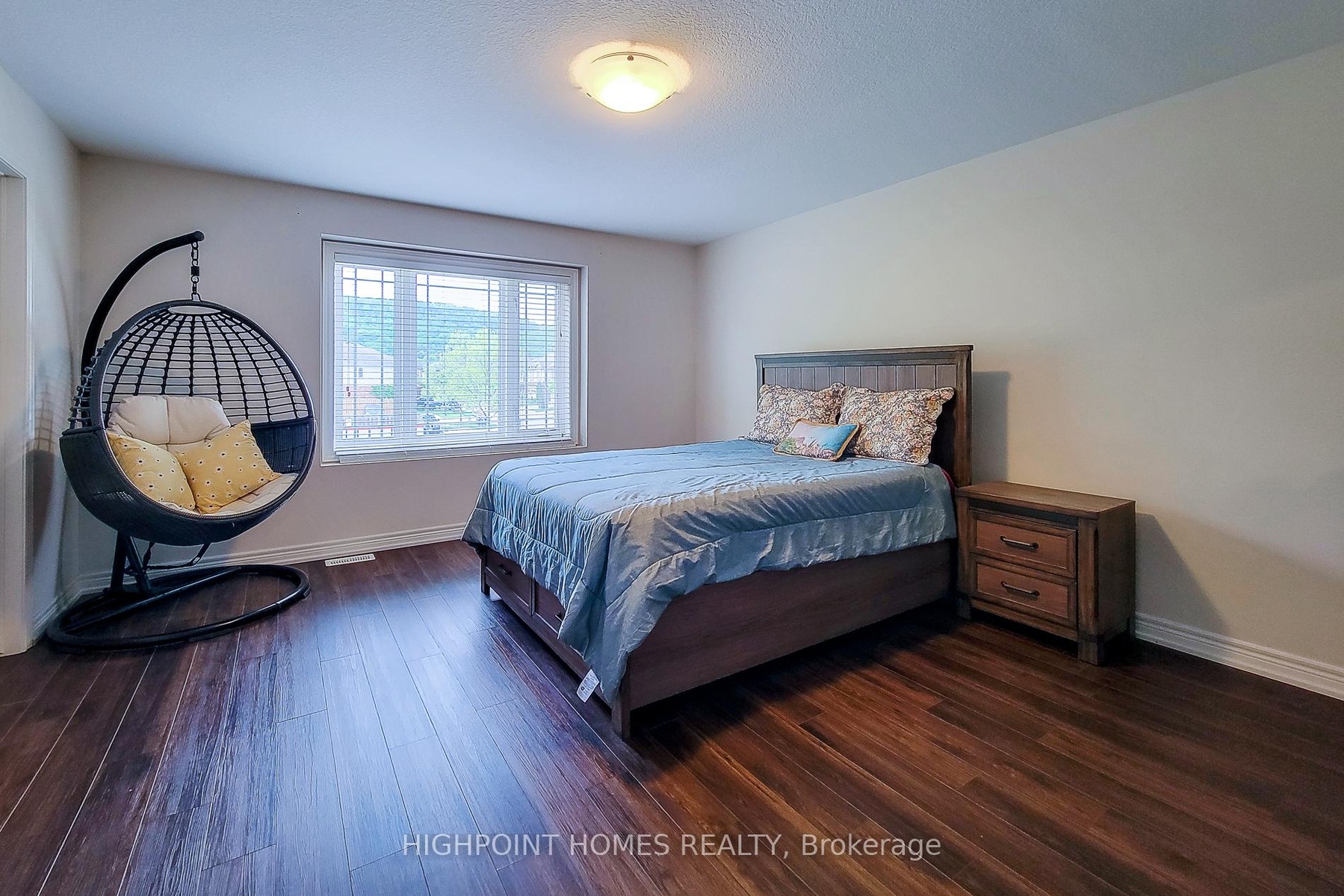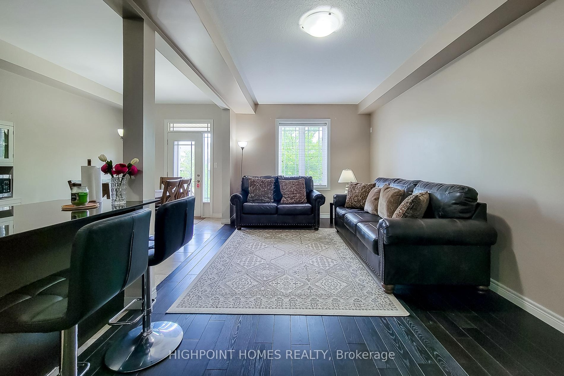 Stunning Freehold Townhouse with Escarpment Views! Welcome to this beautifully maintained 3-bedroom freehold townhouse, perfectly situated with scenic views of the Niagara Escarpment. Ideally located within walking distance to shopping, dining, parks, an arena, splash pad, and with quick access to the QEW and the upcoming GO station this home is perfect for commuters and families alike. Step into a spacious, modern open-concept main floor featuring 9-foot ceilings, granite countertops, a large island, stainless steel appliances, rich hardwood flooring, a stylish 2-piece powder room, and convenient inside access to the garage. Garden doors open to a lush, maintenance-free backyard with a new concrete patio and custom built-in planter boxes perfect for relaxing or entertaining guests. Upstairs, you will find three generous bedrooms, two full bathrooms, and a large, conveniently located laundry room. The primary suite is a true retreat, offering a spacious walk-in closet with a window and a private 4-piece ensuite bath. Lower level boasts an oversized window, a cozy den, an additional flex space ideal for a home office or gym, plenty of storage, and a bathroom rough-in offering flexibility for future customization. Whether you're a growing family, need extra space for guests, or are simply looking for a comfortable place to call home, this home checks all the boxes!