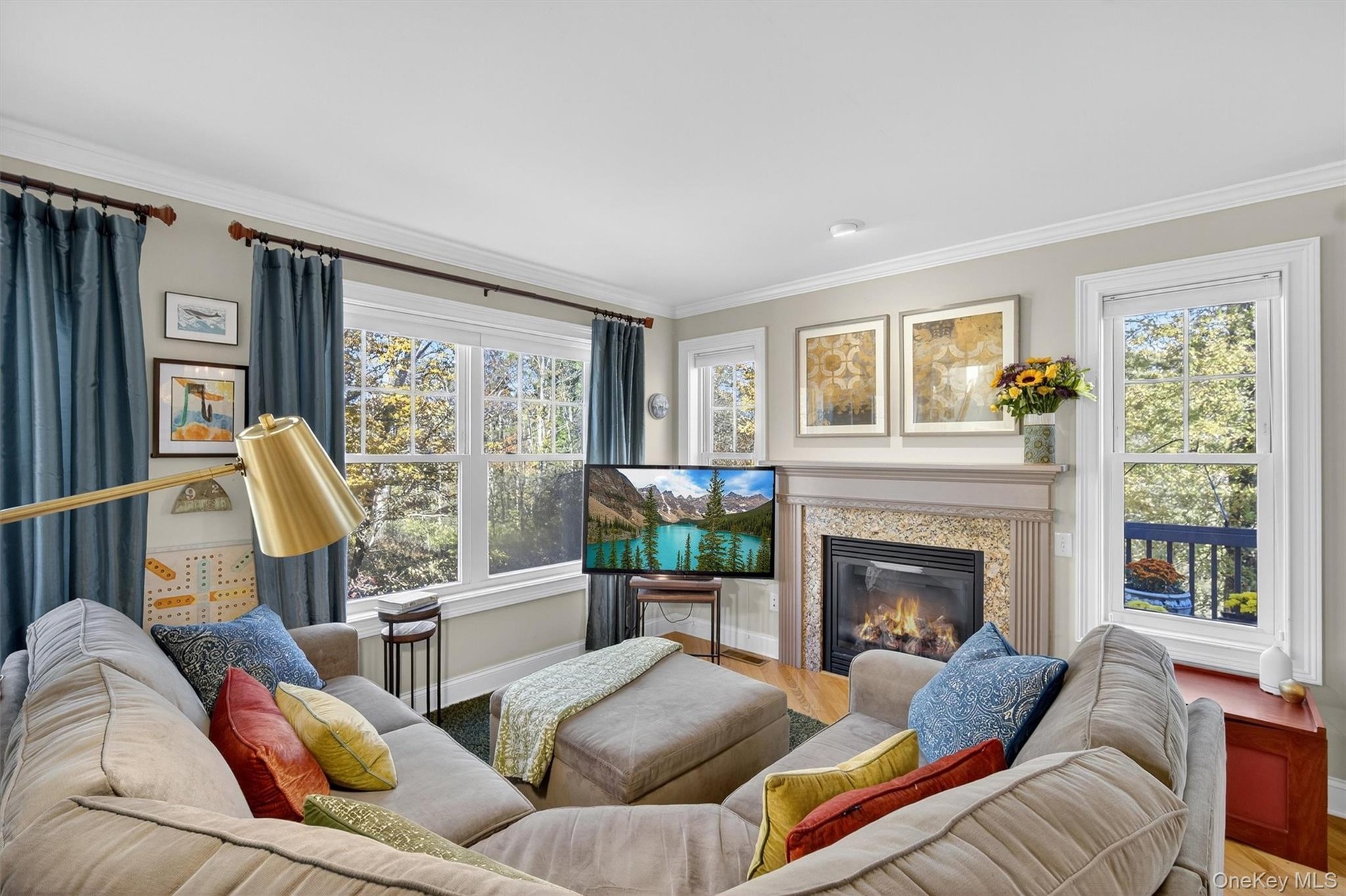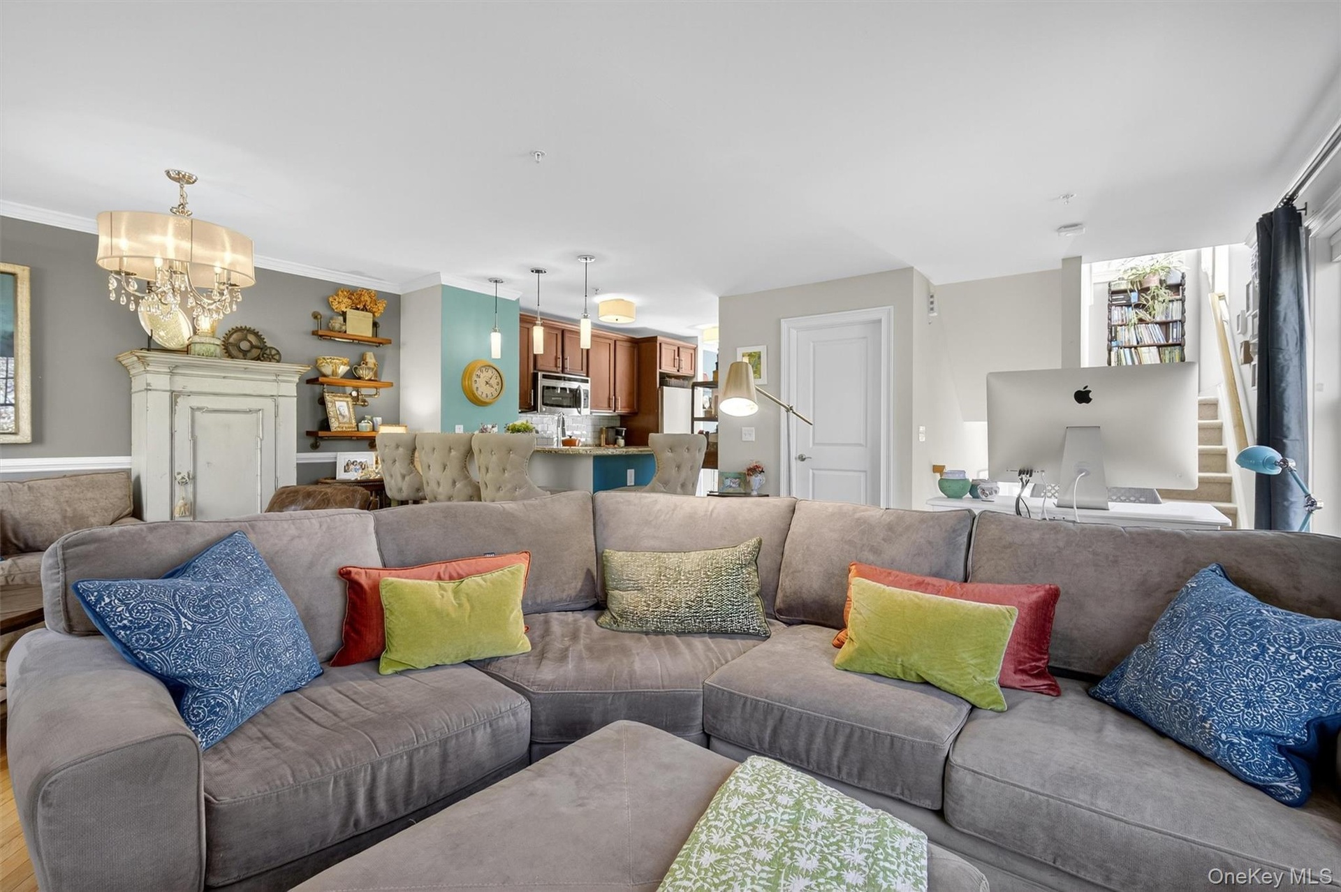 - There is plenty of seating in the living room to enjoy visiting with guests.