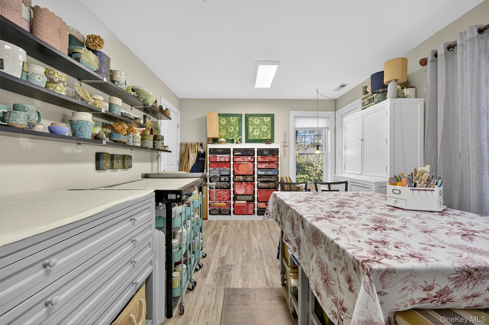 - Another view of the recreation room/studio showing the luxury vinyl flooring.
