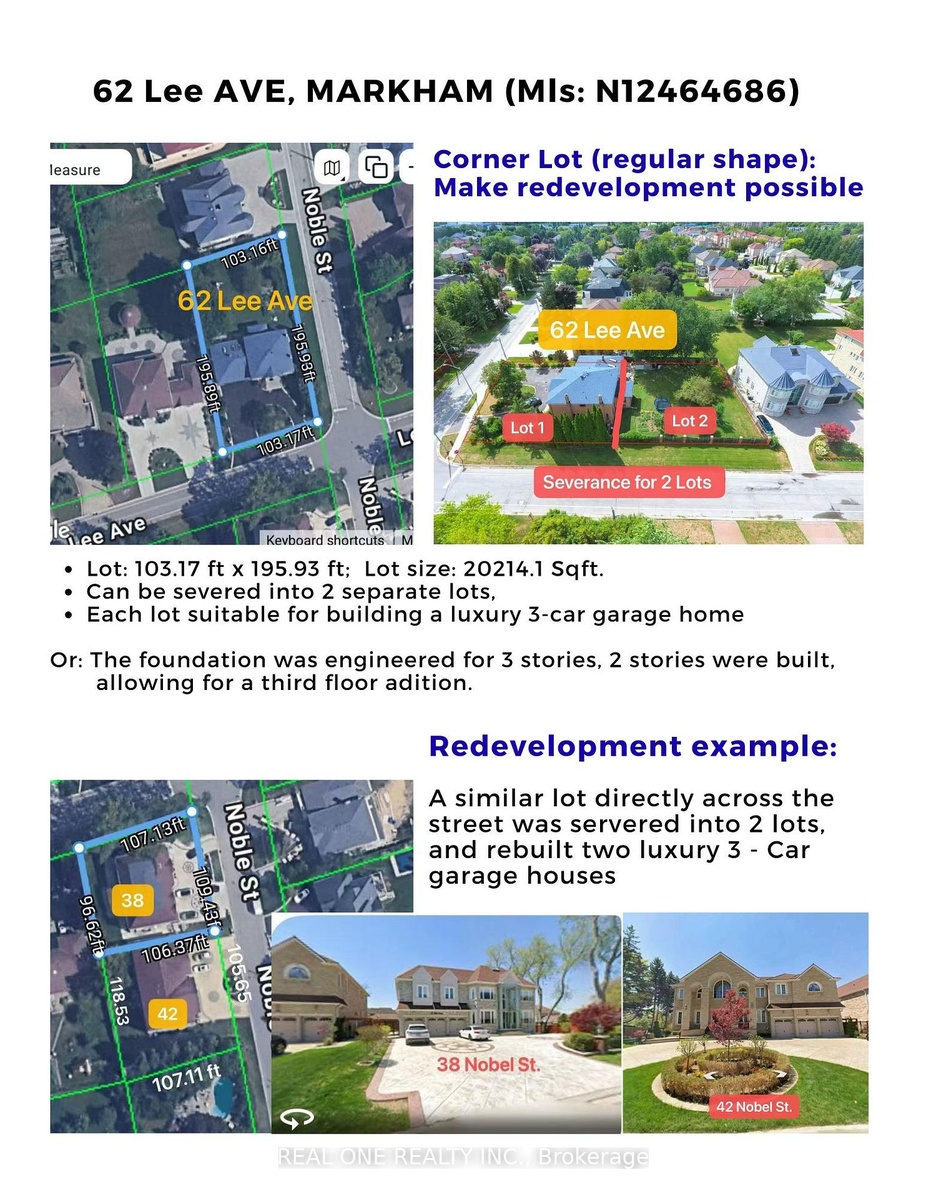 Rare find! Executive 3-Car Garage home situated on a premium half-acre corner lot w/a circular driveway & ample parking. This stunning 2-storey detached mansion offers over 6,000 sqft of living space, beautifully dressed in a warm, neutral décor throu-out. Enter the double doors and be impressed by the Scarlett OHara staircase leading to 4 spacious bedrms. Enjoy separate formal living & dining Rms, a private office & an oversized gourmet kit w/ a bright, Banquet-style breakfast area. Large flr-to-ceiling windows fill the home w/natural light & offer beautifully landscaped garden views from every corner. The all-seasons solarium features skylights & wall-to-wall glass, creating a seamless connection to nature year-round. The lower level offers two separate entrances , two bedrooms, a 4-piece bath, laundry area. A massive recreation room perfect for family gatherings or multi-generational living. Built by an Italian builder, this home is exceptionally solid & well-constructed, and has been meticulously maintained over the years $$$. Basmt features newly updated flooring. This premium corner lot offers excellent redevelopment potential. The regular-shaped lot is ideal for future severance into two lots, each suitable for building luxury custom homes. The property directly across the street has already been successfully severed and redeveloped into two luxury 3-car garage homes, confirming the strong severance potential of this site. This property represents an exceptional opportunity for builders, investors, or families seeking to create two prestigious residences in one of Markham most sought-after areas. Top Rank Milliken Mills H.S (Fraser Institute 2024 Rank #16 in Ontario; IB Program ), Close To 407, Shopping Malls, Restaurants, Supermarkets, T&T, Clinics, etc.