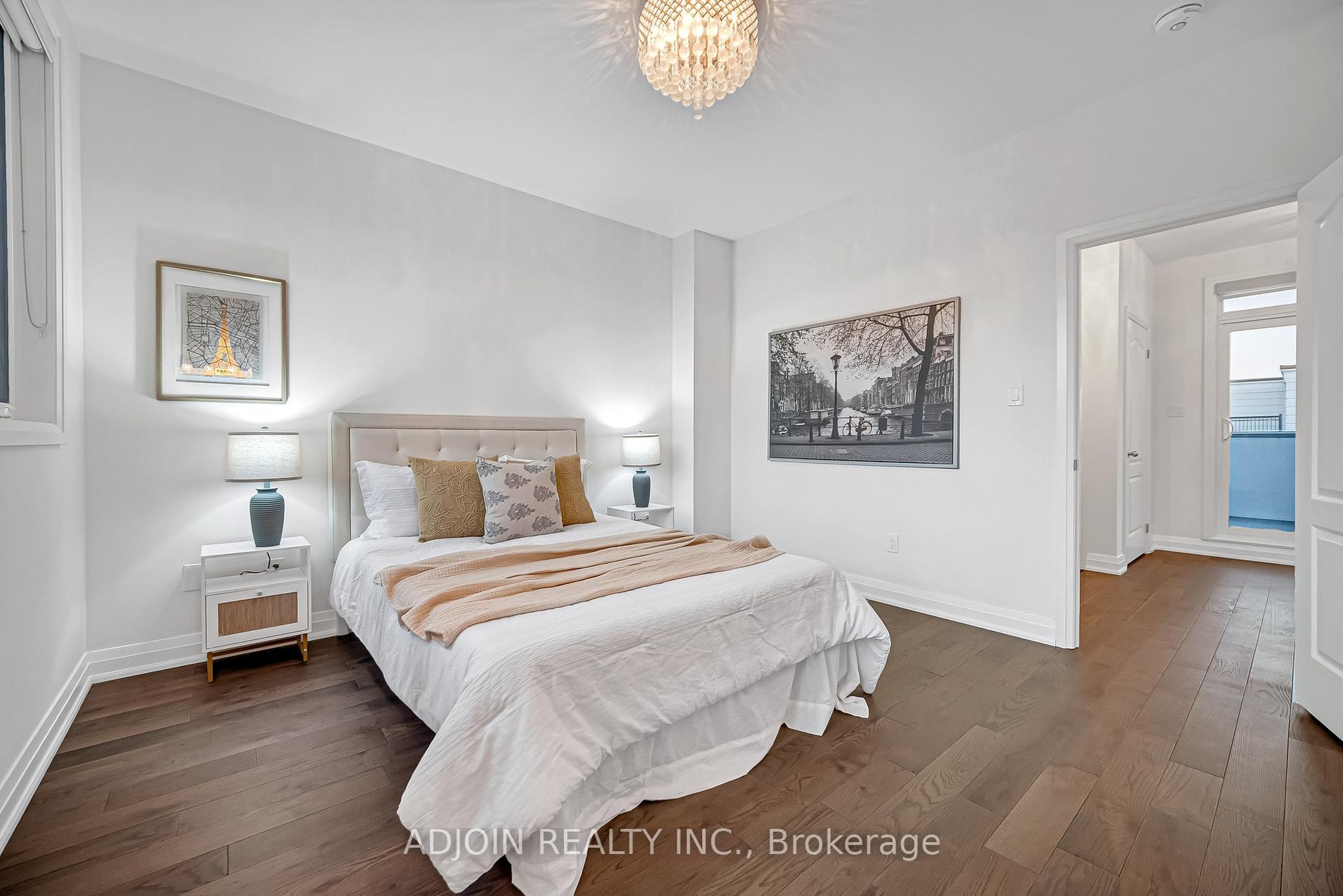 Stunning Double-Car Garage Townhouse In Prime Unionville. Experience luxury living in this beautifully renovated townhouse offering approximately 2,500 sq. ft. of spacious comfort with 9-ft ceilings throughout. This elegant home features hardwood floors, pot lights, and modern light fixtures for a bright, contemporary feel.Each of the three generous bedrooms boasts its own ensuite bathroom, providing ultimate privacy and convenience. The primary suite includes a sitting area and a walkout terrace-perfect for morning coffee or evening relaxation.An oak staircase with iron pickets adds a touch of sophistication, while an elevator-sized storage room on each level offers future flexibility for an elevator installation. Enjoy two large balconies with east and west views, bringing in natural light all day long.Recently painted and featuring new hardwood floors in all bedrooms, this home is move-in ready! Top-Rated School Zone: Unionville High School & Coledale Public School. Easy access to Hwy 404 & 407, walking distance to Hwy 7, Whole Foods Plaza, York University Markham Campus, Unionville Main Street, and scenic Toogood Pond.Make this exquisite townhouse your new home and embark on life's next beautiful chapter in Unionville!