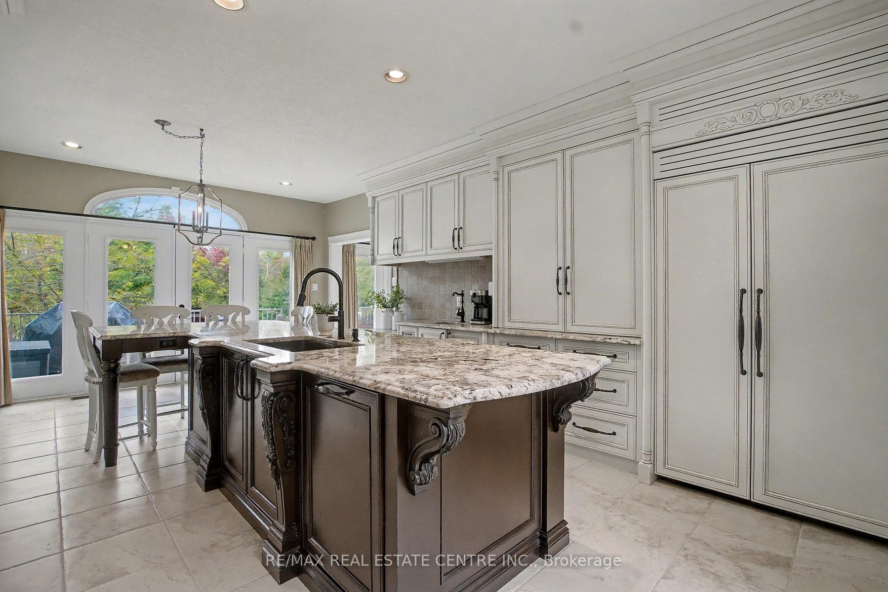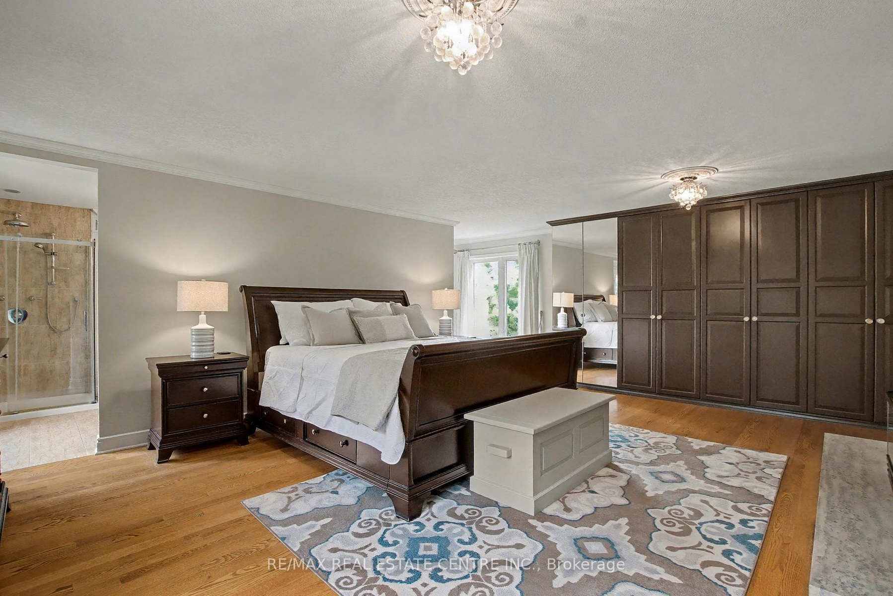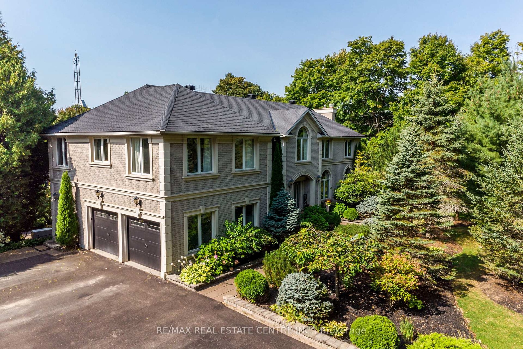 Personal Sanctuary in Prestigious Ennisclare Woods. Tucked away on 2.85 private acres, this property feels like your own exclusive resort. A fenced saltwater pool with a waterfall feature and a spacious pavilion with ample seating and a bar set the stage for unforgettable gatherings. Surrounded by mature trees, lush perennial gardens, and a private forest, this home is truly an oasis of tranquillity. This custom-built residence makes an impression at every turn. Step into the stately foyer, leading to the upgraded chef's kitchen complete with a walk-in pantry, hidden pull-out spice and pan storage, and a dedicated dining area. The great room, anchored by a grand fireplace, flows effortlessly into a private office/study and out to the elevated veranda. With retractable awnings and sweeping views of the grounds, it's the perfect spot to relax or entertain. The oversized primary suite offers a romantic fireplace, generous closets, and a spa-inspired ensuite retreat. A second bedroom enjoys its own ensuite, while the third and fourth bedrooms share a well-appointed bathroom. The fully finished lower level expands the living space with a recreation room (featuring yet another fireplace), a fifth bedroom, a full bath, an additional home office, and abundant storage. Ennisclare Woods is a one-of-a-kind community of 29 estate homes surrounded by 90 acres of protected woodland trails (just $200/year). Highlights include:4+1 bedrooms, 4.5 bathrooms, 3 fireplaces, Home office + mudroom, inside entry from an attached 2-car garage, Detached garage/workshop + shed, Resort-style saltwater pool & pavilion. This home truly offers something for everyone, privacy, luxury, and a setting unlike any other.