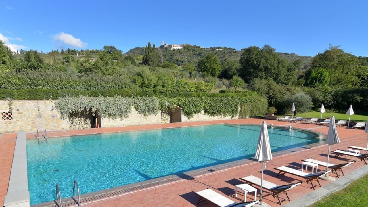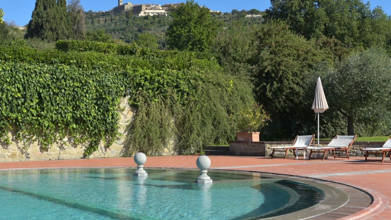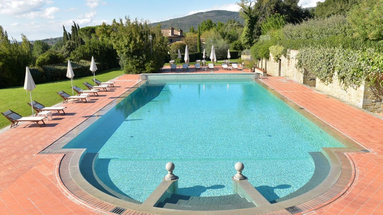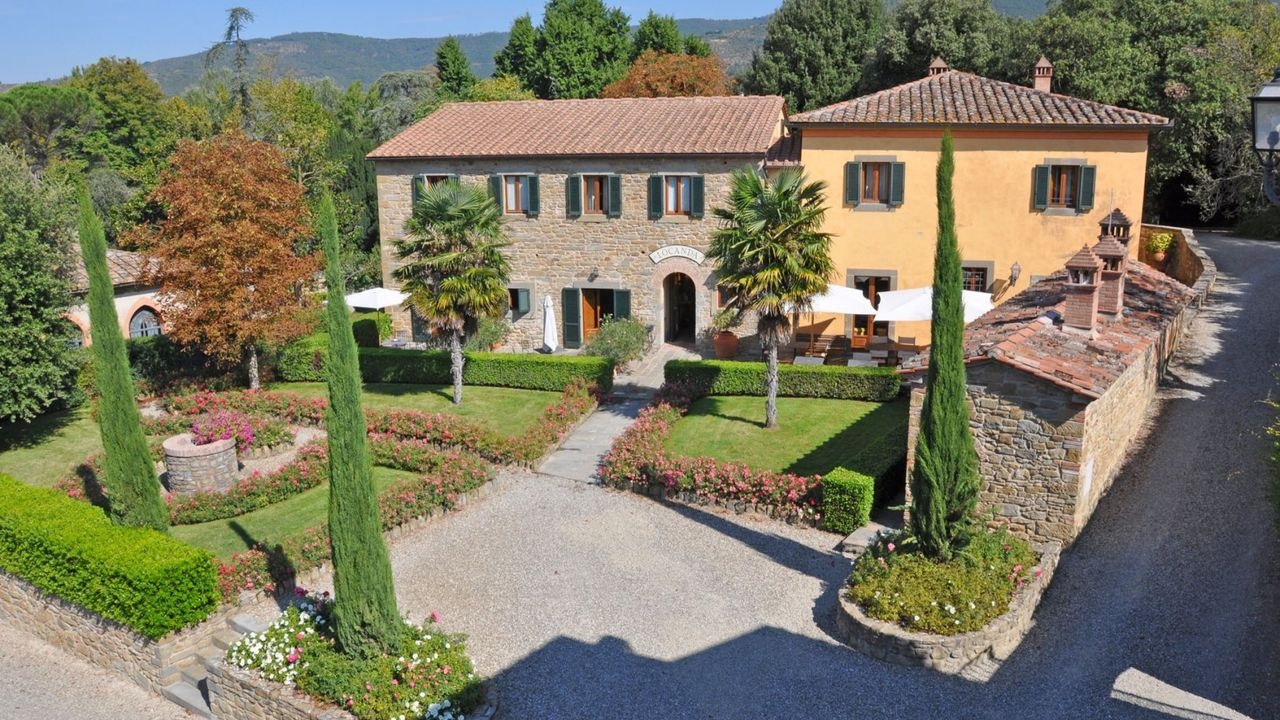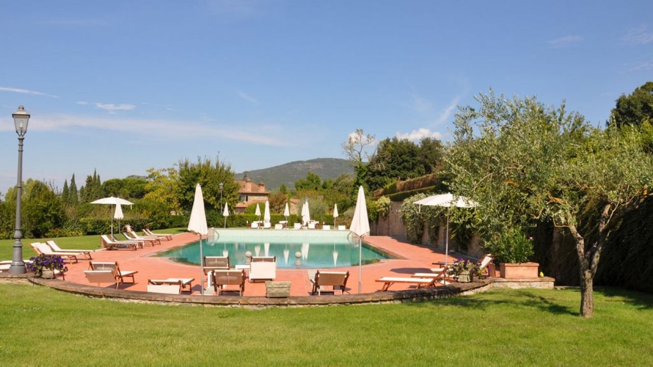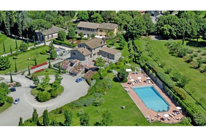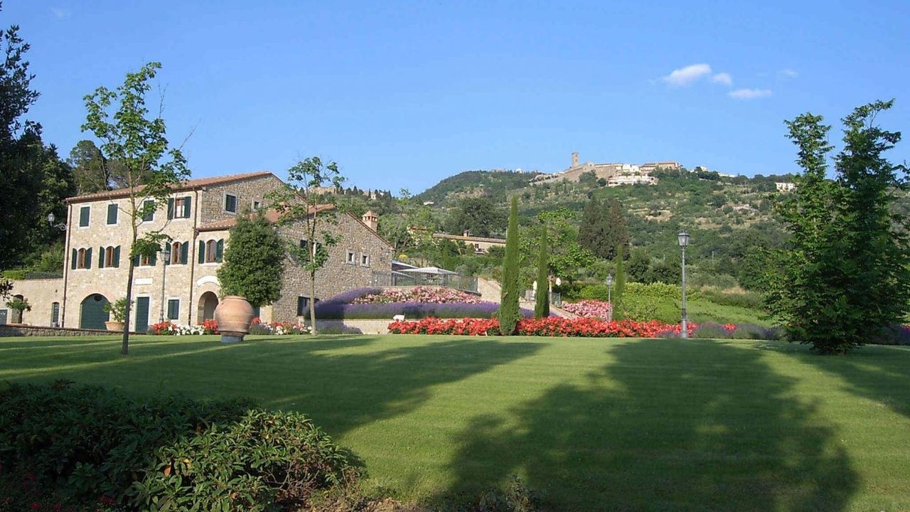 Cortona: At the feet of this wonderful town, renowned for its historical and environmental beauties and for having been one of the first Etruscan villages, for sale palatial ancient resort surrounded by a neat parkland set in the lush Tuscan countryside's hearth. The complex dates back to '800 and stands in a stunningly beautiful spot, hidden away in a quiet position, from where, though, all most artistically important cities of the area are easily reachable, for instance Florence, Arezzo, Siena and Perugia.The hotel was once a land settlement that has been fully restored and renewed bringing it back to its original charme. It is composed of one main manor of about 950 sq.mt. plus some rural and housing buildings, such as a store house of 220 sq.mt. and one small but lovely hotel with 12 bedrooms divided in 8 cozy apartments, restaurant and lecture room. In the outside there are also one little church, some outbuildings, two to restore country houses, one with a surface of 735 sq.mt. and the second one of about 345 sq.mt. in addition to a further volume to be recovered for a total of 1500 cubic metre. The whole living surface is 7500 sq.mt. approximately.The complex is set inside a big parkland of 7,5 ha featuring wonderful flowers, lush flower beds, roses, ornamental plants, timber trees and fruit trees. Swimming pool 10x25, Jacuzzi, changing rooms and a bright terrace of 800 sq.mt.