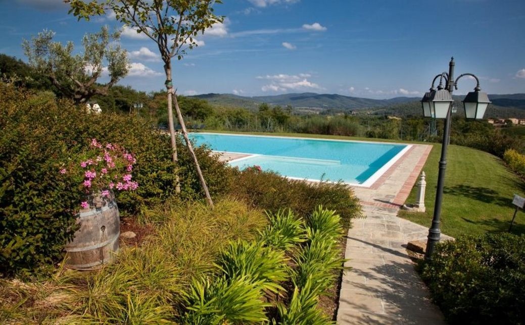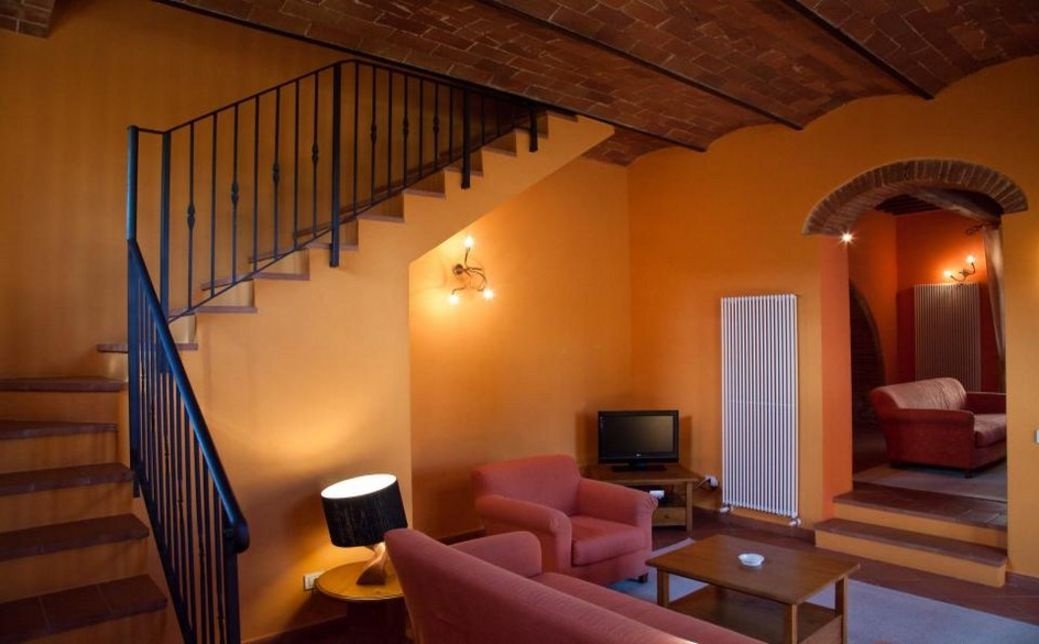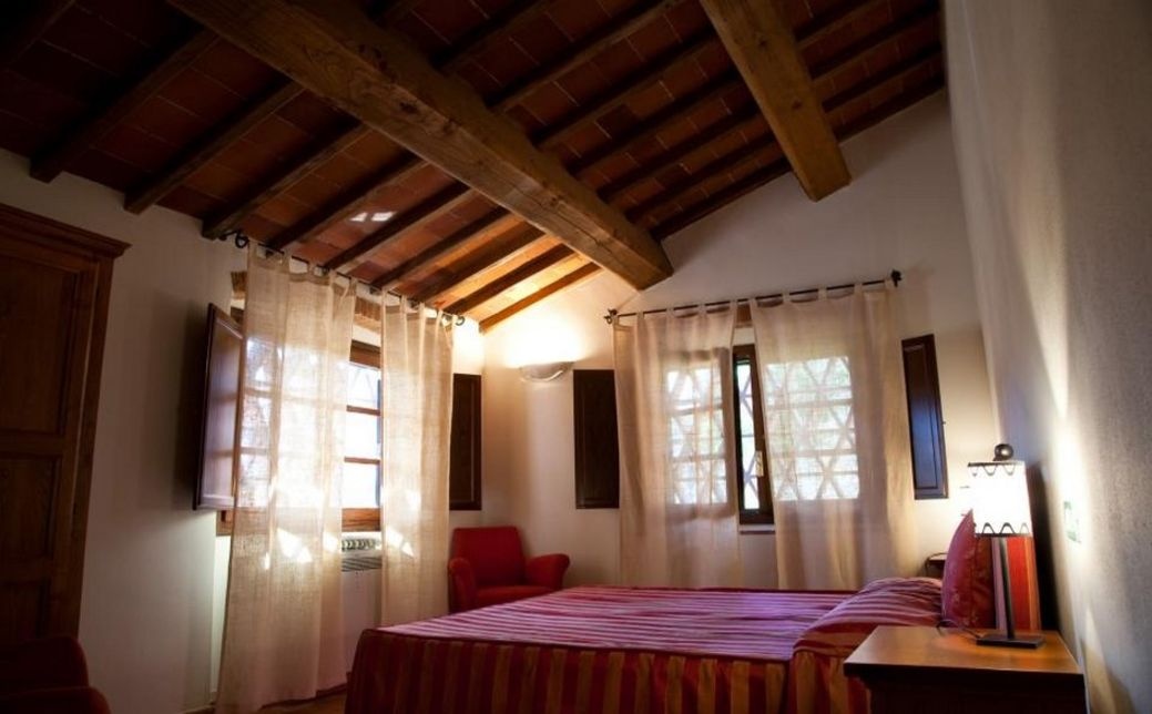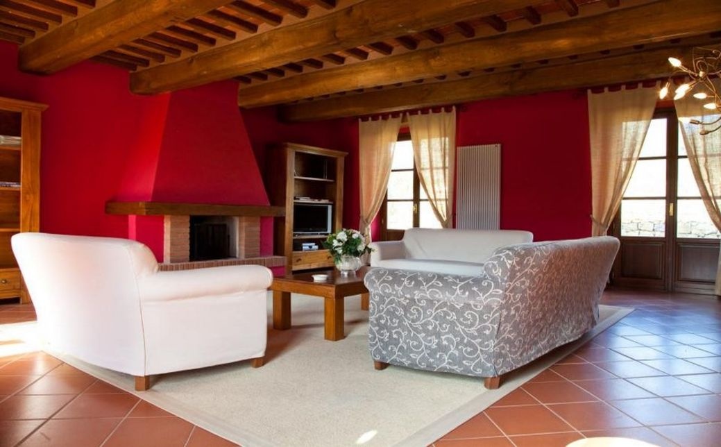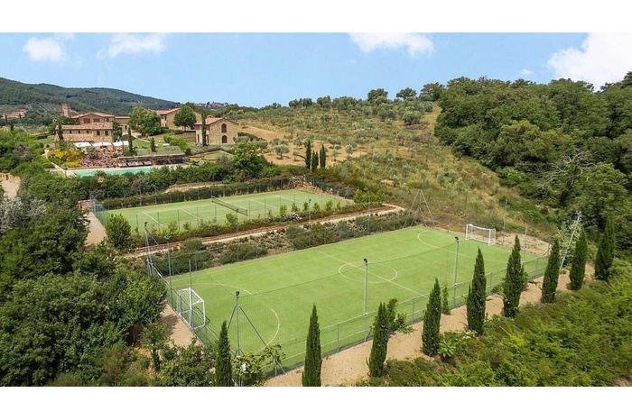 This prestigious holiday farm is situated on the mild Arezzo valleys, not far away from the city of Florence. The property is composed of several buildings placed on 79 hectares of land and gardens. All the houses of the complex are connected by private roads. The estate includes also a farm that produces fine olive oil and wine. Some of those buildings consist of old, restored farmhouses, some are new brickwork buildings, which have been built respecting the local architectural culture. Each house features wonderful stone staircases, chestnut beams, old doors and frames of solid wood and serena stone balconies. The complex is composed of two main hamlets restored to perfection, with a total of 18 housing units, some of them with a particular historical value. All the houses have private garden, outdoor paved patios, porch and enjoy ample privacy. One of the villas has a private swimming pool. In the first village there are 33 double rooms for a total of 66 beds, while the second village has 43 double rooms and 4 single rooms for a total of 84 beds.