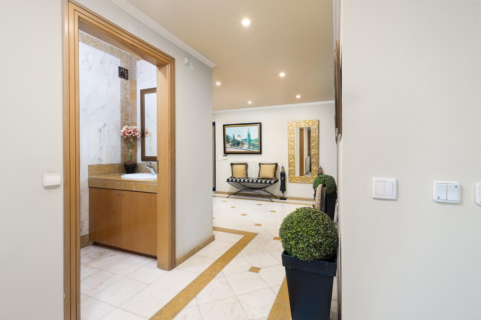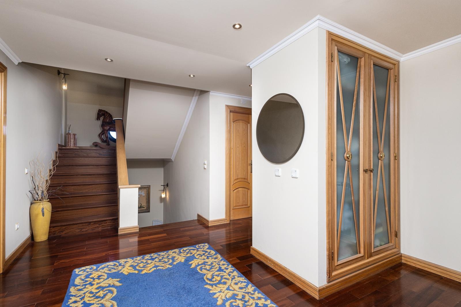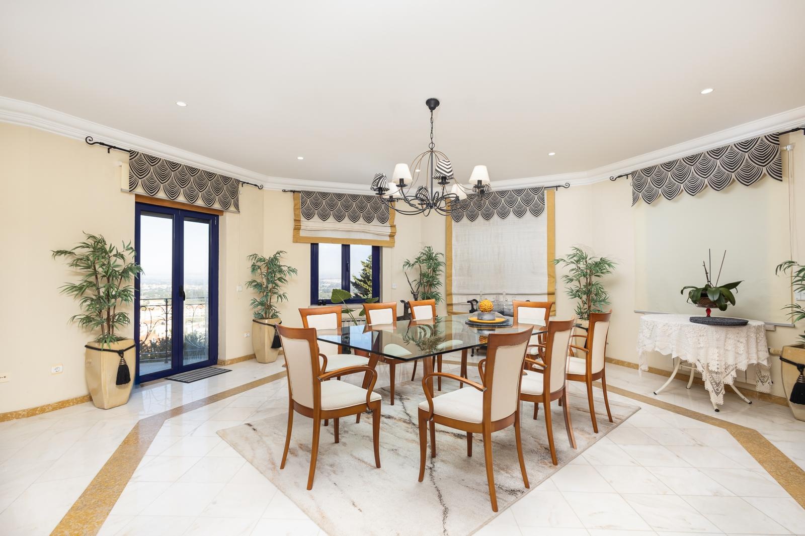 From the moment you enter, every space reveals sophistication and comfort. The spacious living and dining rooms open onto a sun-drenched panoramic terrace, where the horizon stretches from Palmela’s historic centre to Lisbon’s skyline. The fully equipped gourmet kitchen and elegant fireplace lounge invite both relaxation and social gatherings in style.