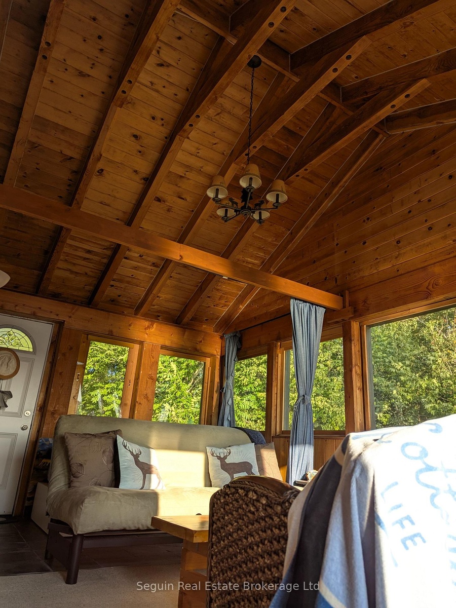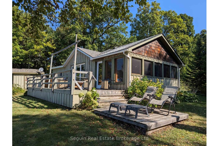 West facing and completely private custom country cottage on 1 acre with 300' of smooth rock Canadian Shield shoreline. Stunning long lake, dwelling free, and island dotted westerly views. Huge lake facing deck. Screened in Muskoka room with a cathedral post and beam pine clad ceiling. Post & beam arches. French doors to open concept living area and adjoining kitchen with lake facing windows, custom countertop and country tile backsplash. Large lake facing windows, barn board authentic pine flooring. Pocket pine bedroom doors. Clean and neat tiled 3 pc shower and laundry room. Attractive oversized Bunkie featuring 3 beds, daybed and two piece bath with large lake facing bay window and small covered front deck. Meandering path & 8 steps to shoreline deck & dock. Huge open campfire area and a rustic vintage 12x18 boathouse at water's edge. Lake Isabella is a natural deep lake with more than half the shoreline undeveloped and in it's original natural state. Explore the Seguin River and the breathtaking waterfall coming down from Duck Lake. Near the Village of Orrville offering a general store w/ beer and lcbo, library, community centre, a summer community market and the Seguin Recreational trail. Close to the town of Parry Sound.