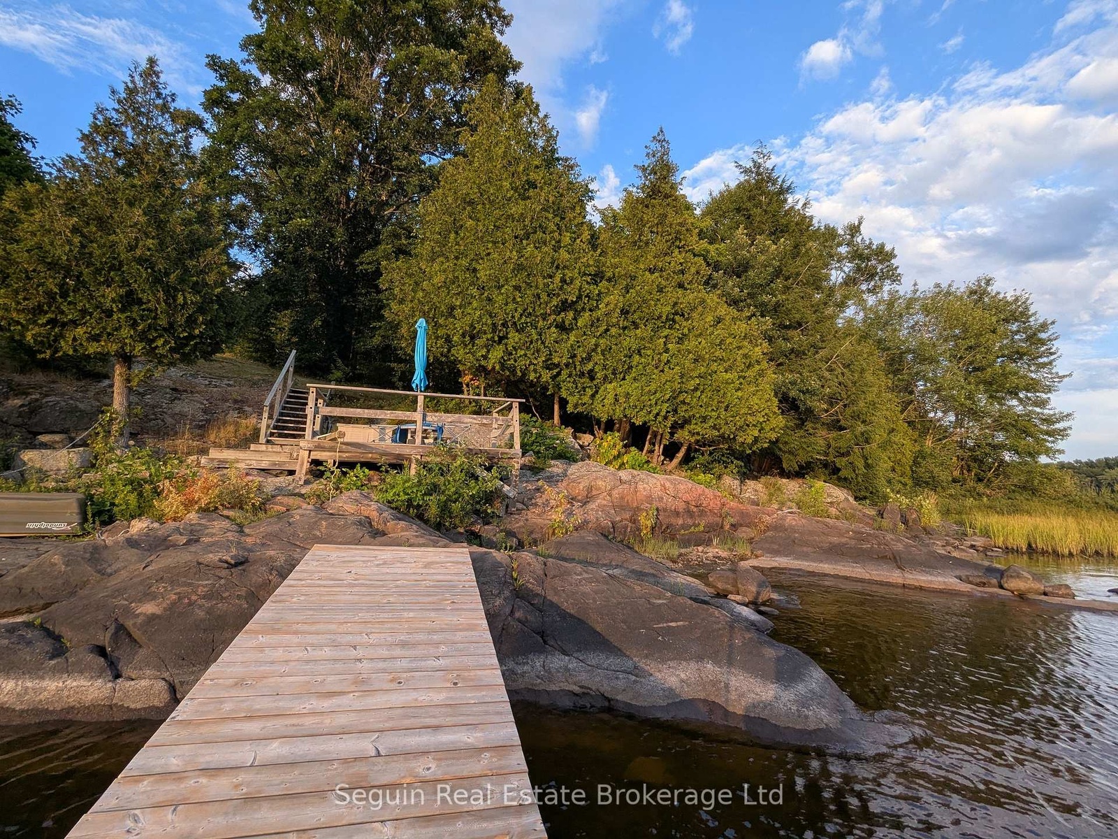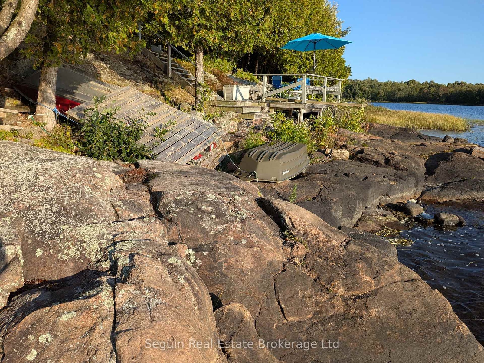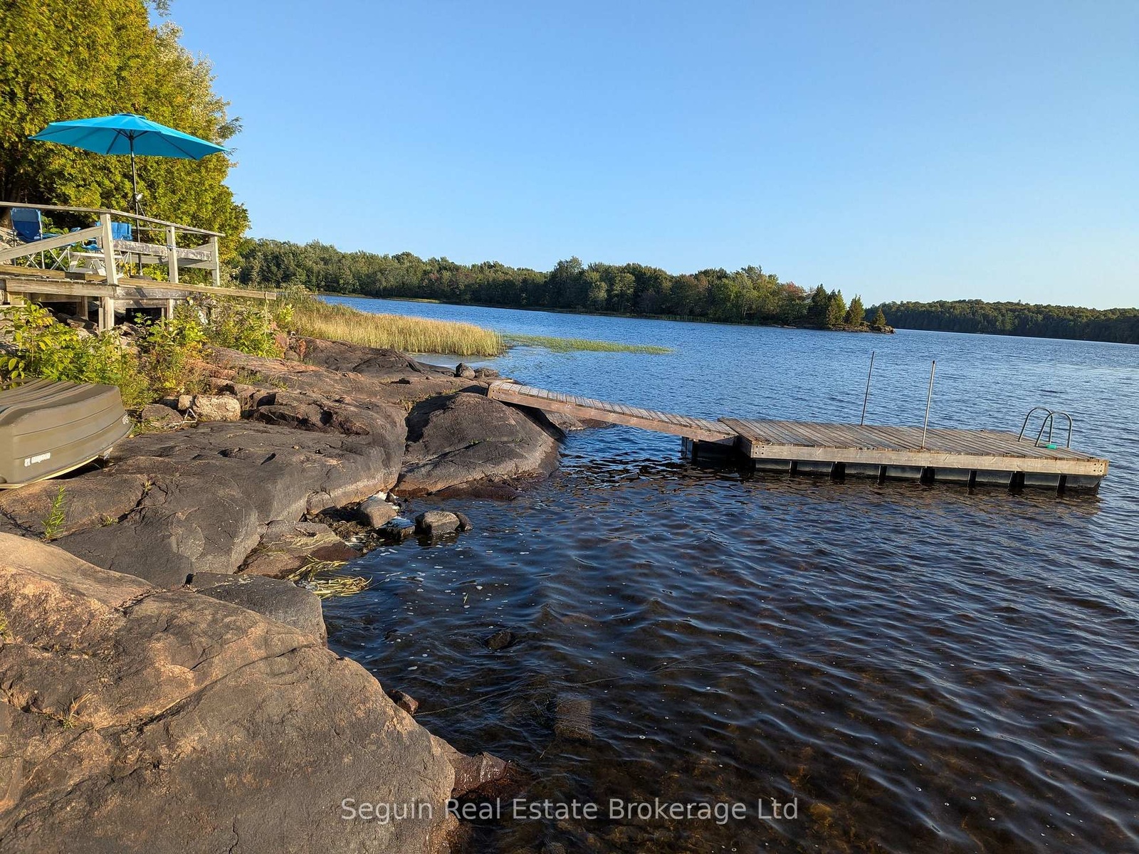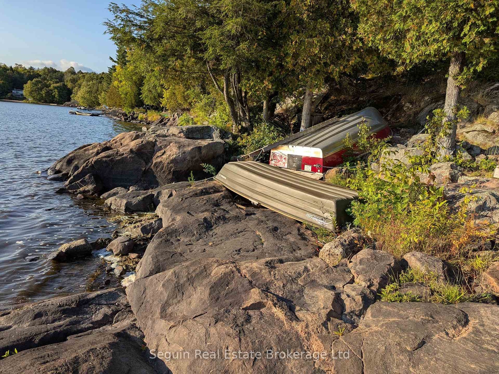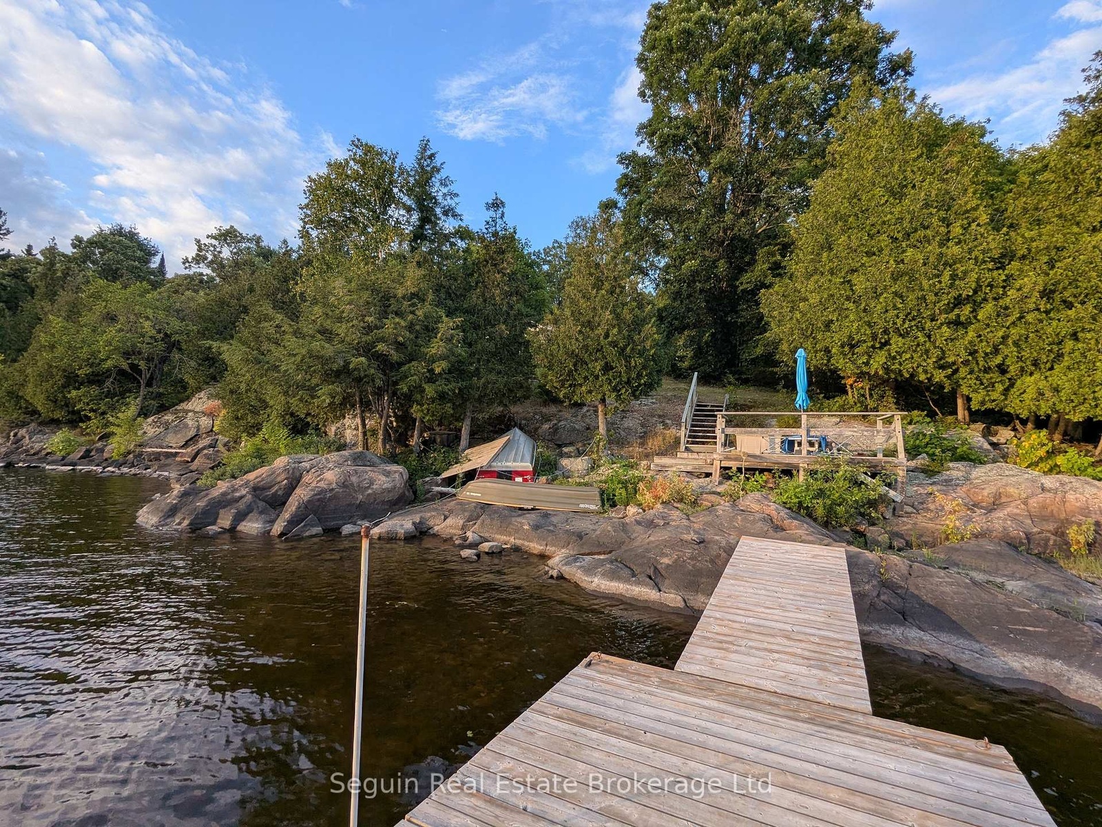West facing and completely private custom country cottage on 1 acre with 300' of smooth rock Canadian Shield shoreline.