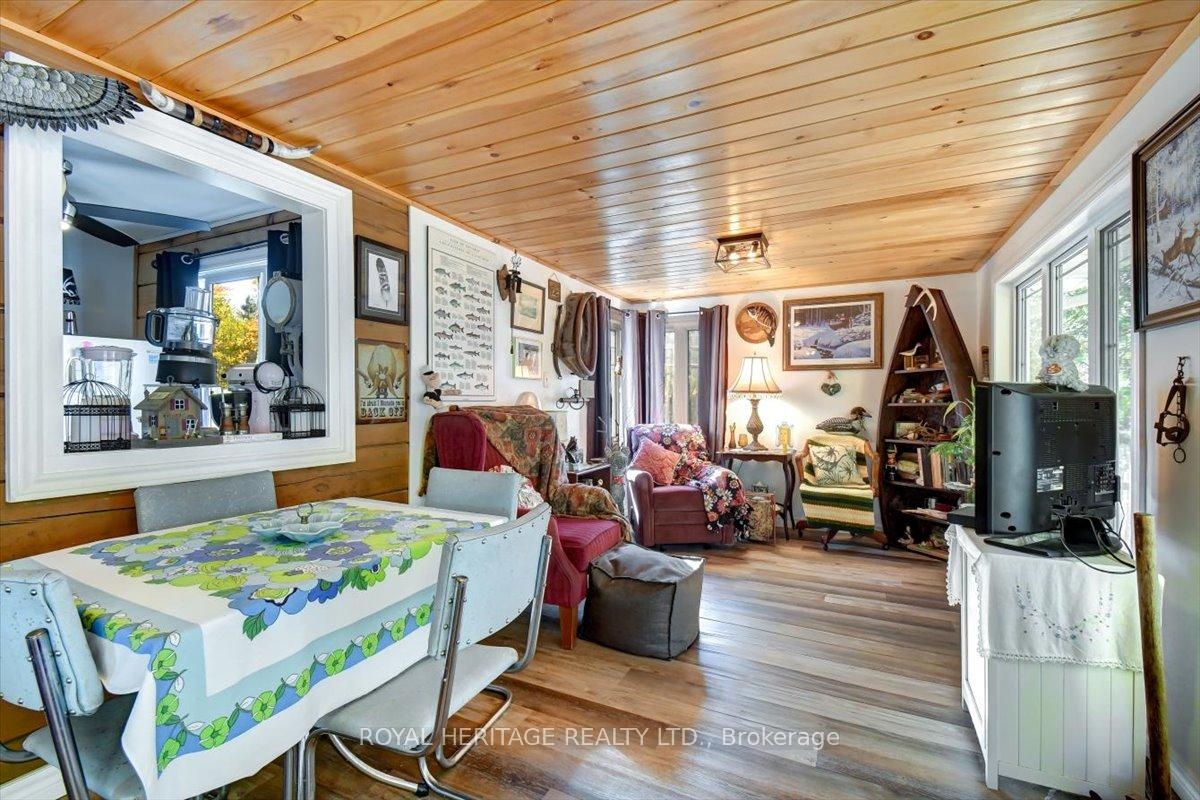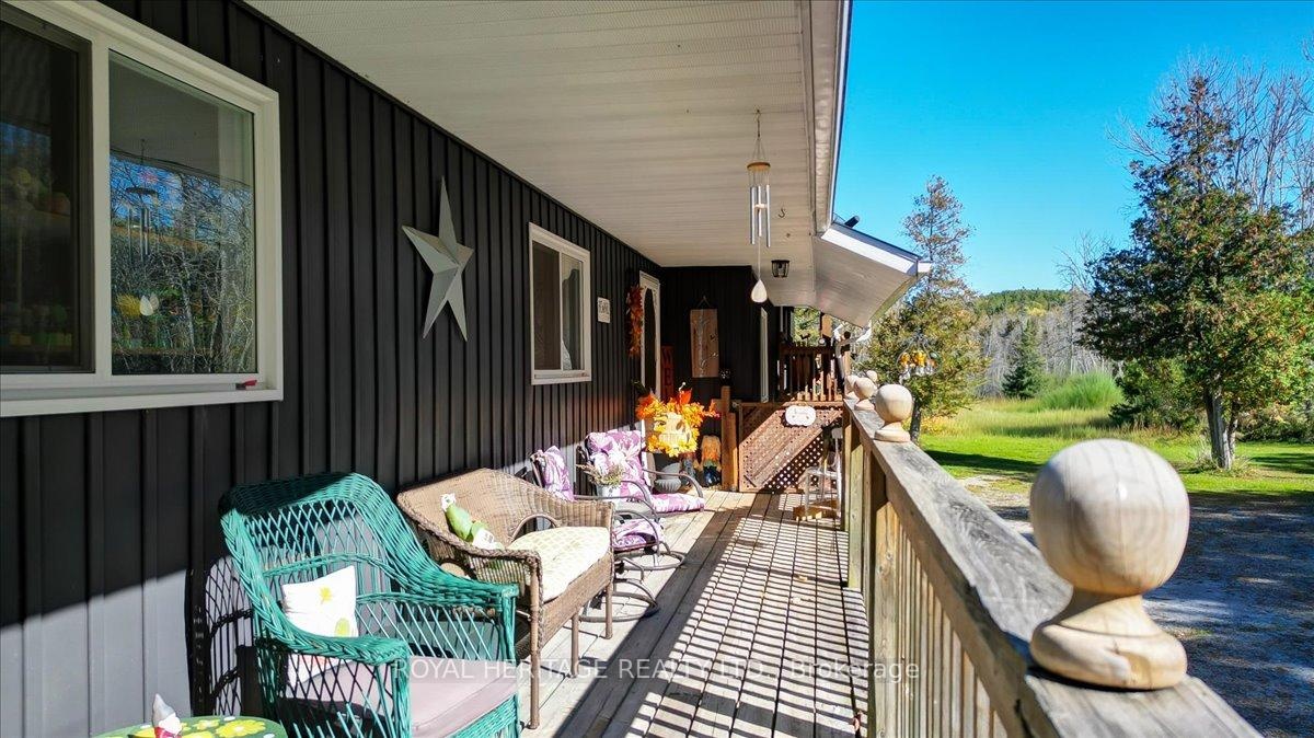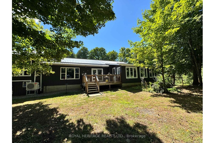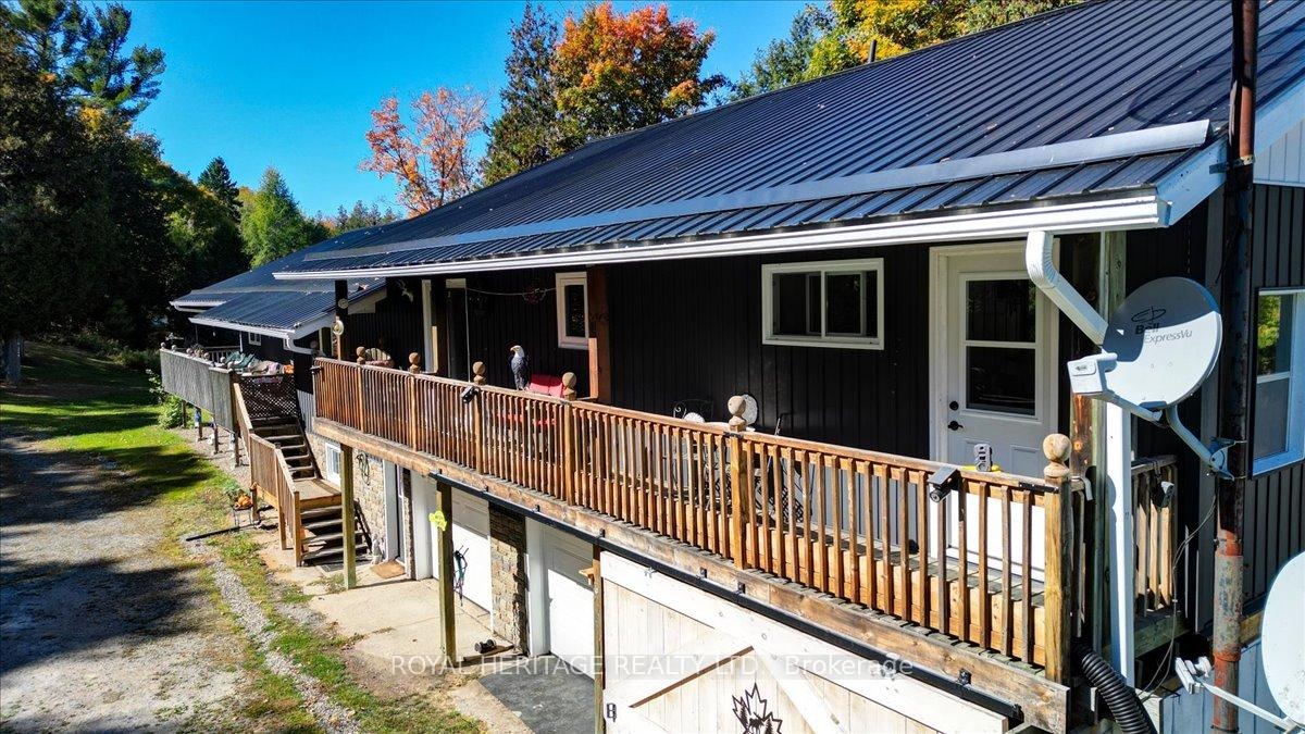 Nestled along 648' of pristine waterfront on Gaffney Lake (no gas boat motors) with a limestone base known for its remarkable clarity, excellent smallmouth and largemouth bass fishing and endless paddling adventures. This extraordinary property spans almost 3 acres of lakeside paradise. Thoughtfully designed for both family living and revenue potential, this waterfront home features 5 spacious bedrooms, a 2-car garage plus a convenient carport, and options for dual living or short-term rental use - think in-law suite or Airbnb-ready setup (2 water sources + 2 septic systems + geothermal heating). Warm your toes on the expansive deck and sunroom, both offering panoramic views of the shimmering lakeperfect for morning coffee or evening conversations around the sunset. Inside, an efficient and sustainable geothermal heating system ensures year-round comfort with whisper-quiet operation and minimal environmental footprint. For nature lovers, the locale is a treasure trove. Outdoor enthusiasts will delight in hiking and picnicking at Egan Chutes Provincial Park, just a short drive away. Bancroft itself offers community charm parks like Riverside, Millennium, and Vance Farm Park provide trails, picnic areas, live concerts, skate facilities and launches for canoeing or kayaking. This property is an idyllic blend of tranquility, comfort, and flexibility perfect for families seeking a lakeside sanctuary or investors tapping into vacation-stay demand in the Bancroft region.