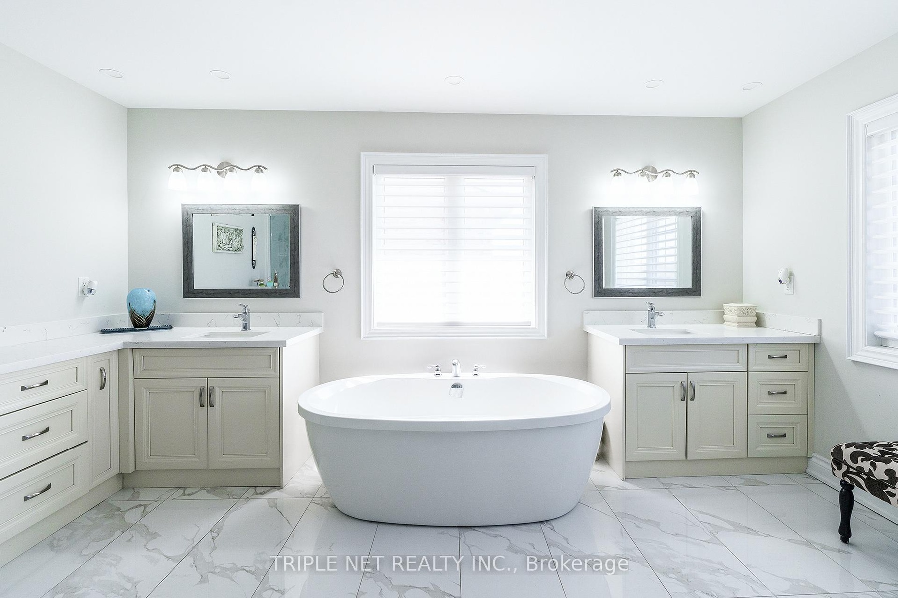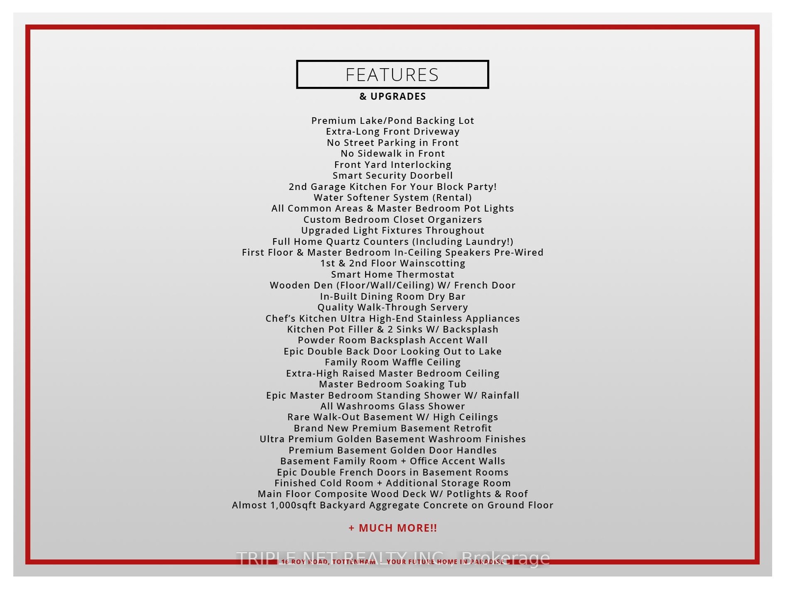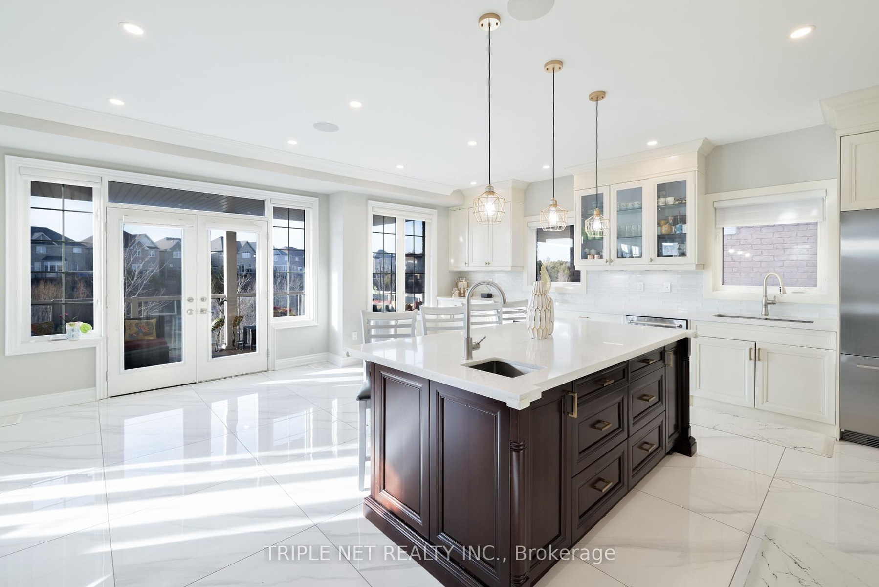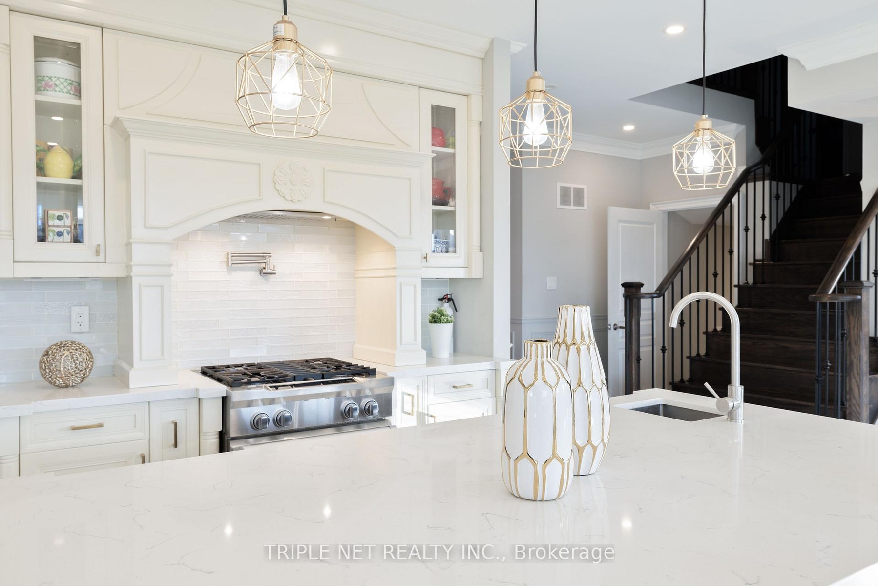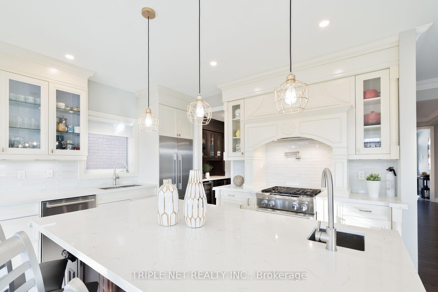 Step into a masterpiece where luxury meets tranquility in Tottenham's most coveted enclave! This extraordinary home, the largest builder model, rests on a premium ravine lot with breathtaking water views and backyard sunsets, offering almost 5,000 sqft of resort-style living space. Nature's serenity is your backdrop here, enhanced by an additional 1,000+ sqft of meticulously designed outdoor living areas, including a sprawling covered deck directly off the kitchen. Every corner of this home is a testament to unparalleled craftsmanship and well over $500K in bespoke upgrades! Imagine mornings bathed in natural light from panoramic windows in your grand family room with a coffered ceiling. Relish culinary adventures in the chef's dream kitchen featuring top-tier appliances, oversized quartz countertops, a walk-through servery, and an outdoor-ready second kitchen for al fresco gatherings. The main floor is no less than an entertainers paradise, with a custom wooden den/bar/cigar room, elegant wainscoting, built-in dry bar, and seamless flow into spacious, open concept living areas. Retreat upstairs to a palatial primary suite with soaring ceilings, a spa-like ensuite, and a rainfall shower that feels like a personal oasis. All secondary bedrooms boast premium finishes and glass-enclosed showers for a luxe touch. But that's only the beginning. Descend to the brand-new walk-out basement, a nature-facing haven with rare builder-upgraded high ceilings, massive above-grade windows, and double French-door offices or bedrooms. Ethernet pre-wiring and ultra-premium gold-accented finishes elevate this space, creating a versatile retreat for work or play. Practicality meets elegance with quartz counters throughout (even in the laundry!), custom closet organizers, ample driveway parking for up to 6 cars, and no sidewalk or road parking interruptions. Just a stroll from shops, restaurants, and everyday essentials. This is not just a home, it's a lifestyle that eagerly awaits!