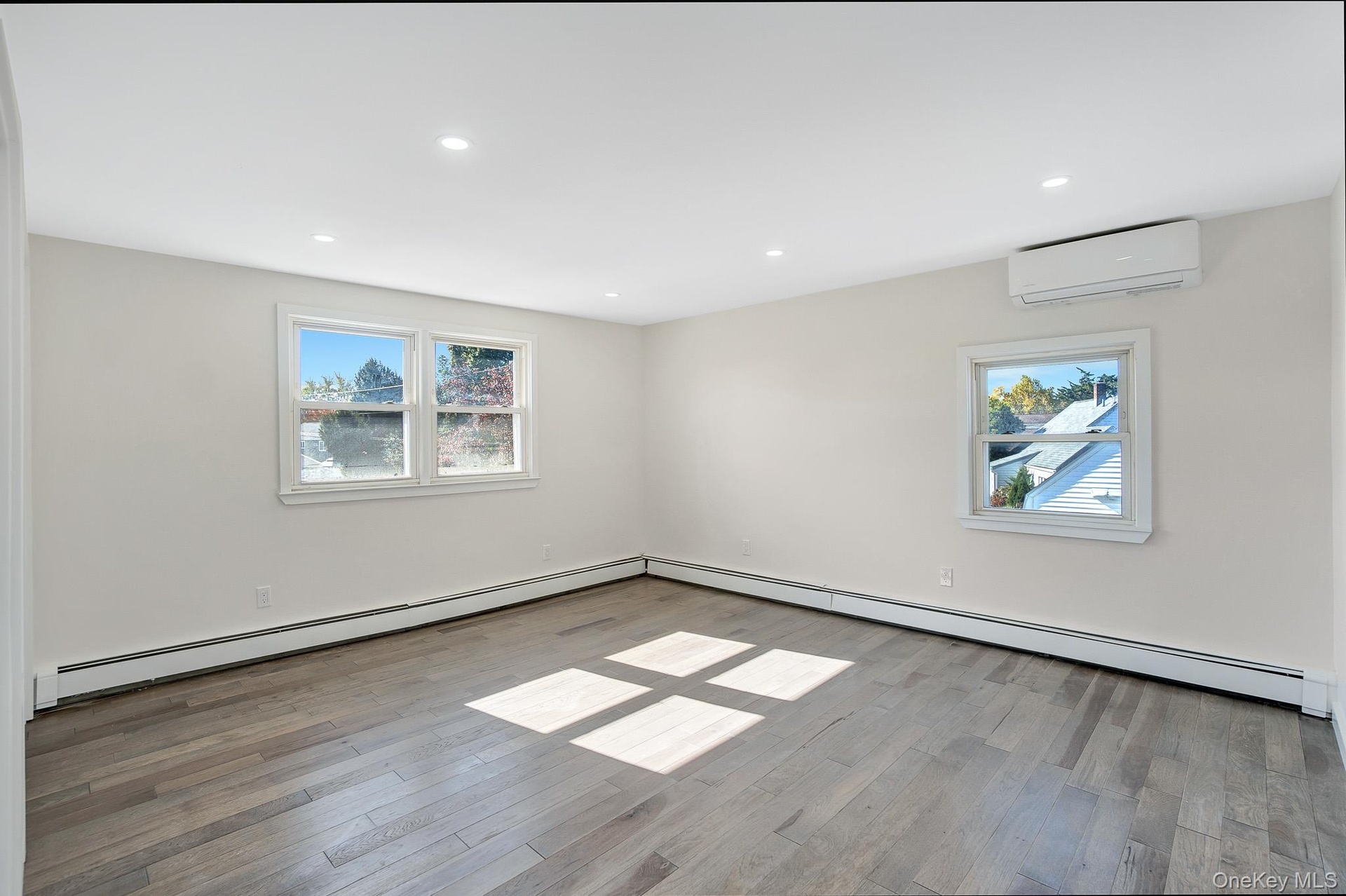 - Spare room featuring baseboard heating, recessed lighting, light wood finished floors, and a wall unit AC